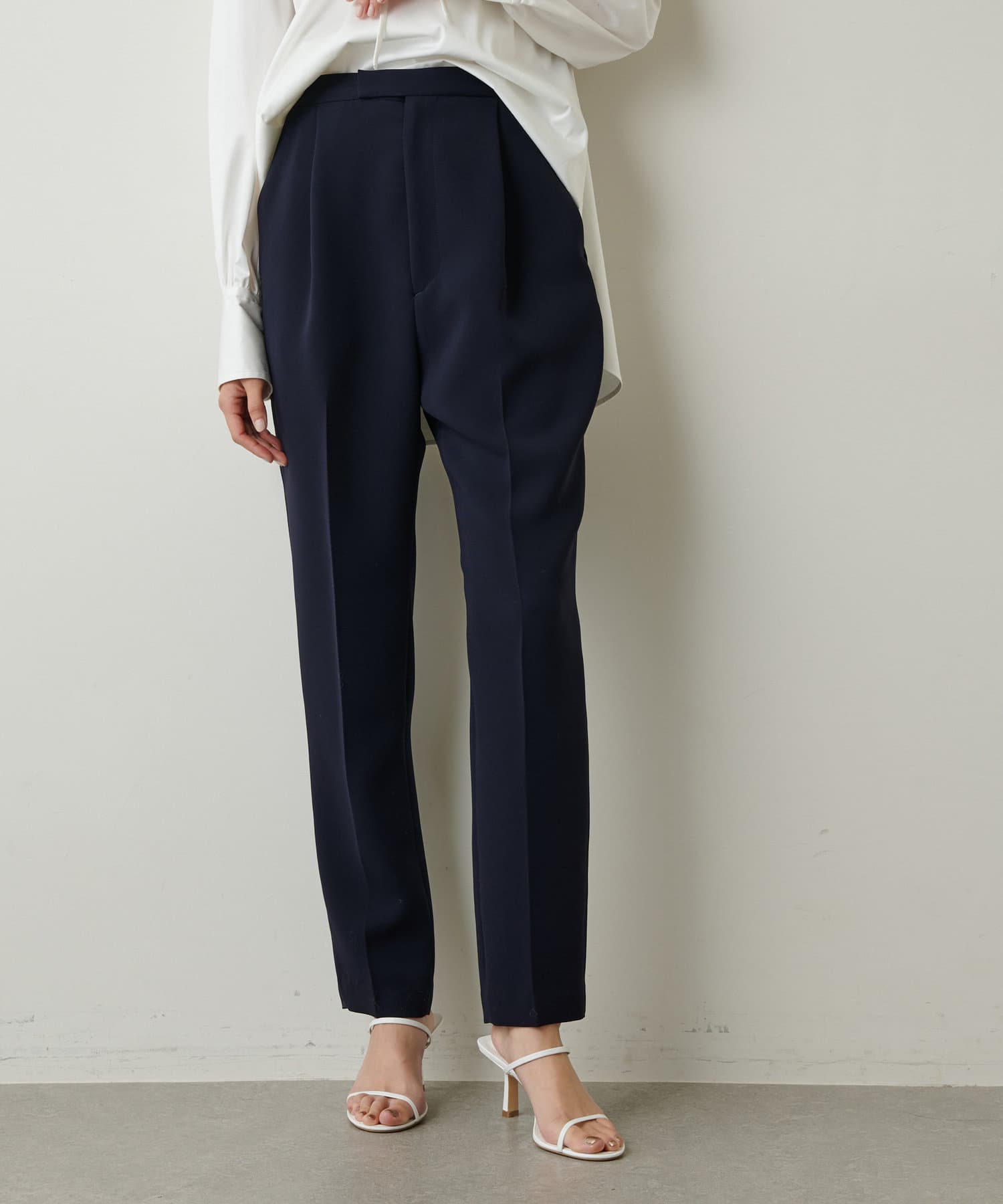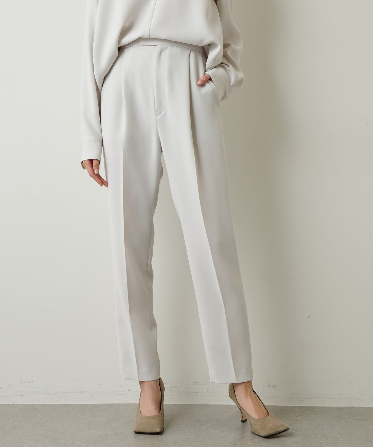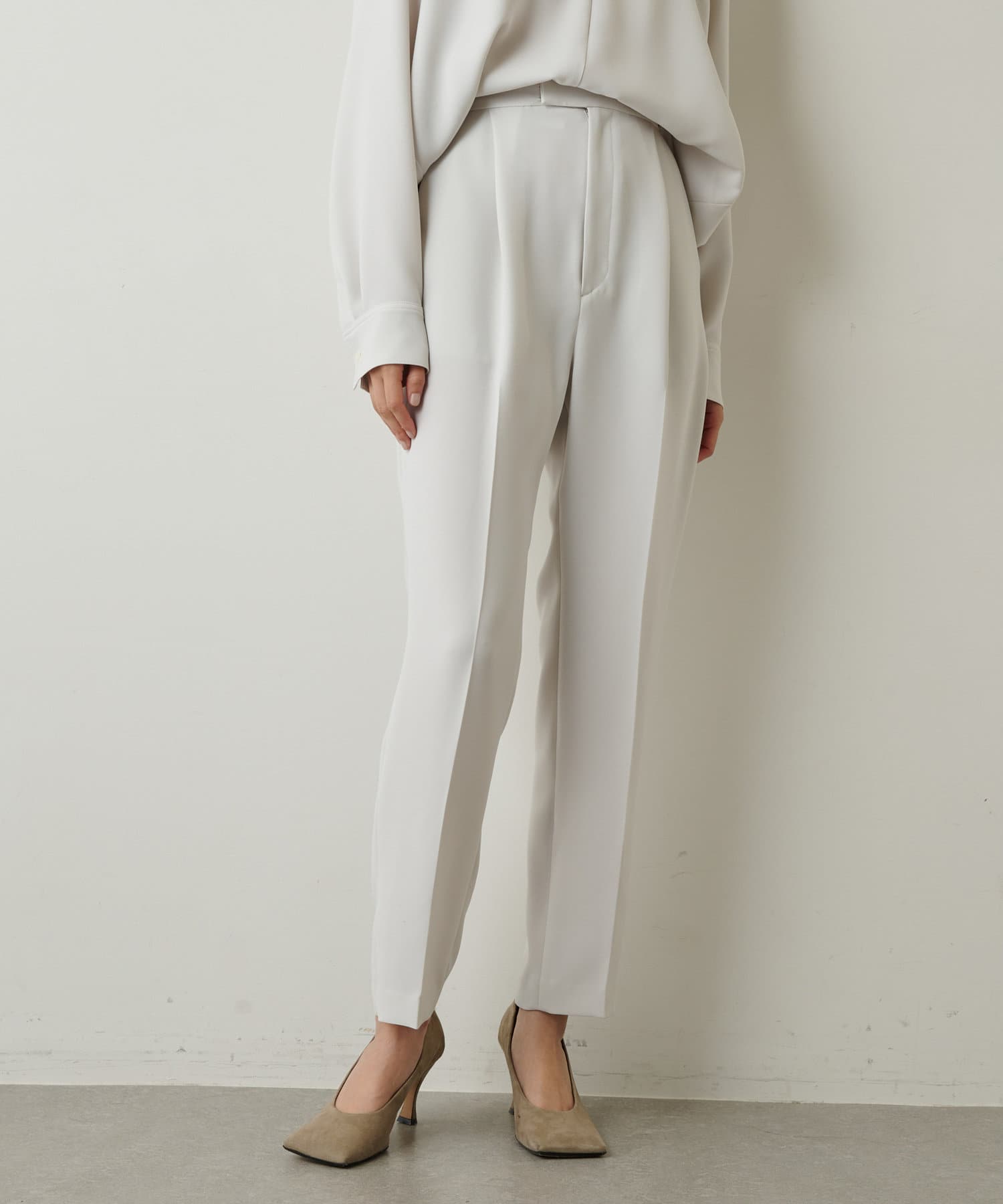 ■とろみのある風合いですっきりと美しいラインを描くダブルクロスパンツ。