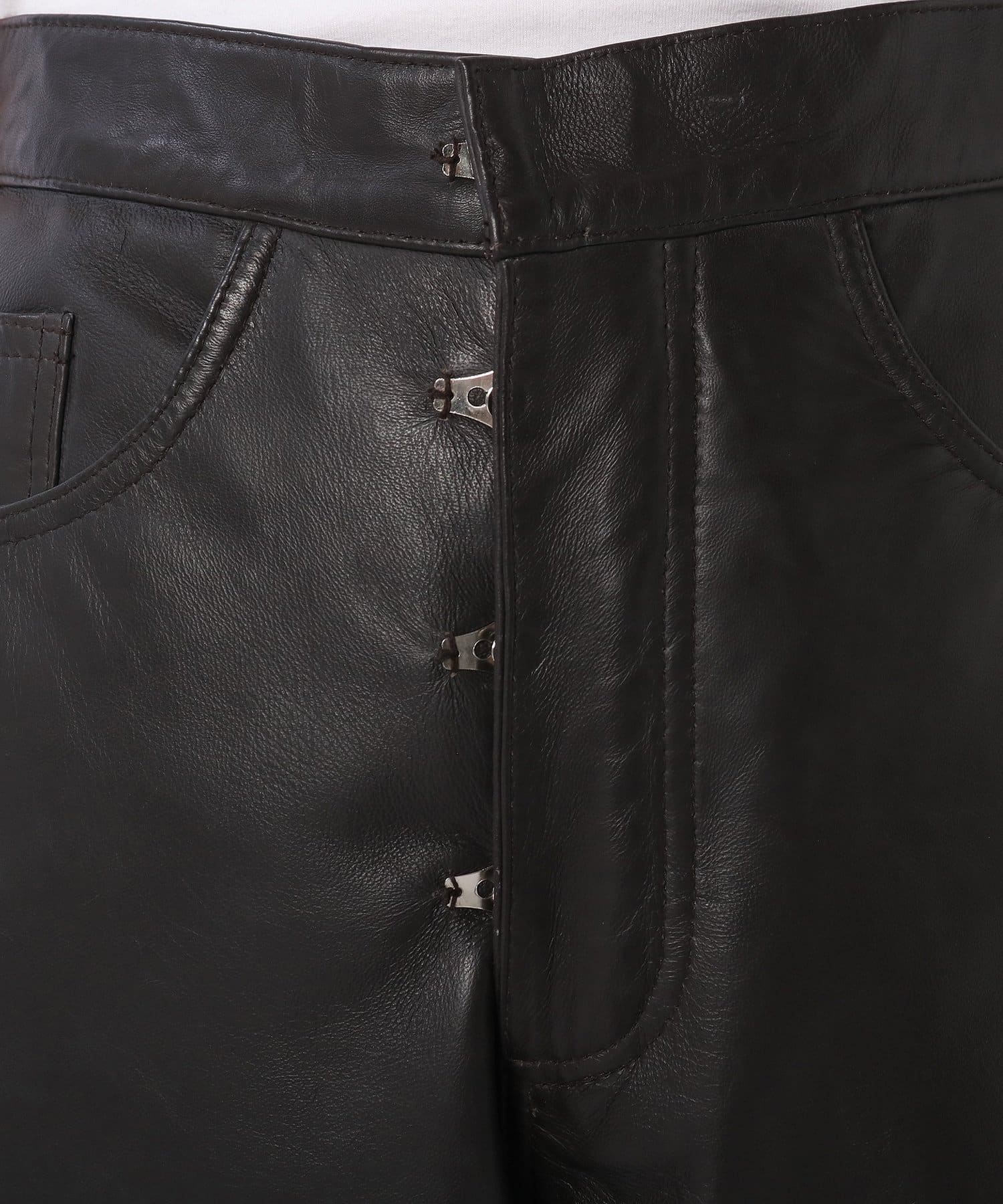 ヒップから、太ももにかけて、ゆったりと、贅沢にレザーを使っているのに、この価格にびっくりてす。とっても履きやすく、何にでも合わせやすいいろいろなので、これからずっと大切に履きたいと思います。