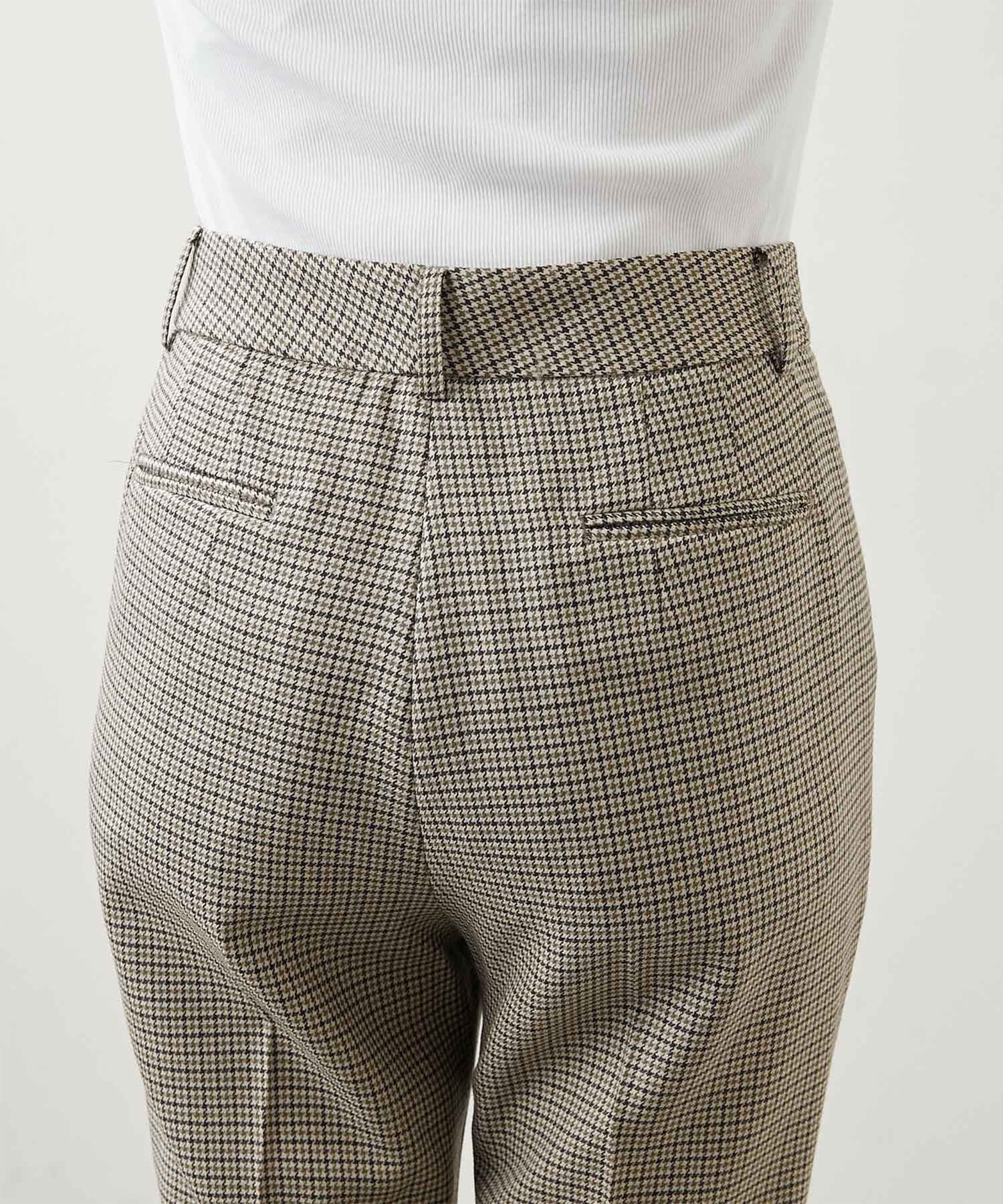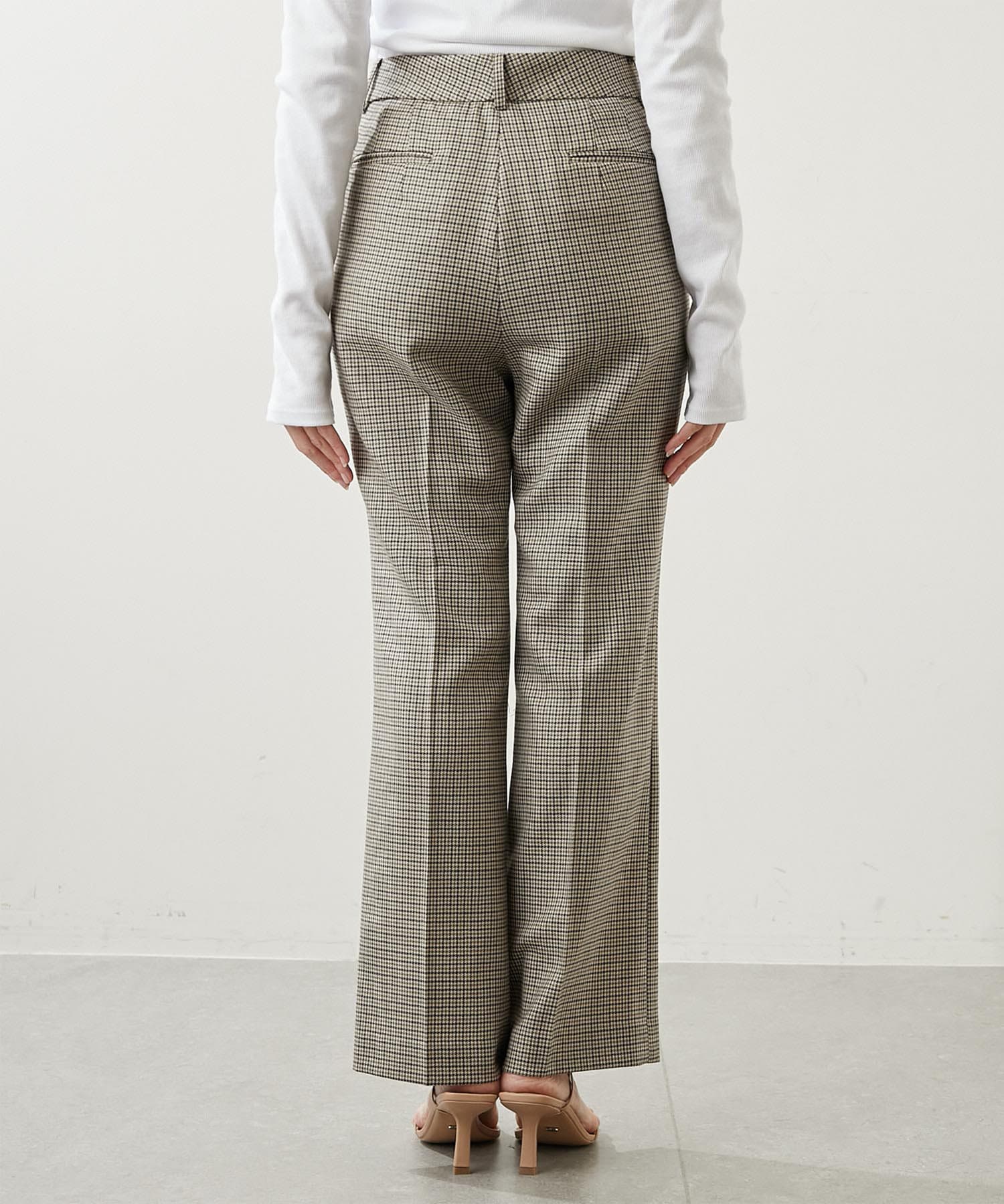 ■オリジナルの千鳥柄生地を使用したフレアパンツ。