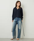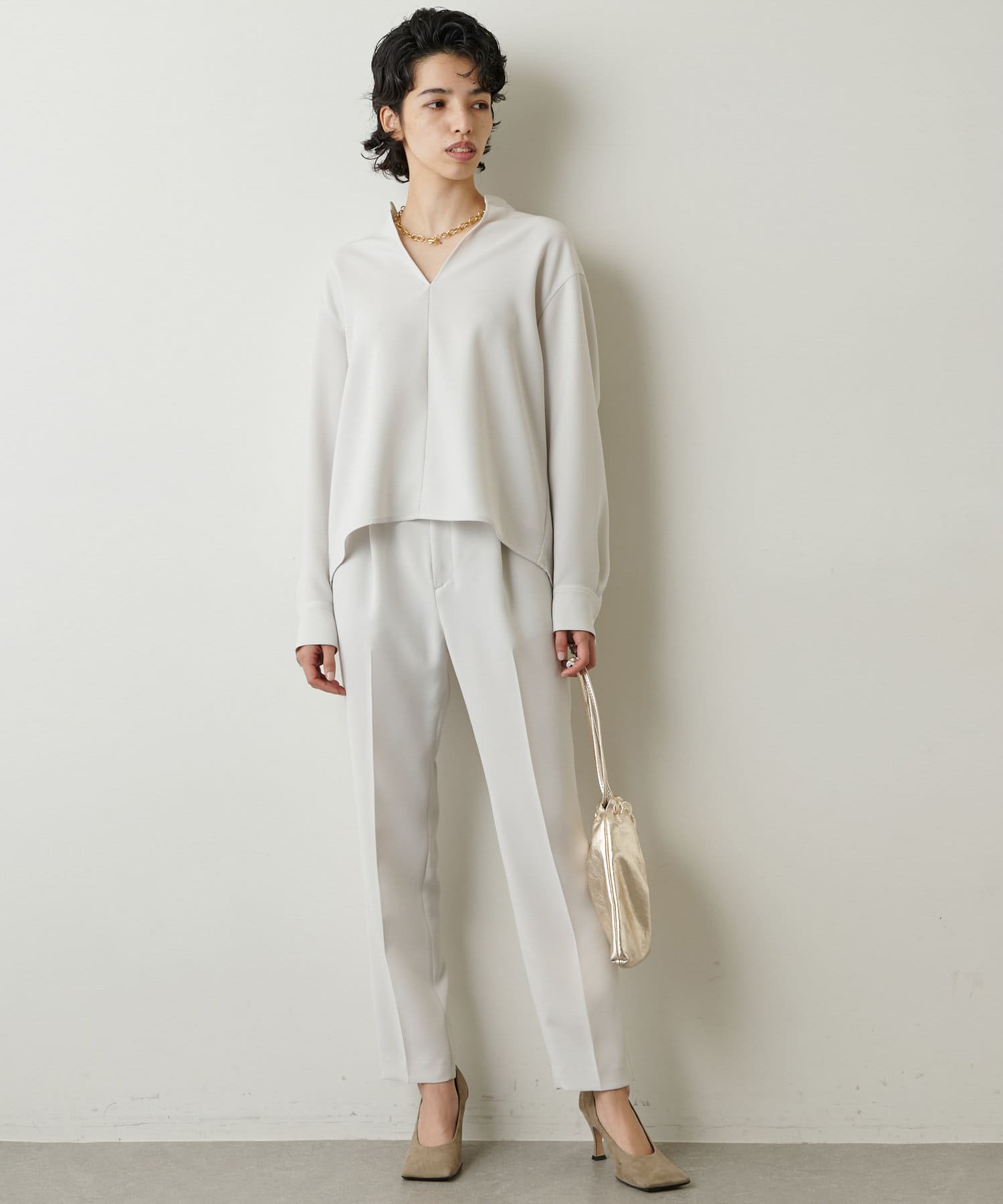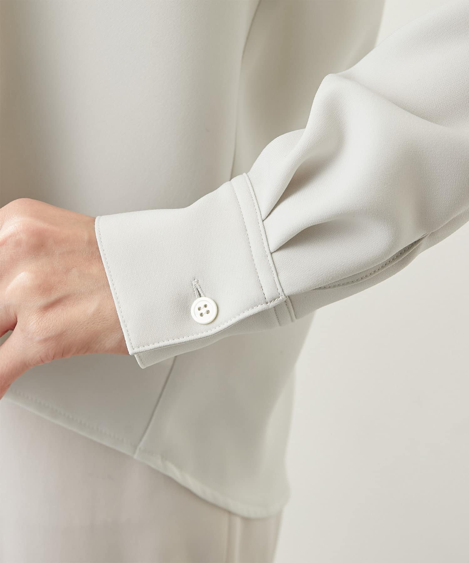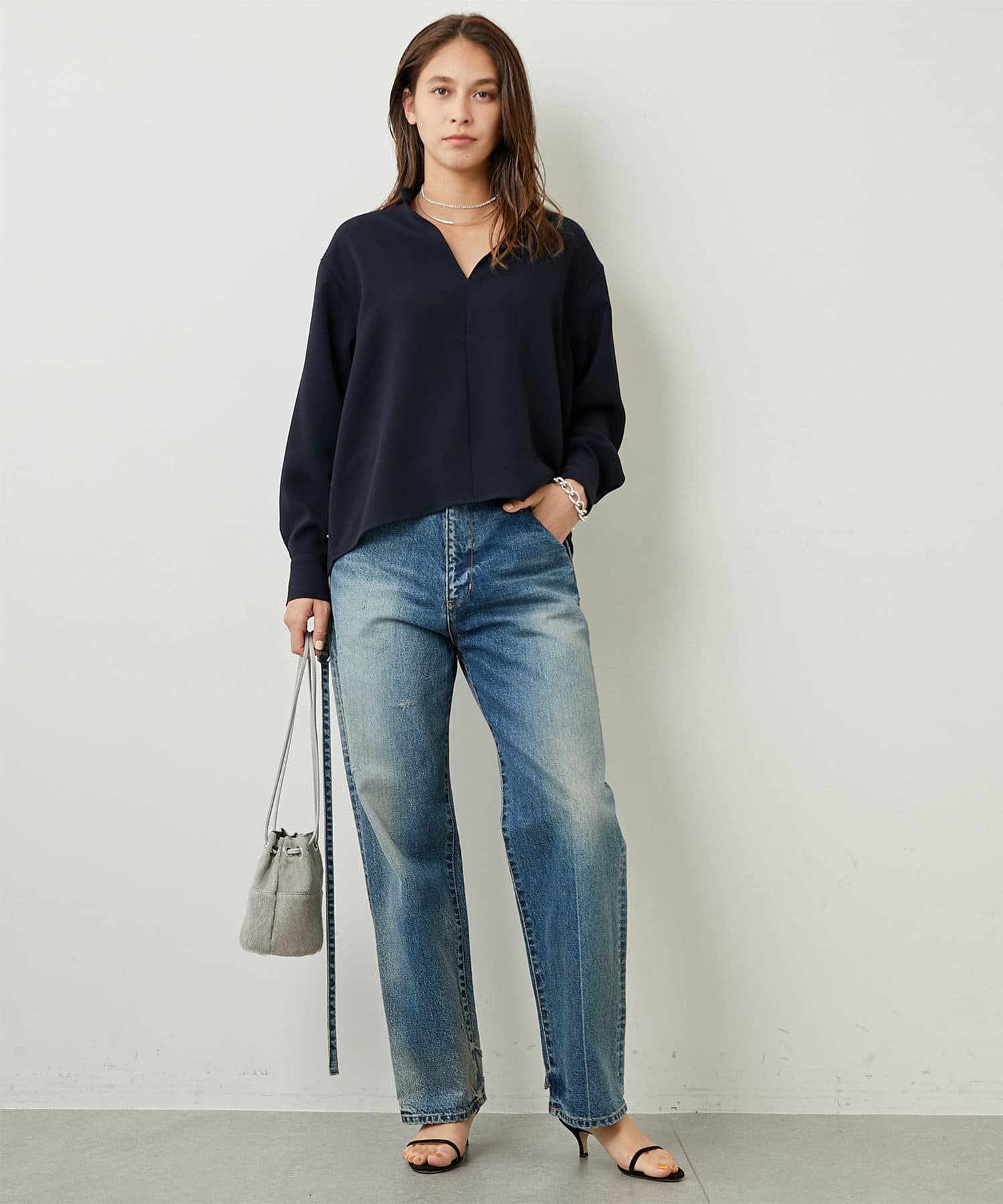 ■デコルテを美しく見せてくれるV開きのスキッパーブラウス。