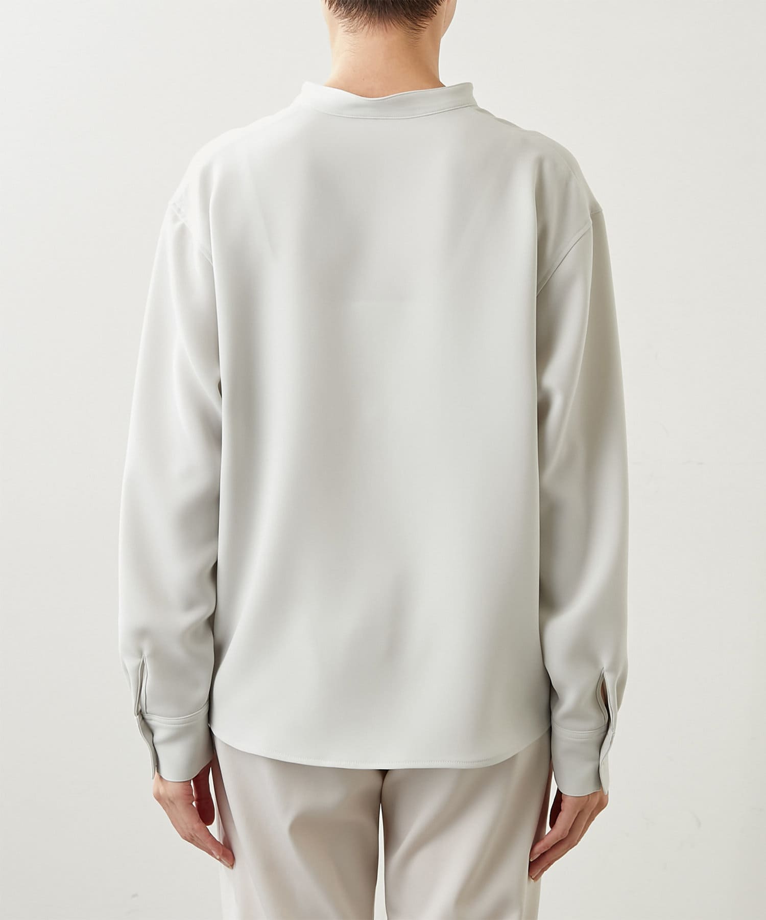 ■控えめなスタンドカラーが凛とした印象をプラス。