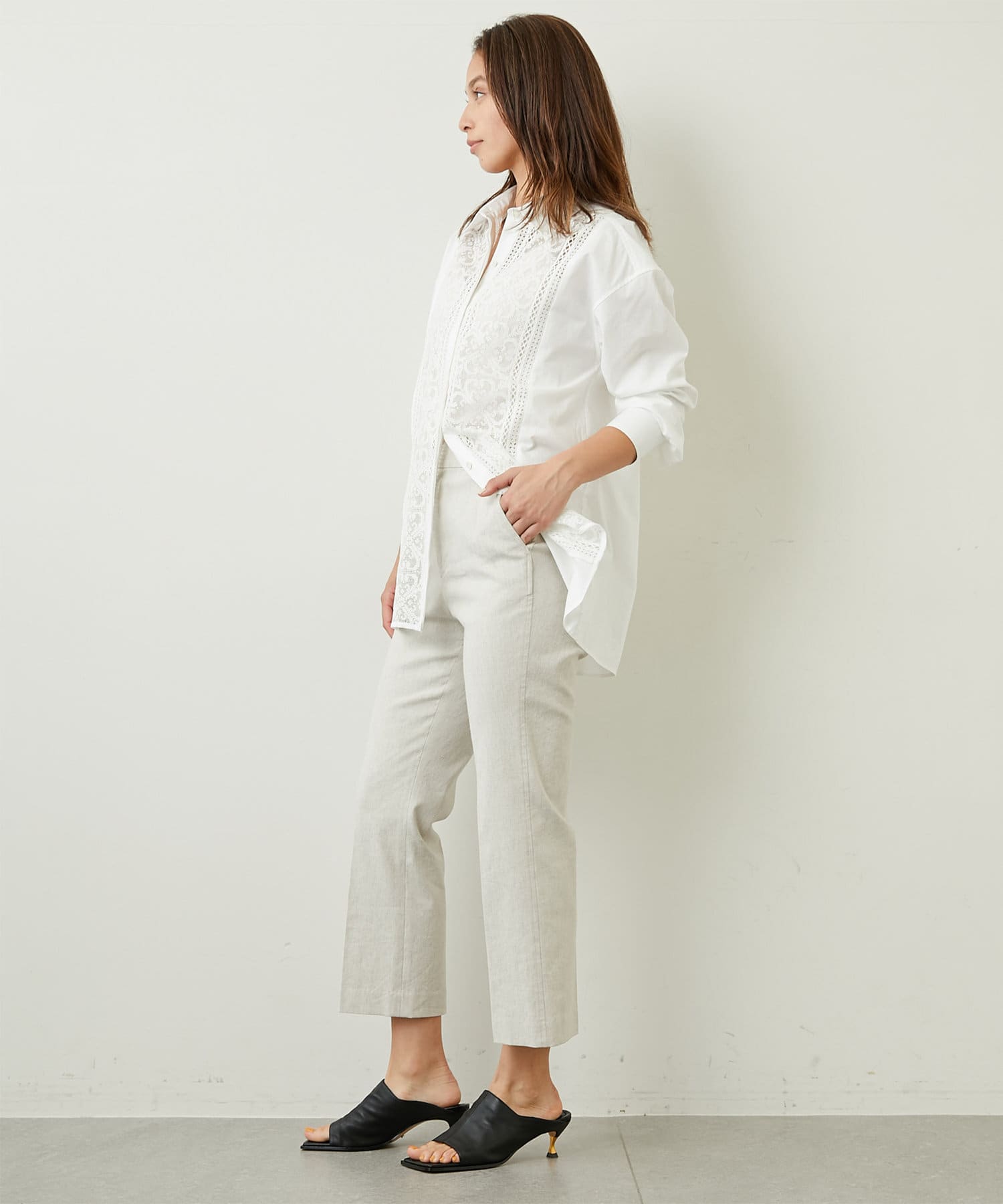 ■前身頃に贅沢ににレースをあしらったシャツ。
