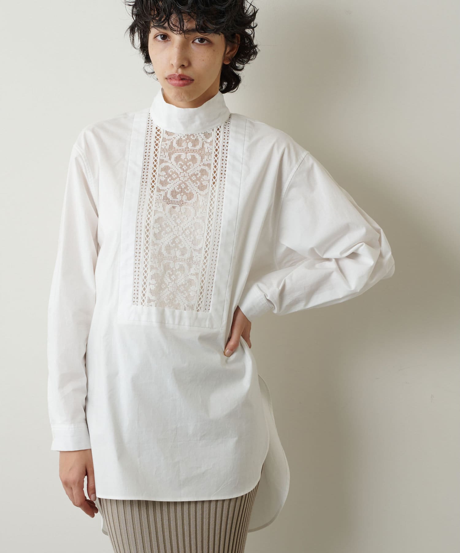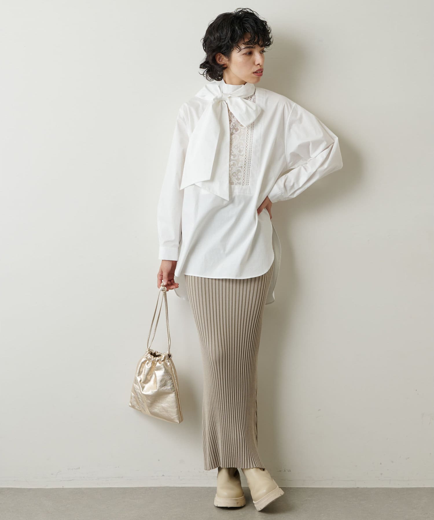 ■ヨーク部分のレース切り替えとボウタイが目を惹くブラウス。