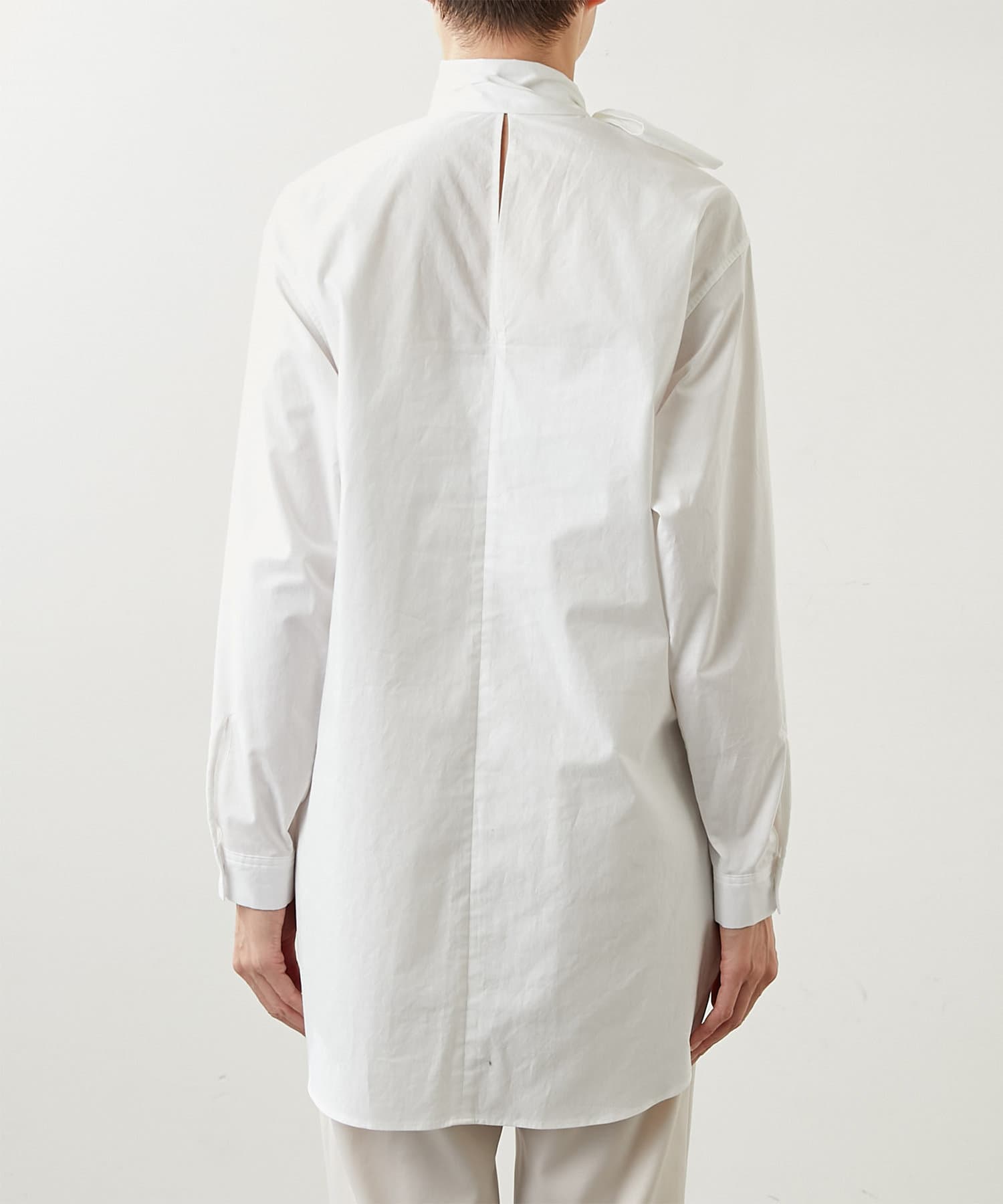 ■ボウタイをフロントで結んでレースをチラリと覗かせたり、バックでリボン結びにしてレースの透け感を楽しんだり、アレンジ次第で表情の変化を楽しめる一着。