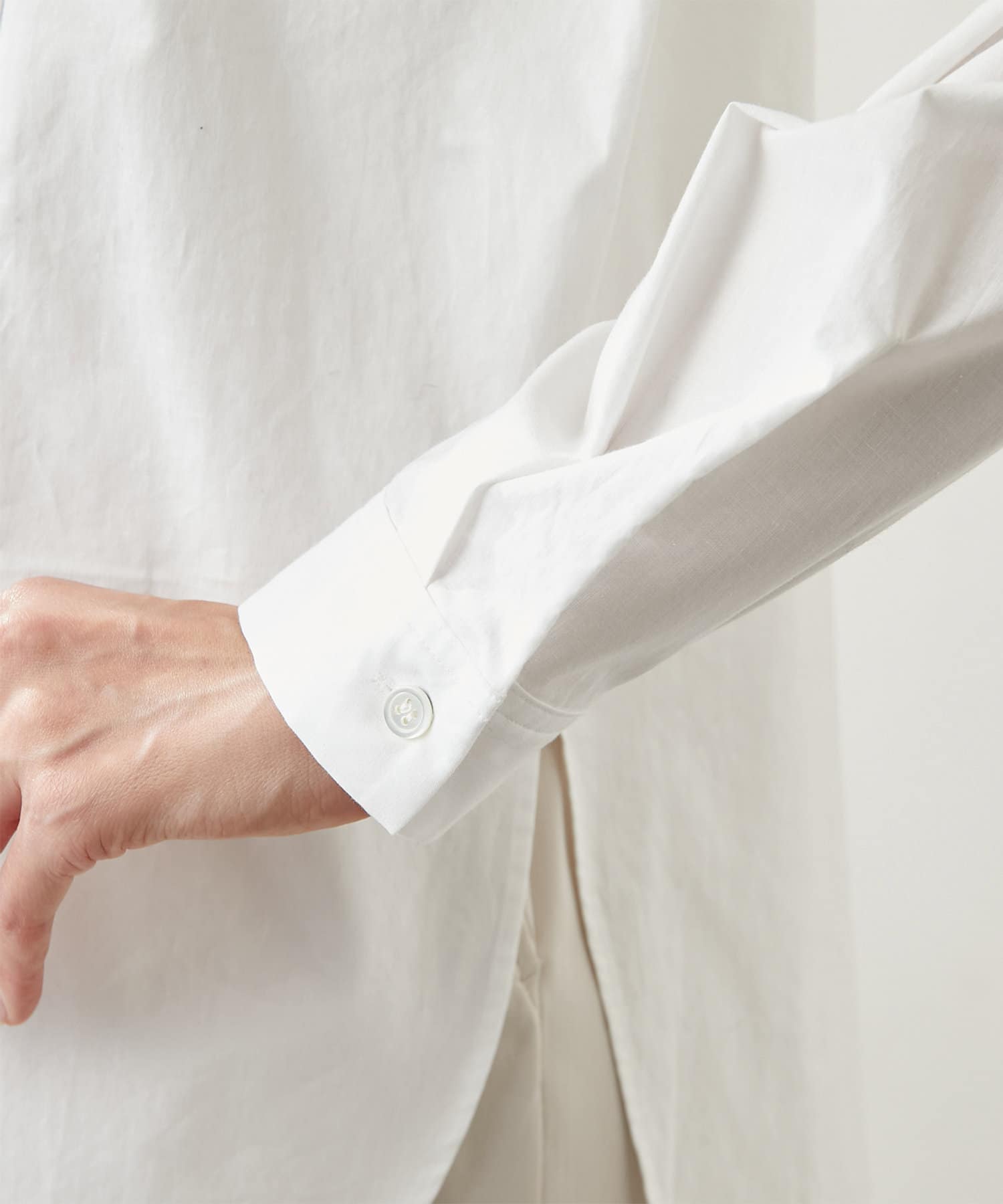 ■サイドスリット入りの前後差シルエットと、背中のスリットが抜け感を演出。