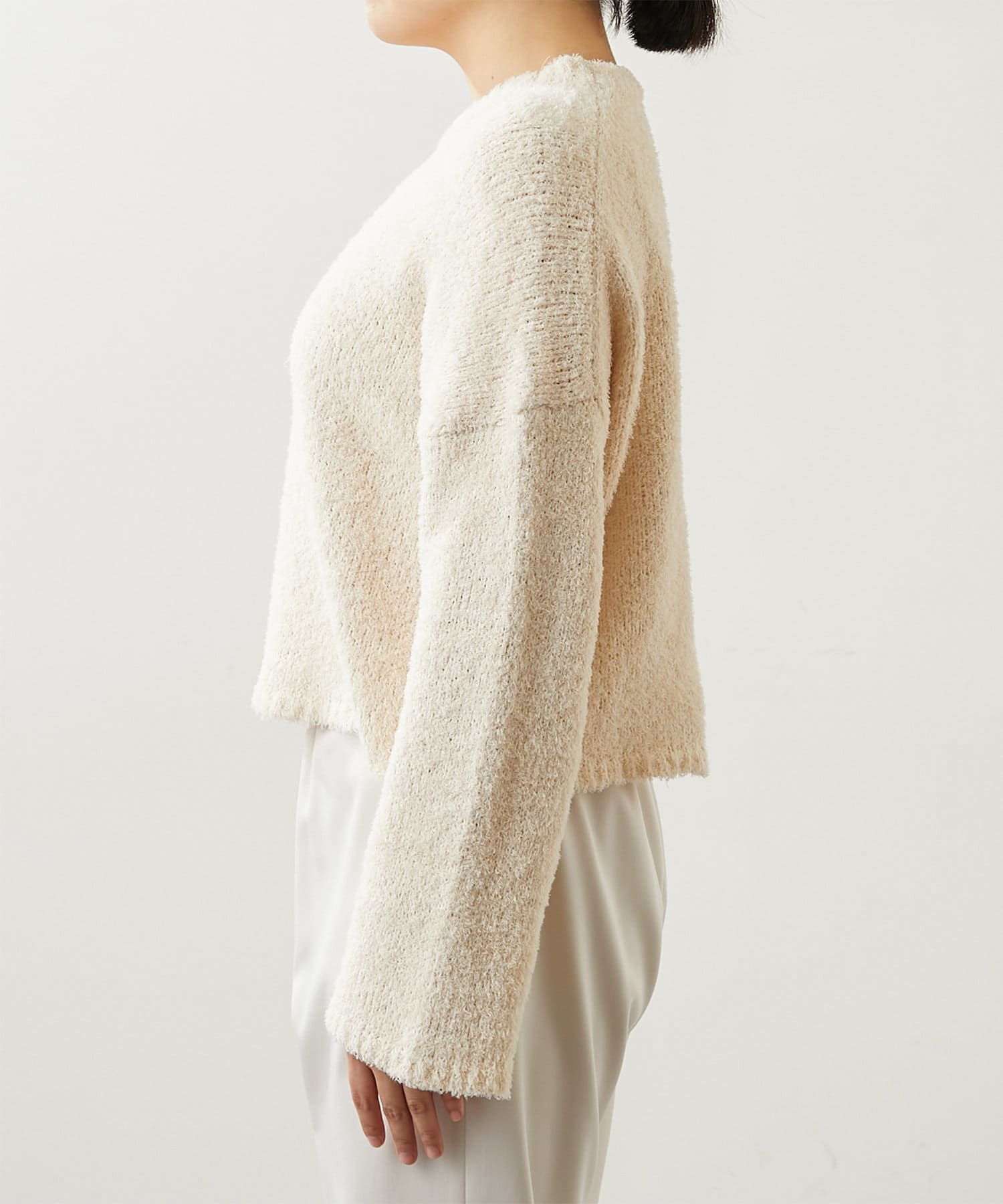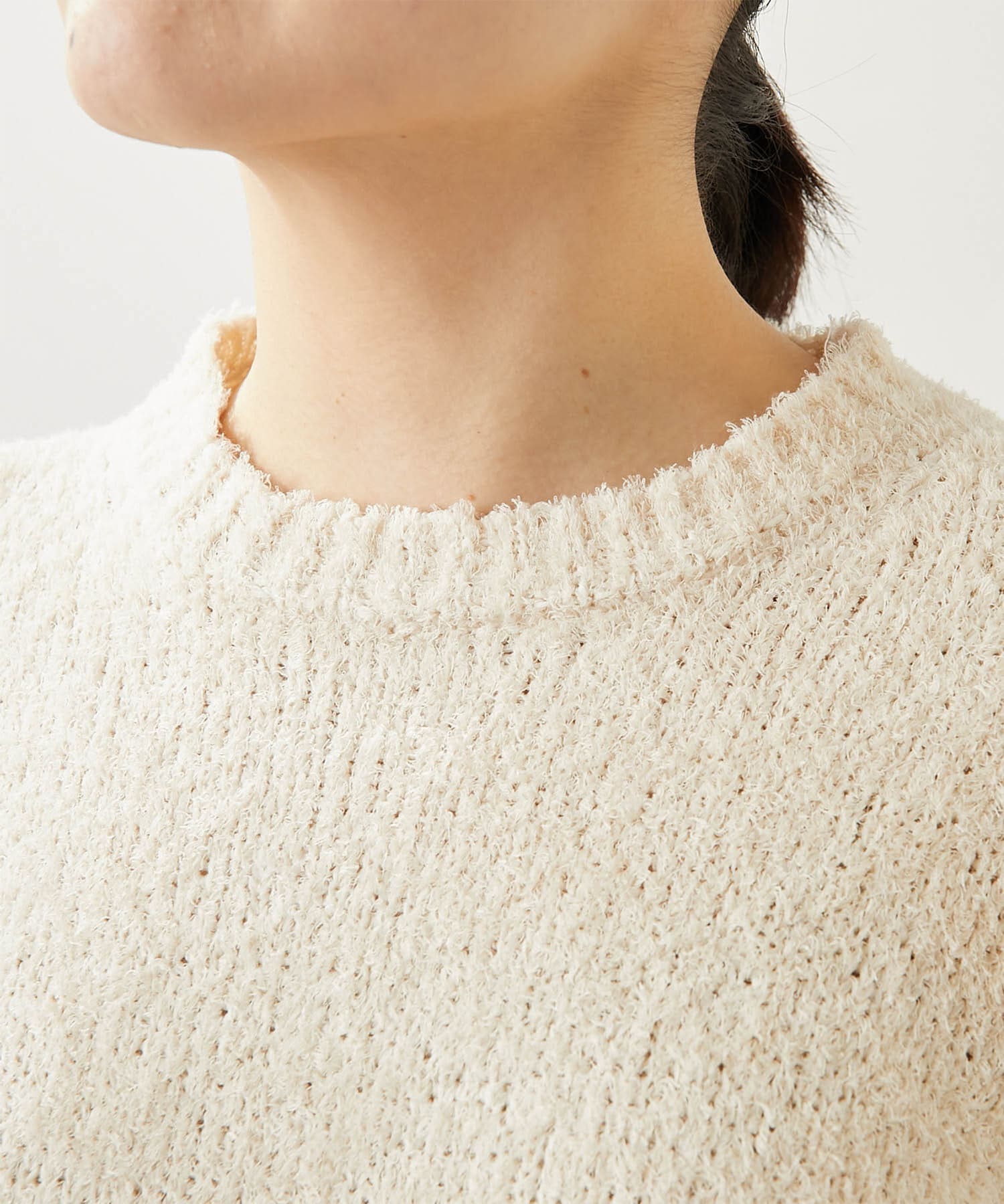 ■独特の表情を持つイタリア糸で仕上げたニットプルオーバー。