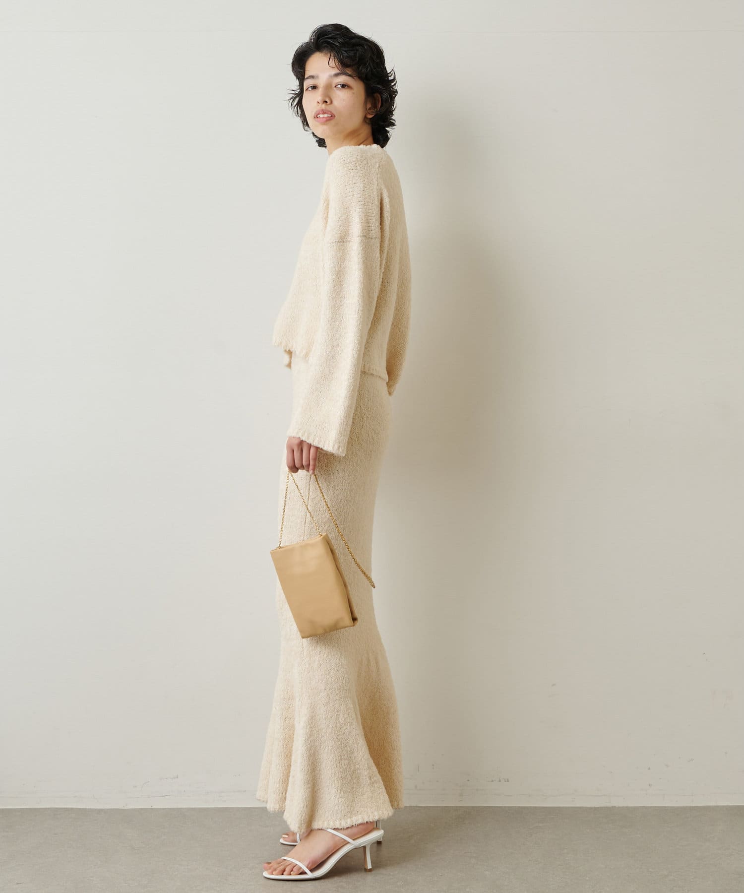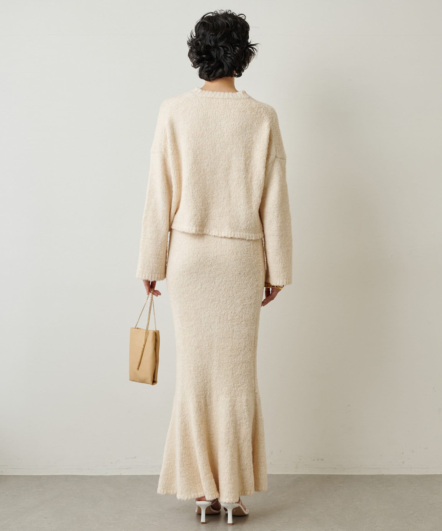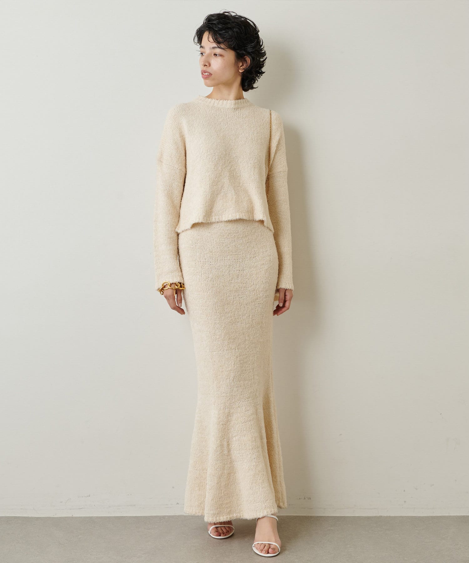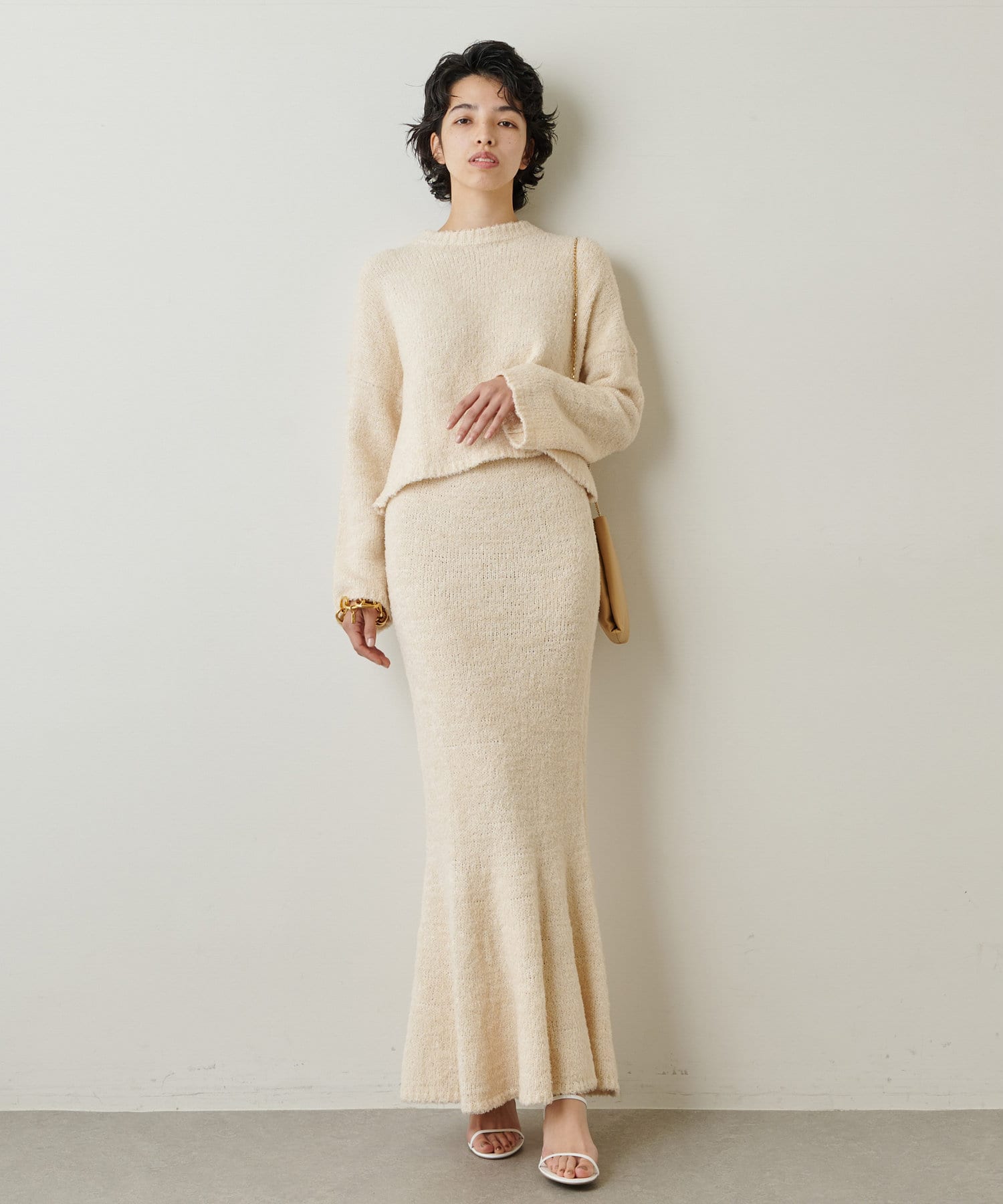 ■同素材の MAREMMAニットスカート(ブランド品番:WGZ1021101A0006)とのセットアップを楽しむのもおすすめ。