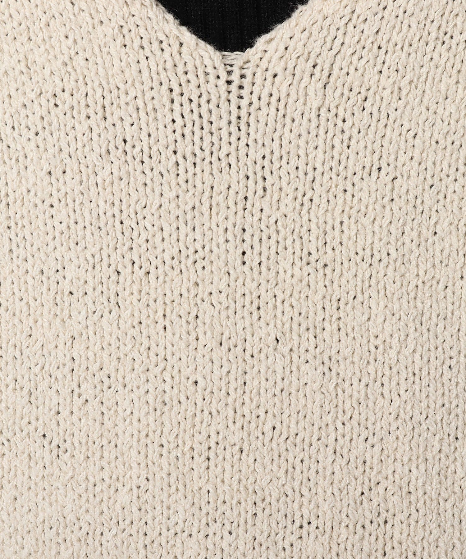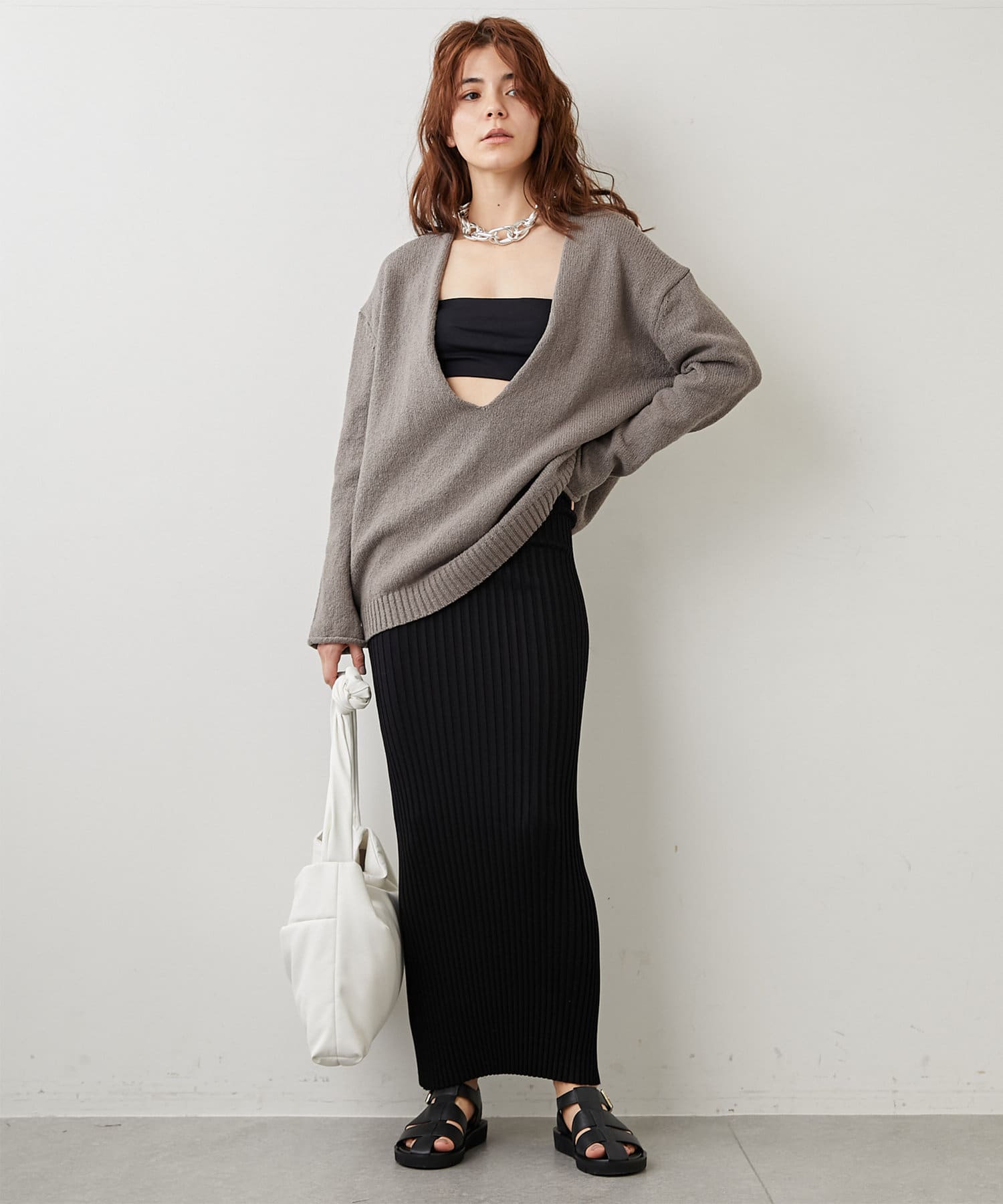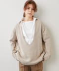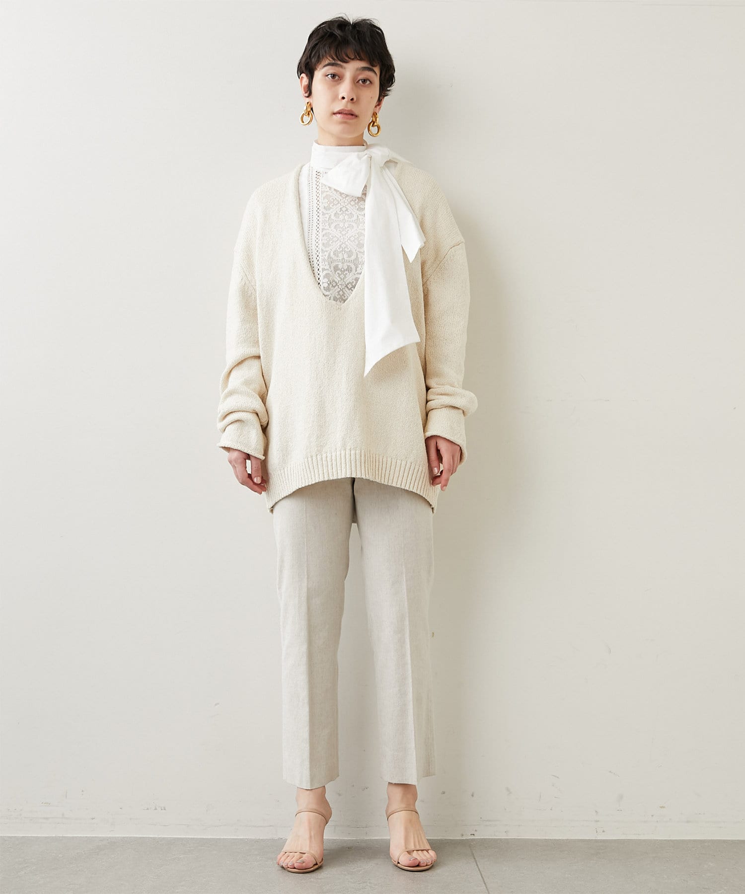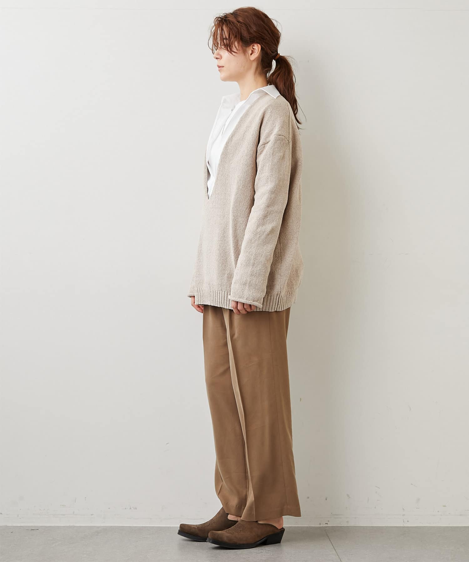 ■ワイドシルエットに深めのVネックが特徴的なニットプルオーバー。