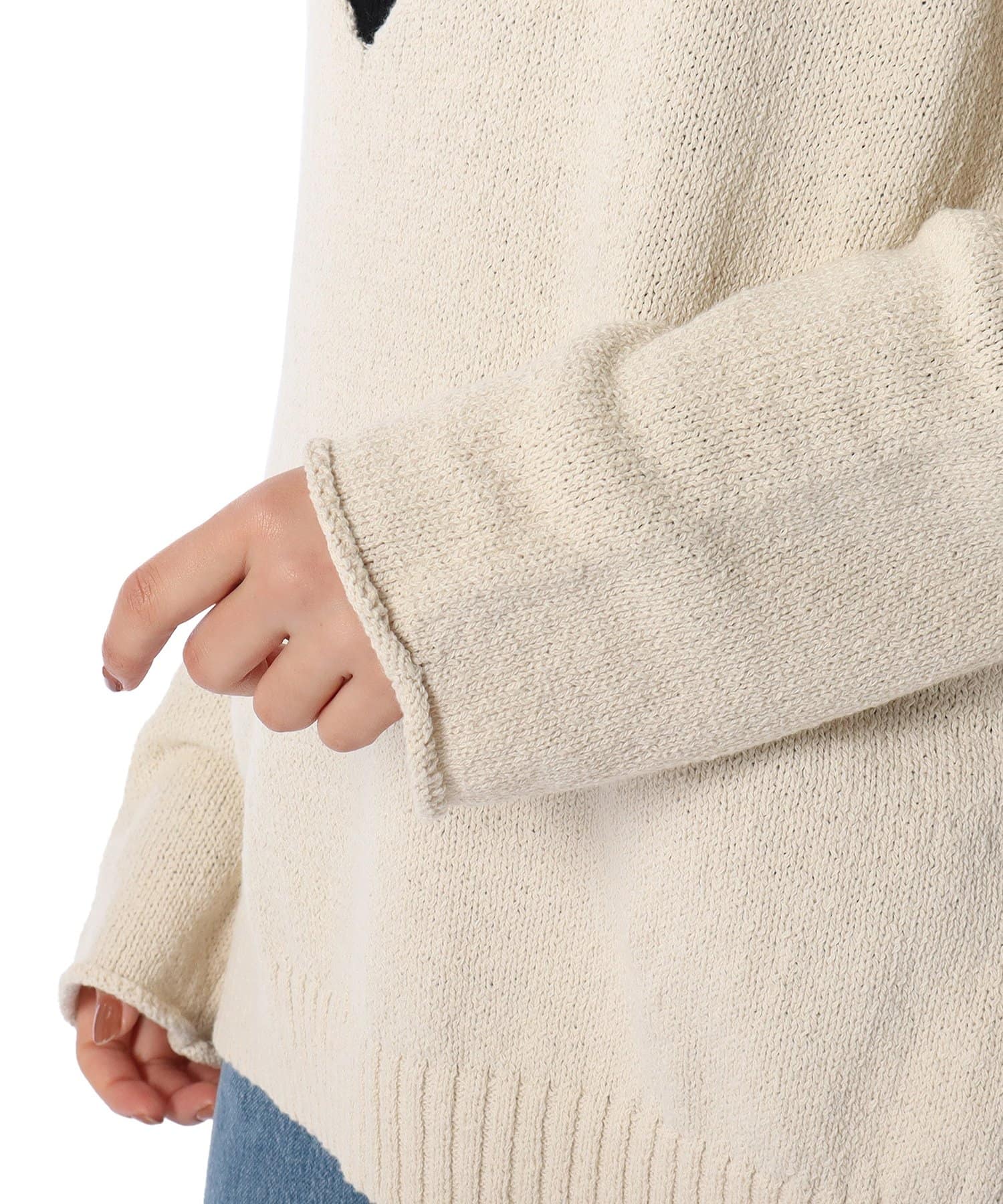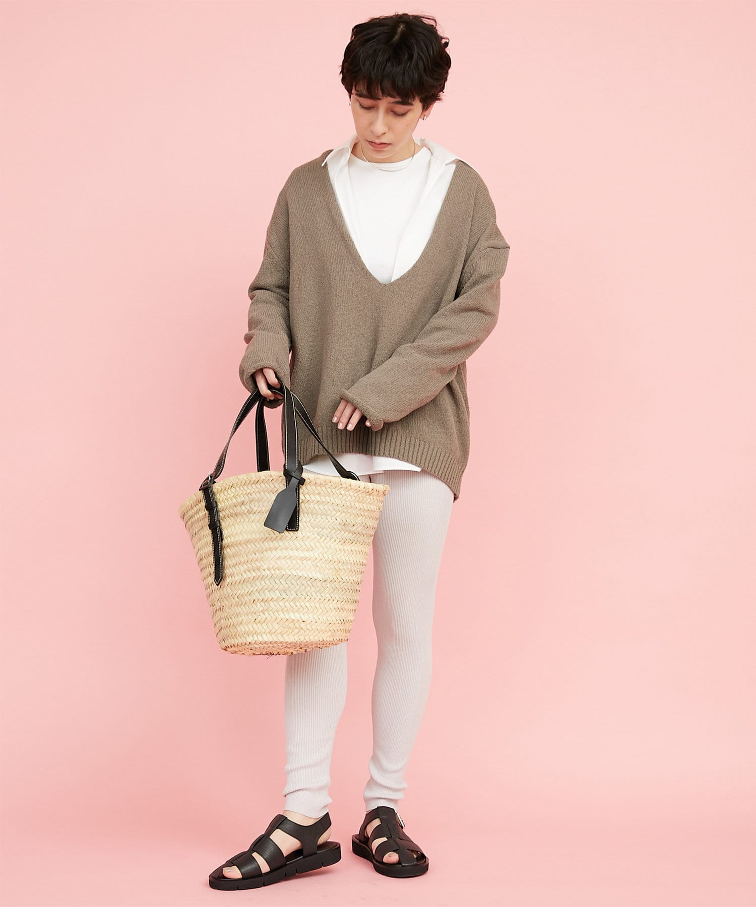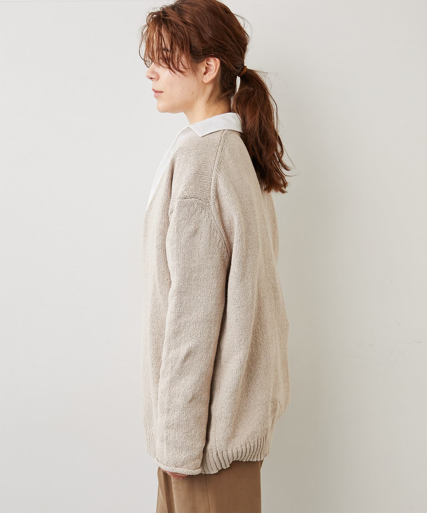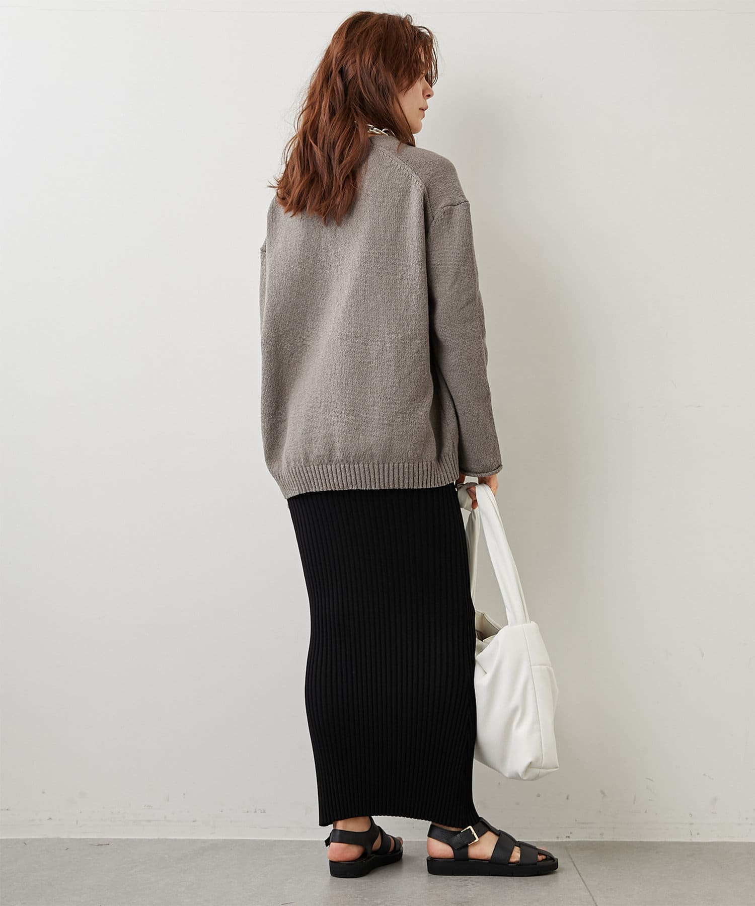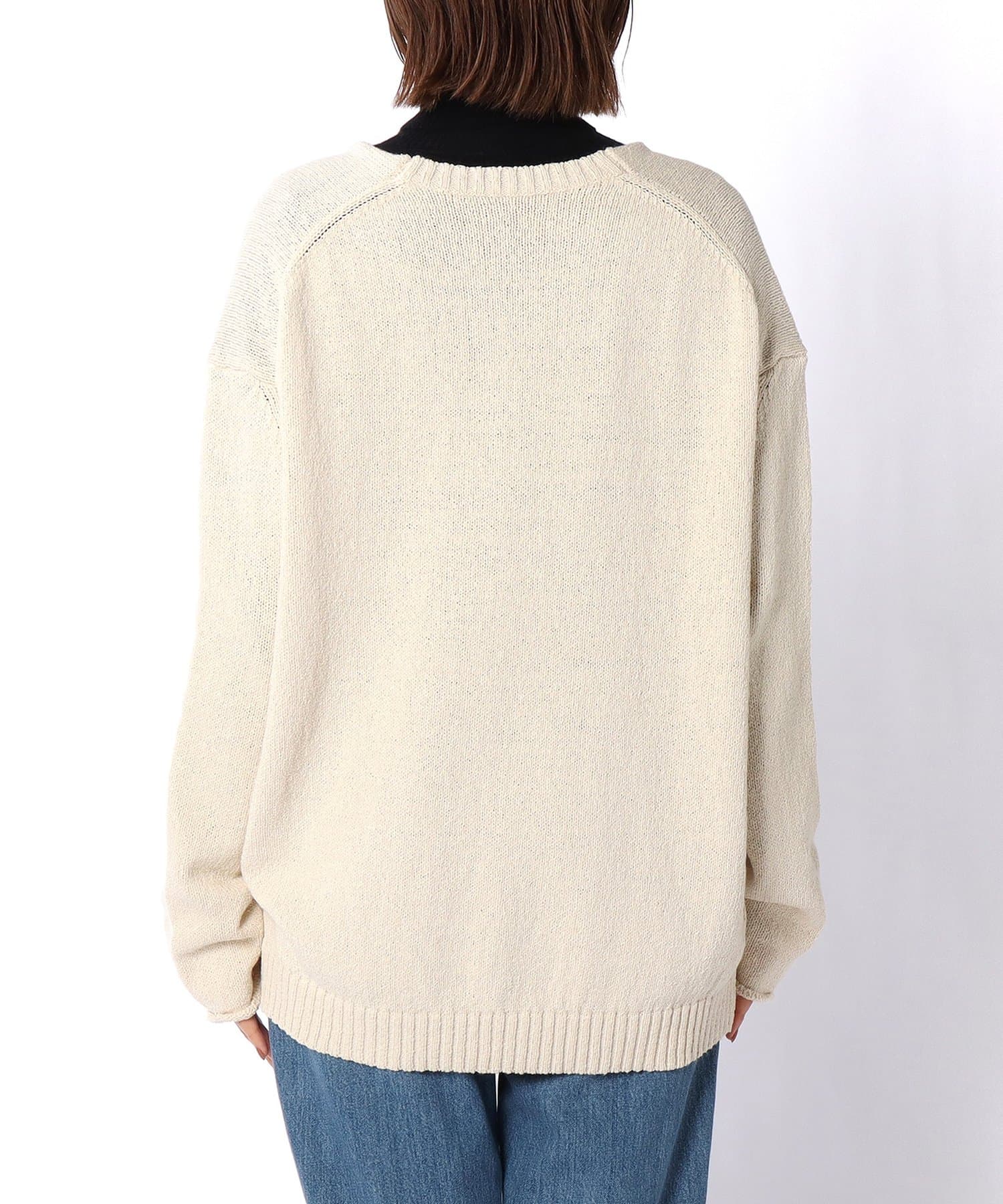 ■ワイドシルエットに深めのVネックが特徴的なニットプルオーバー。