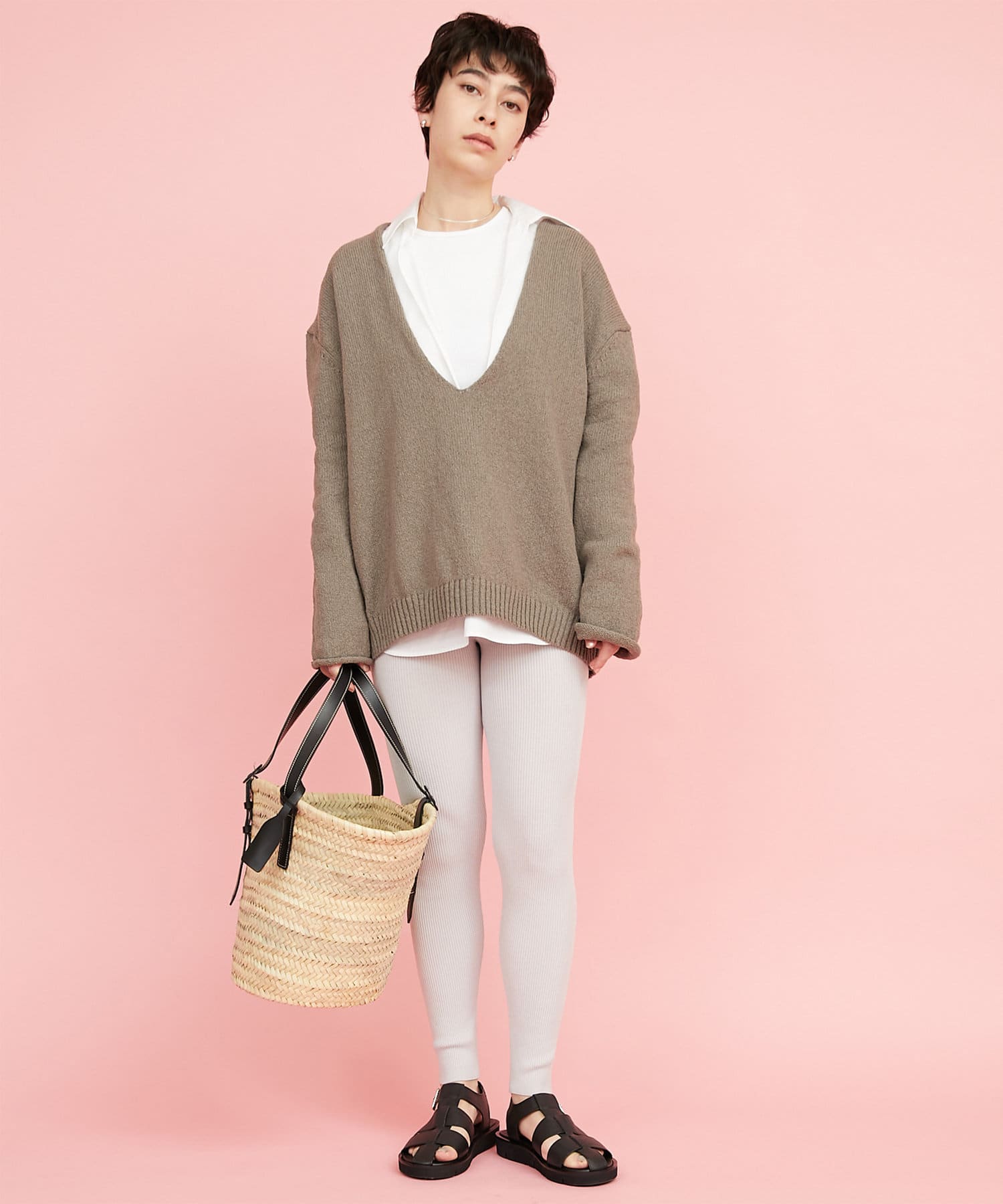 着こなしの幅が広がる、独特シルエットのVネックニット