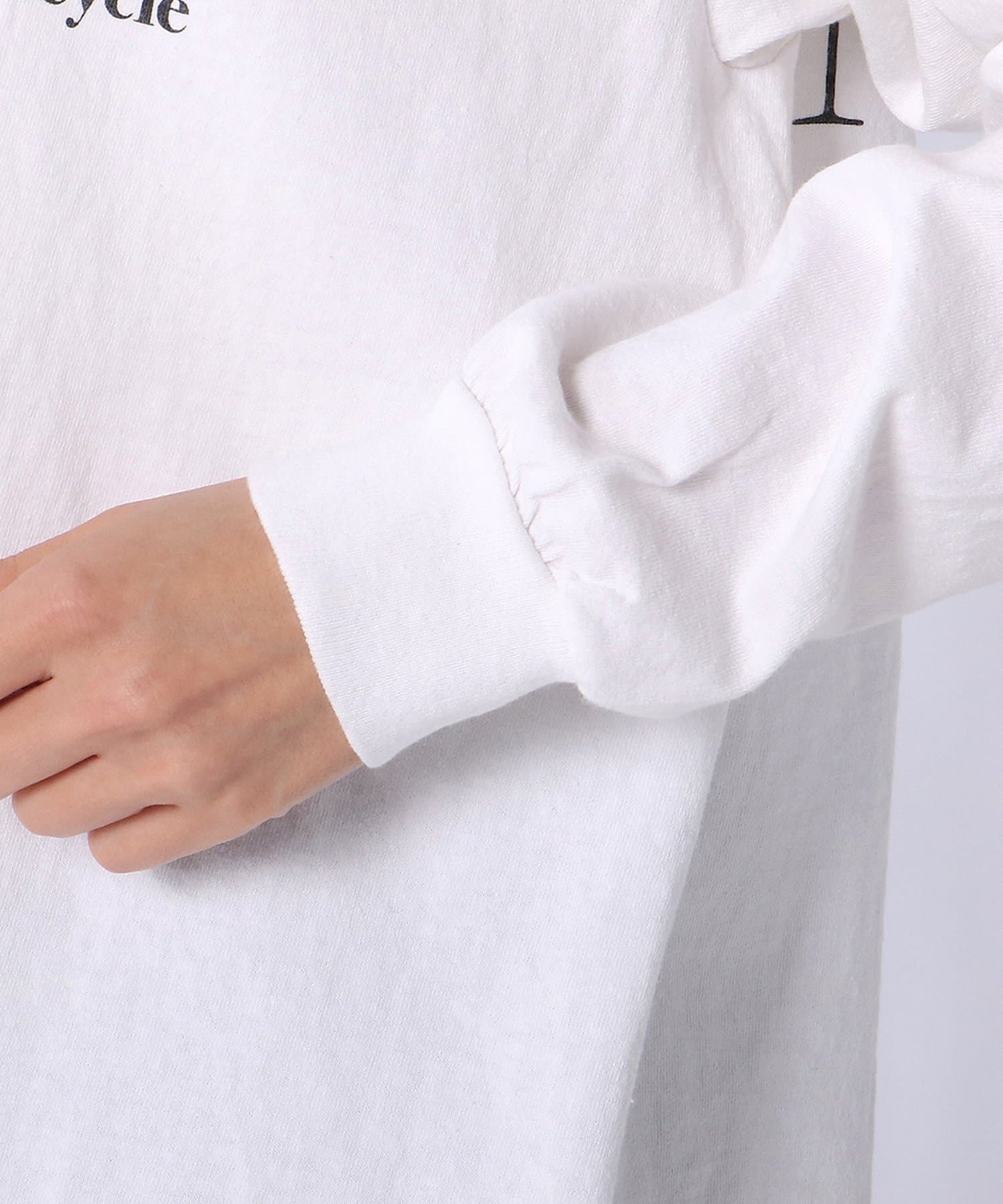 ホワイトボディに映える、ユーズド感のある色褪せたロゴプリント。
