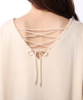 ■カジュアルなデザインながら、バックのVカットとリボンデティールが女性らしさをプラス。