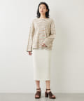 ベージュ:ピッチの違うボーダーとグリーンがアクセントの配色カラー。