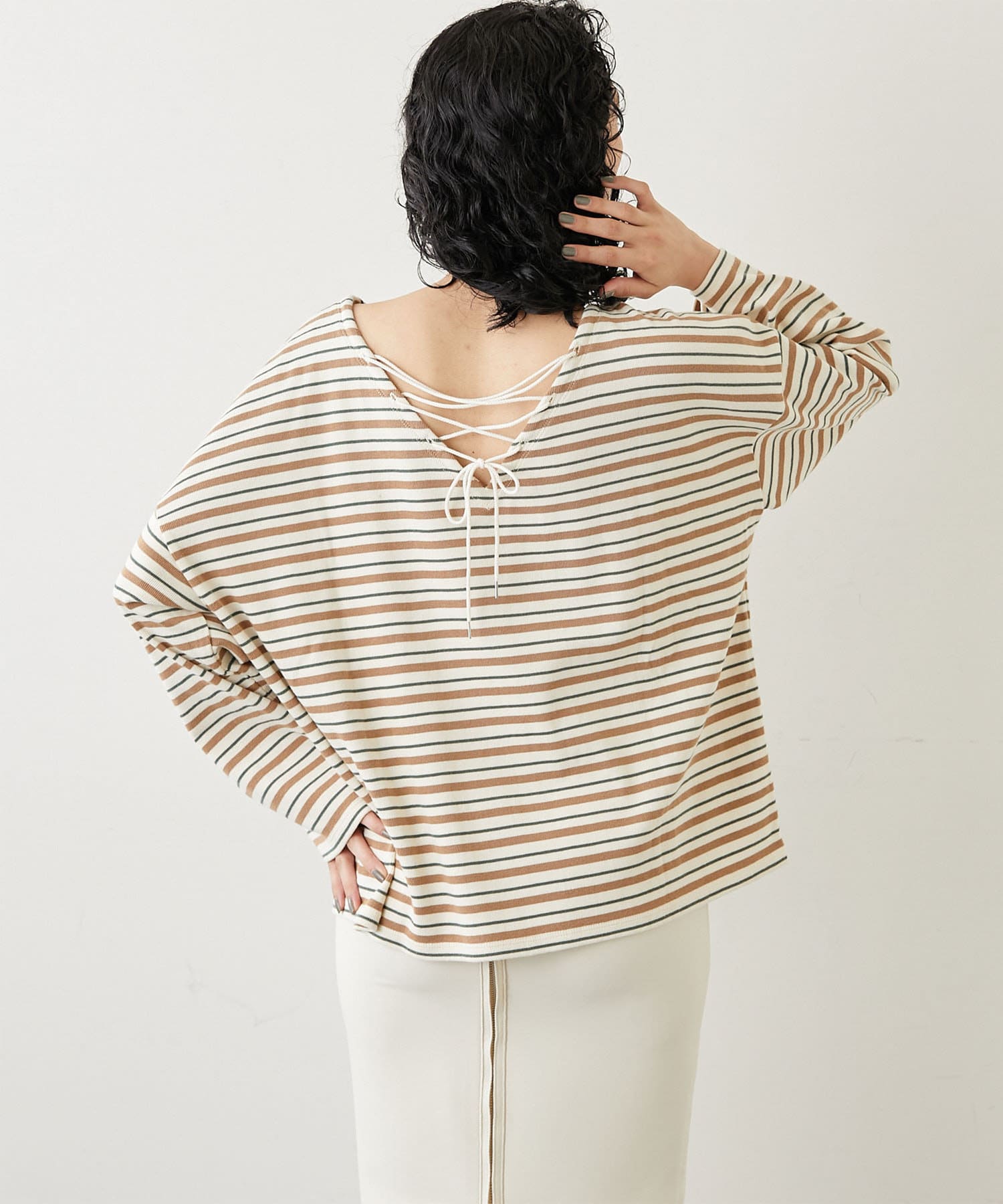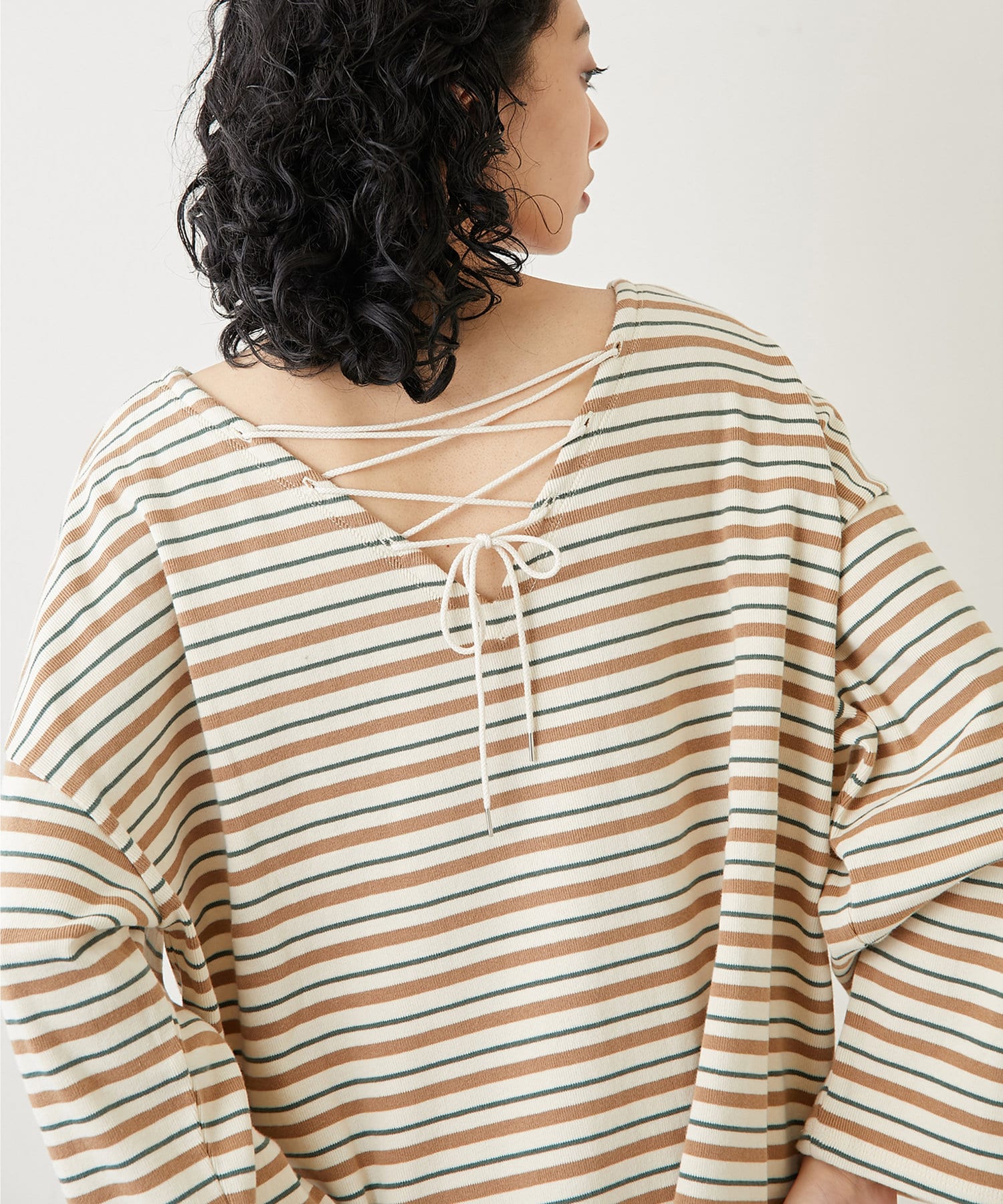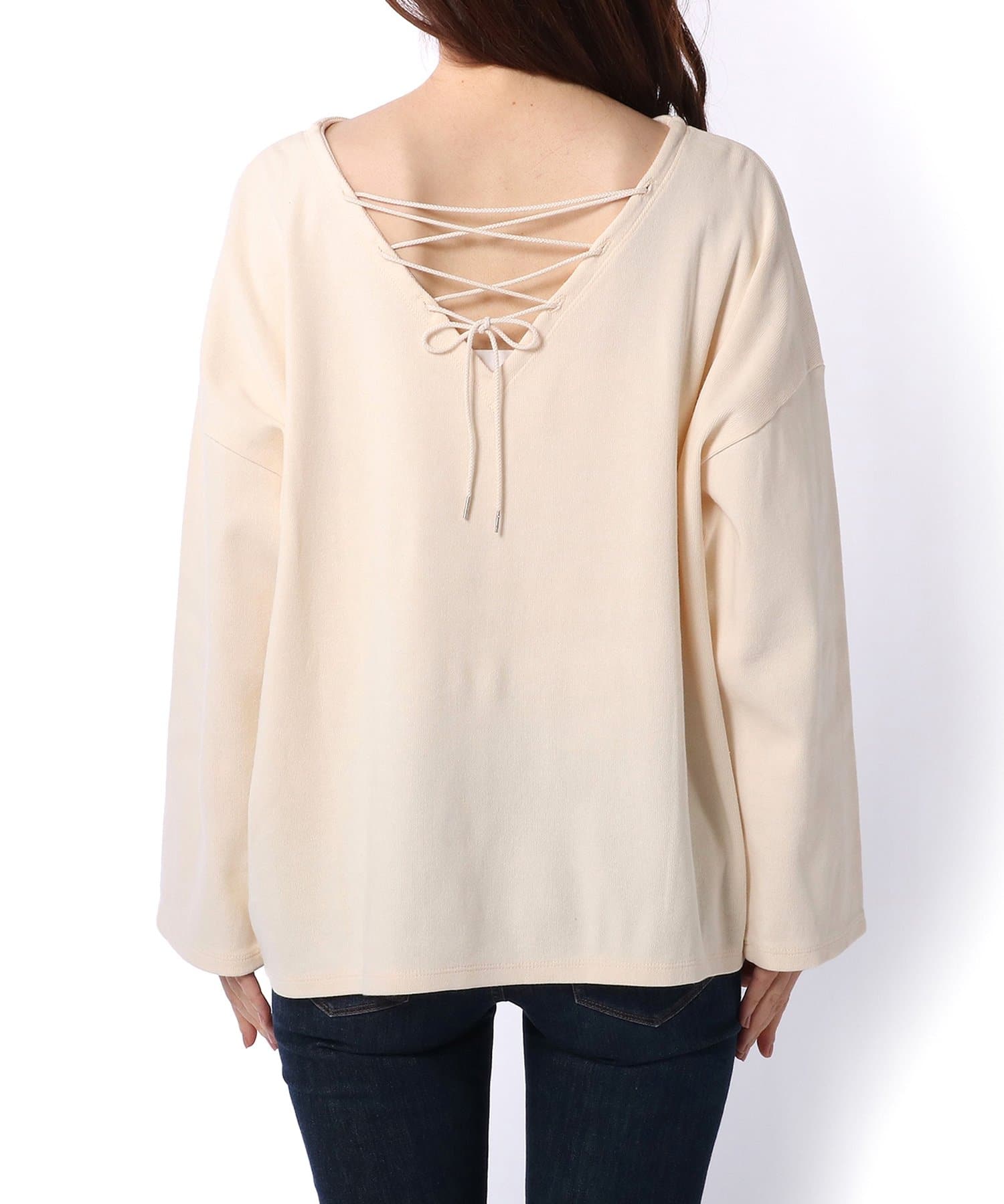 ■バックスタイルのレースアップがポイントになったロングスリーブTシャツ。