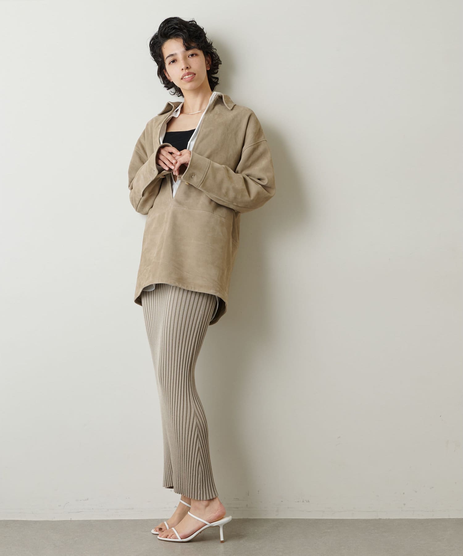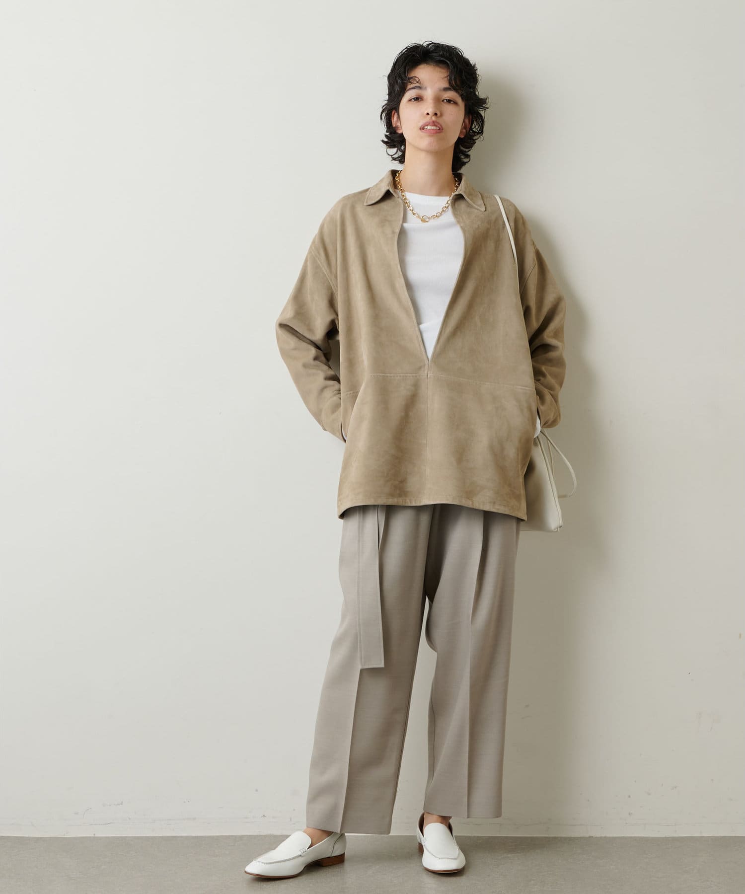個性的なシルエットで周りに差のつくスエードプルオーバー