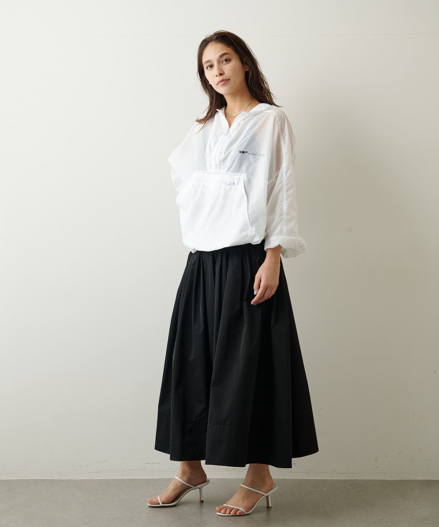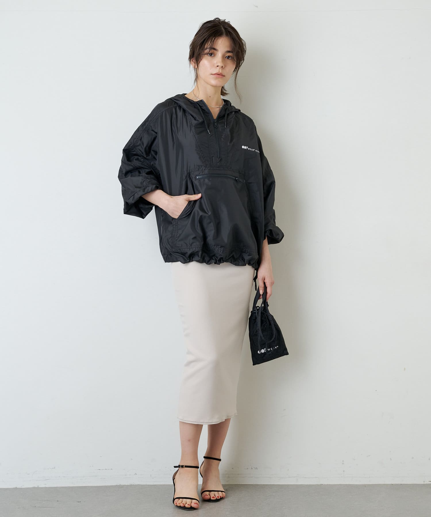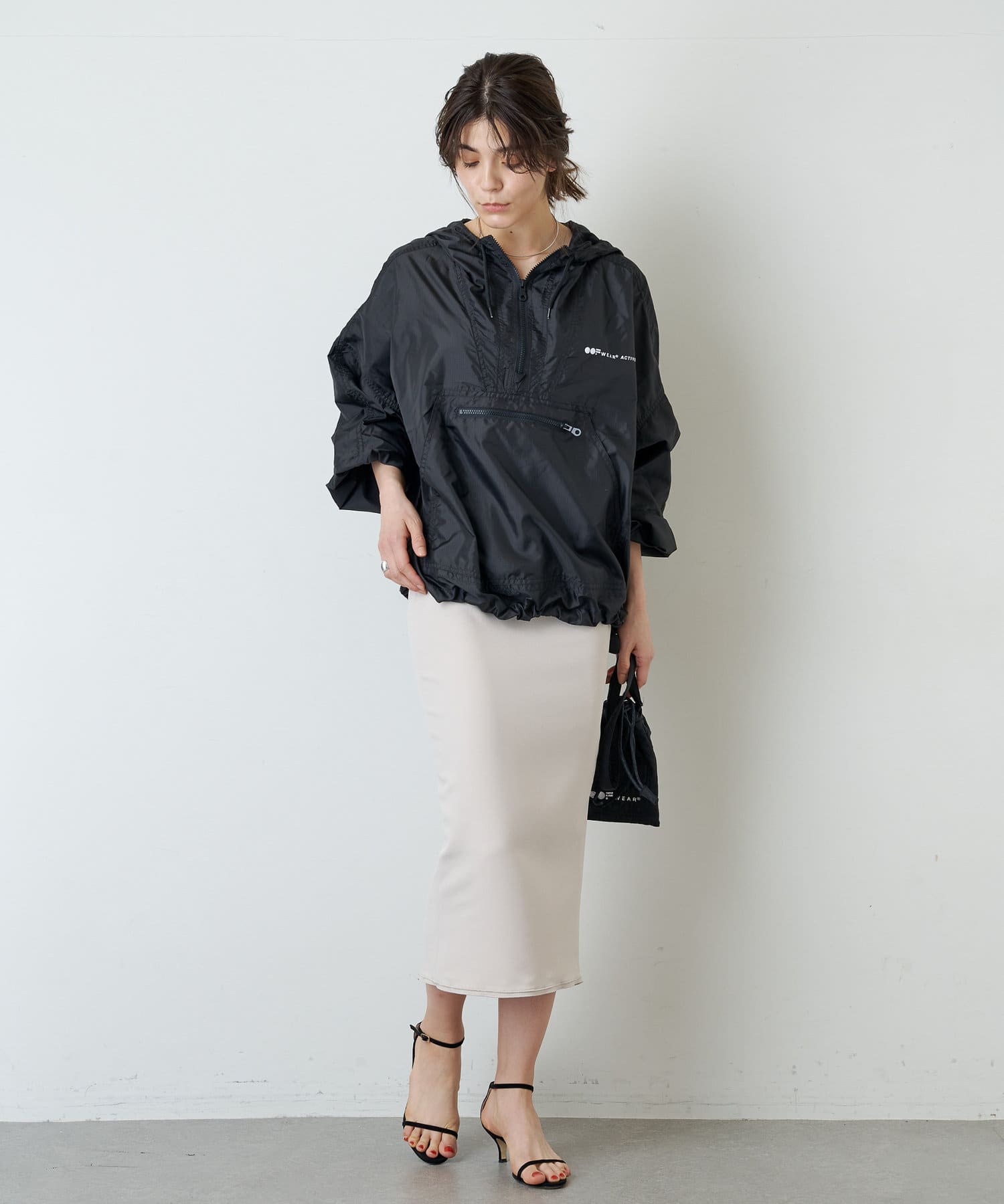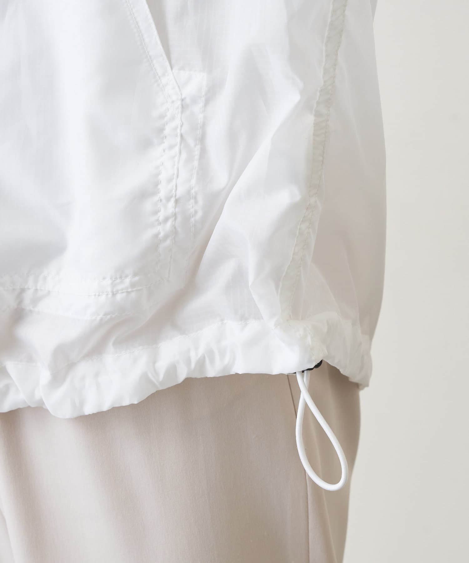 ■裾のドローコードを絞ればふんわりとしたシルエットも楽しめるデザイン。