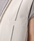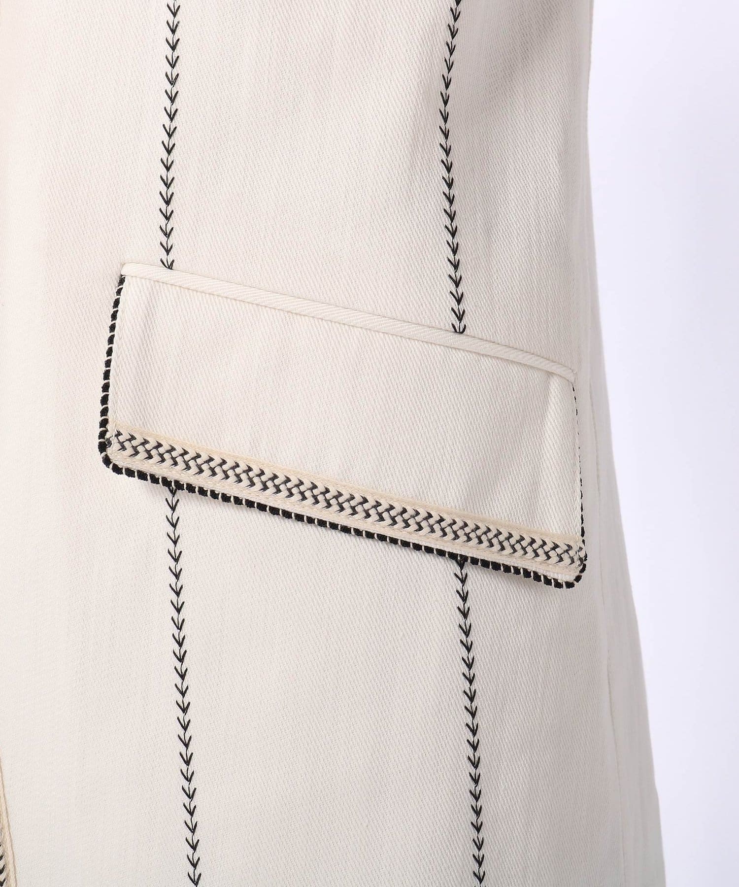 ■繊細に施されたストライプの刺繍デティールがシンプルなシルエットに映えるデザイン。