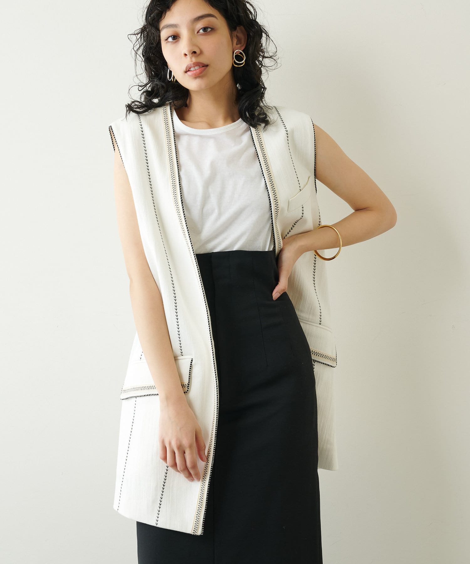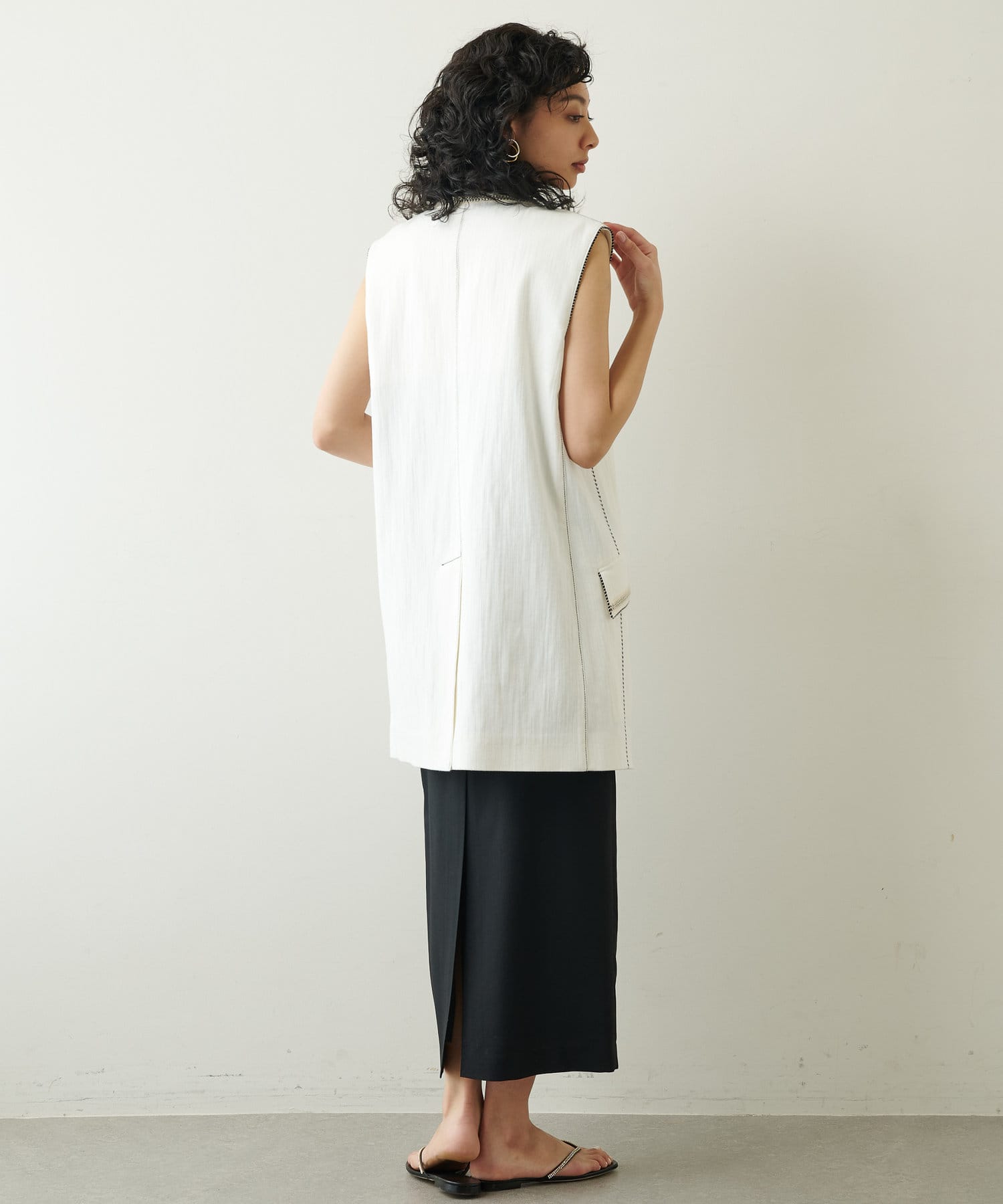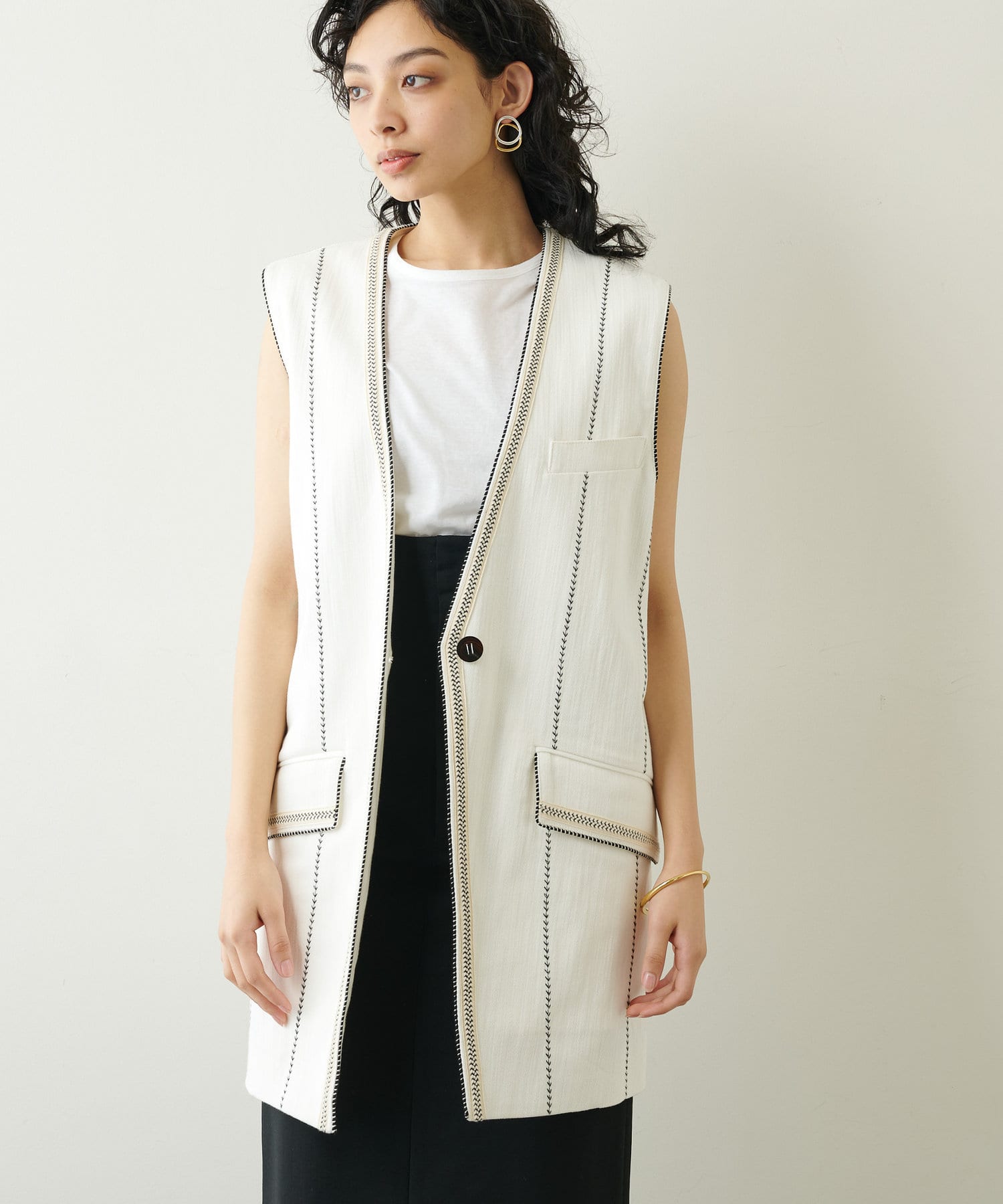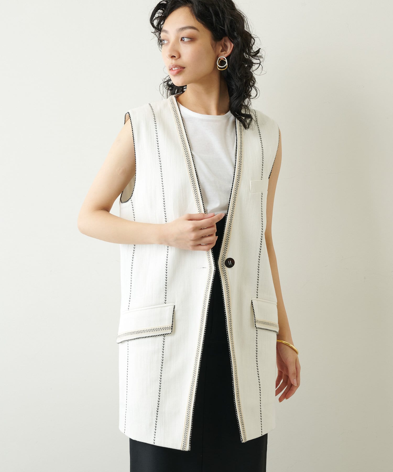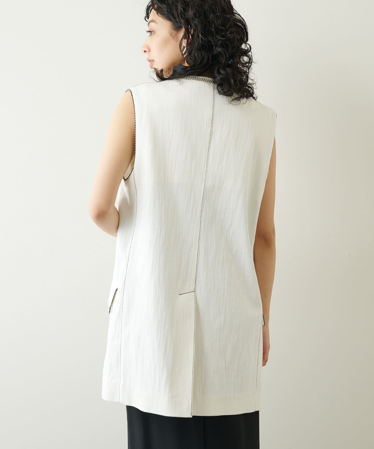 ■高級感漂う仕立ての良さが魅力のスリーブレスジャケット。