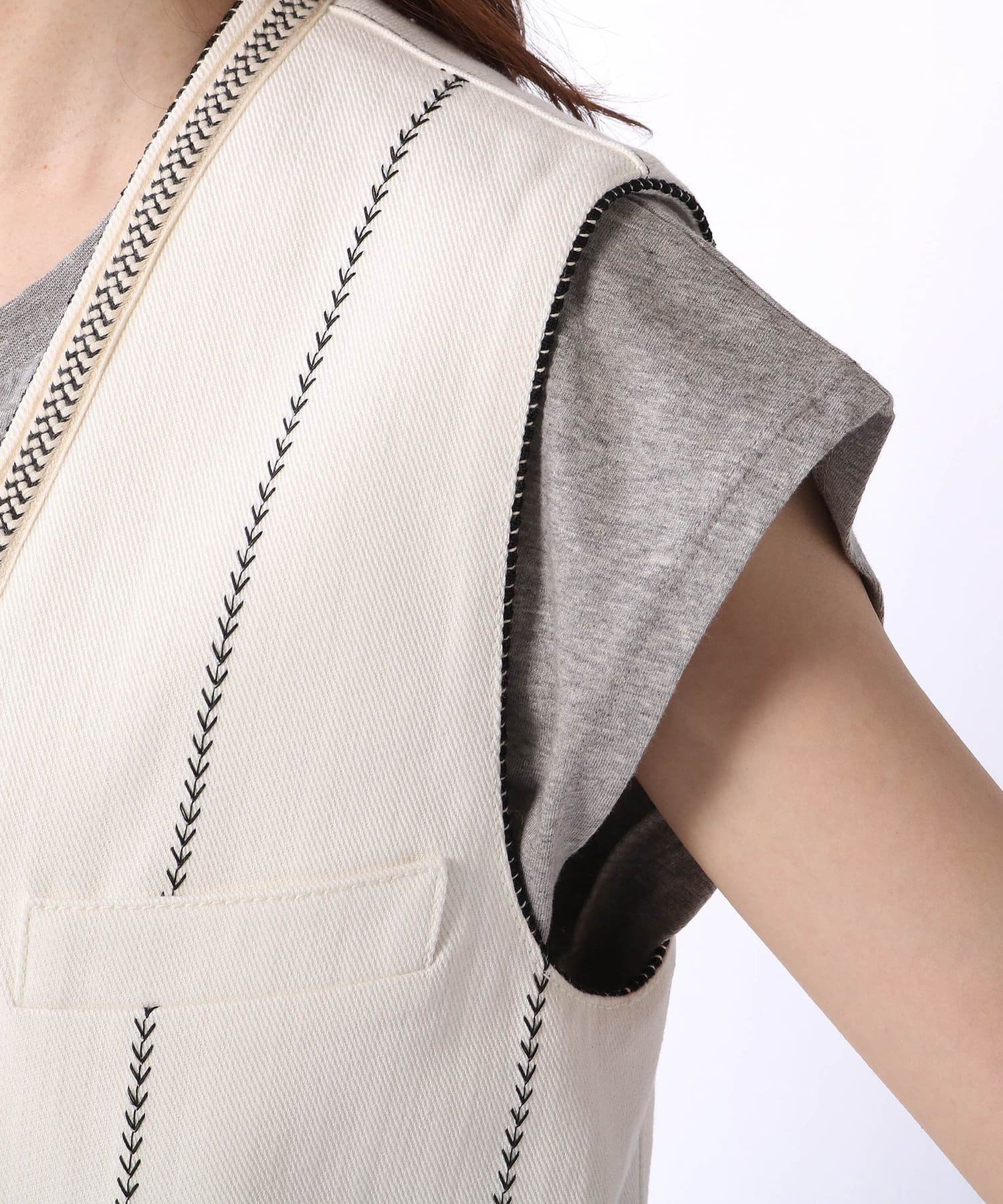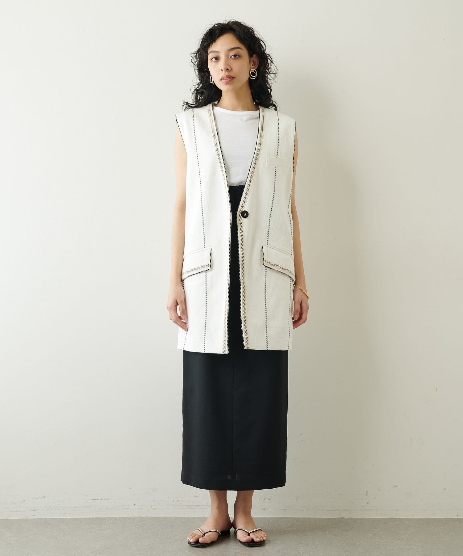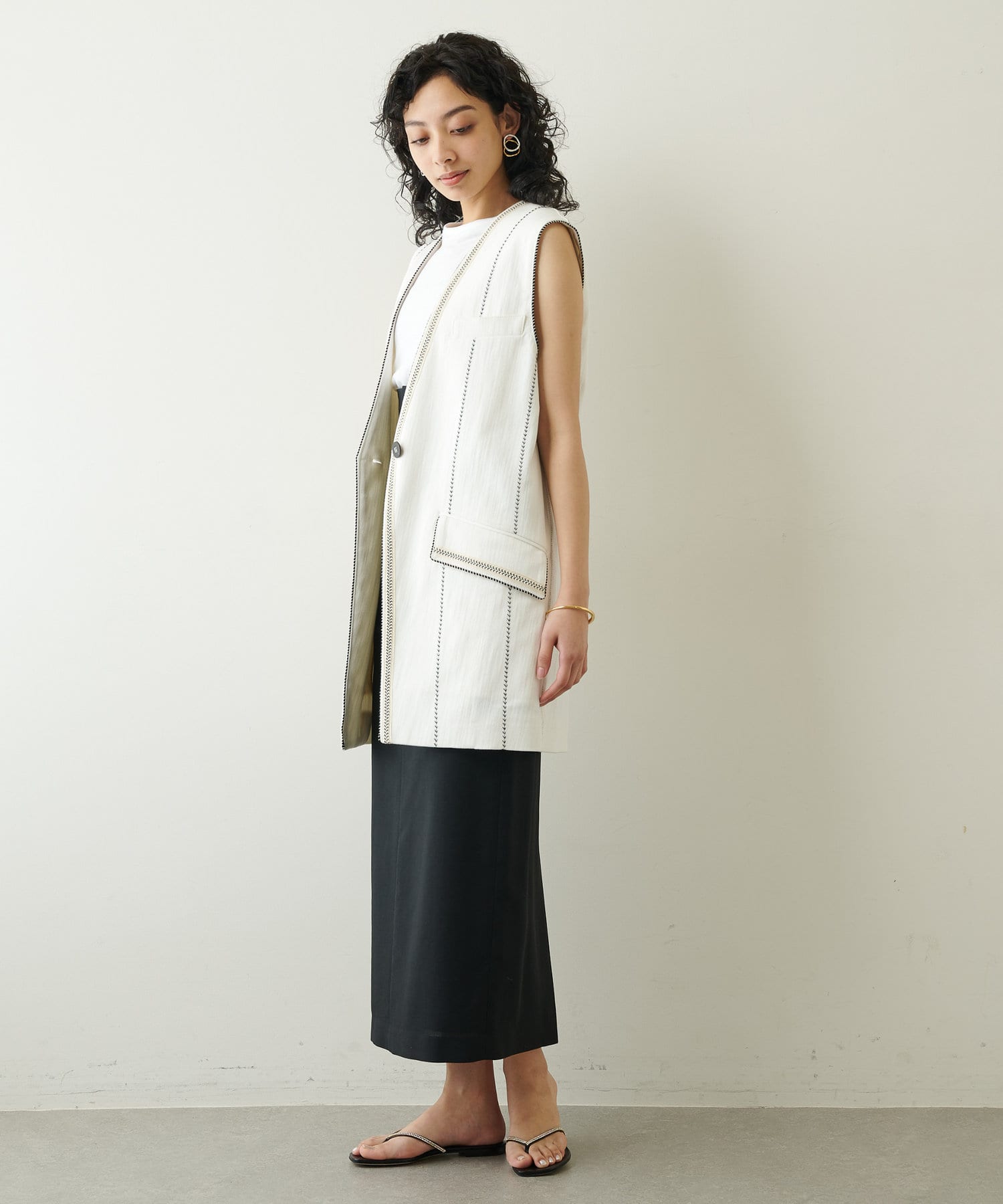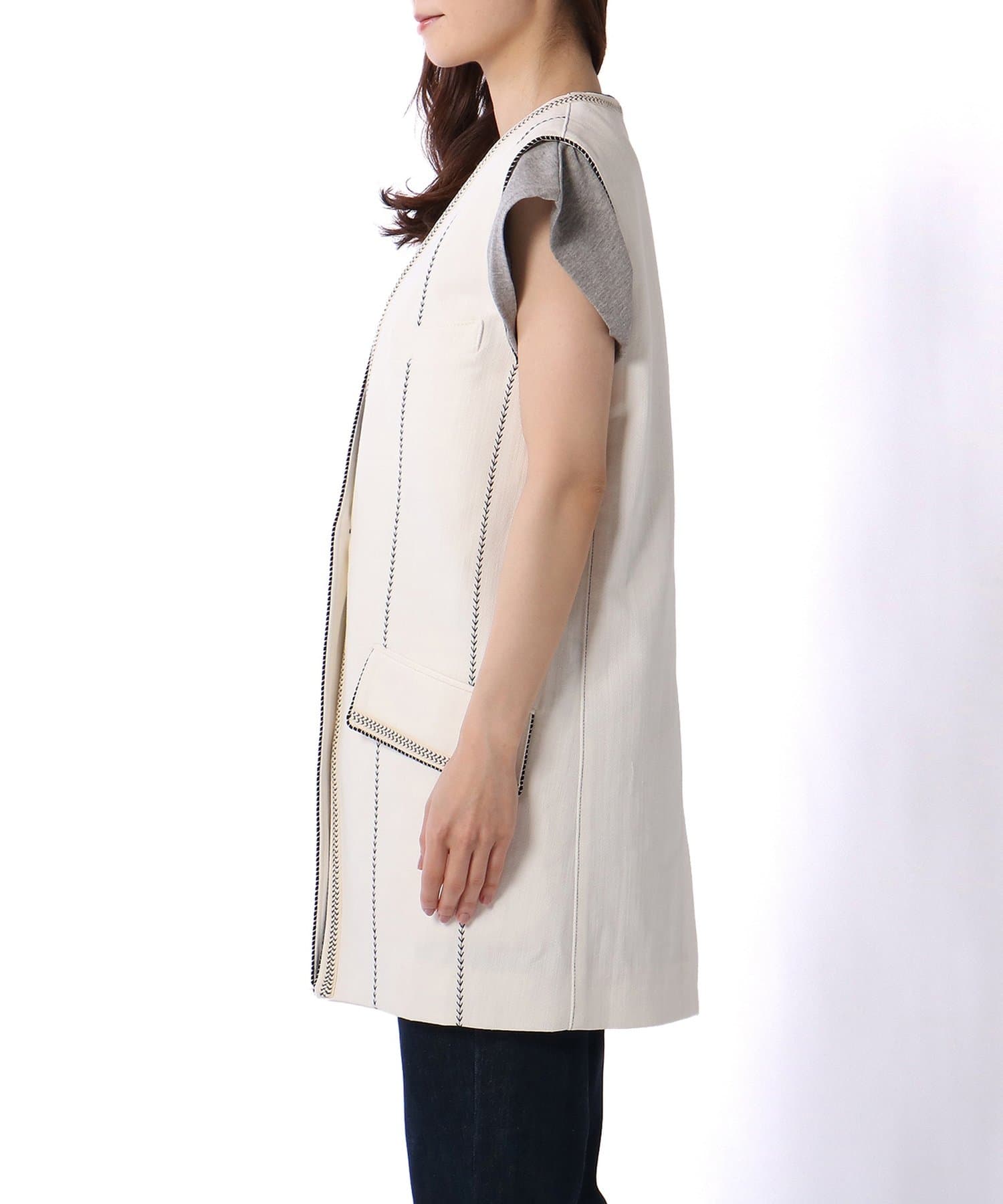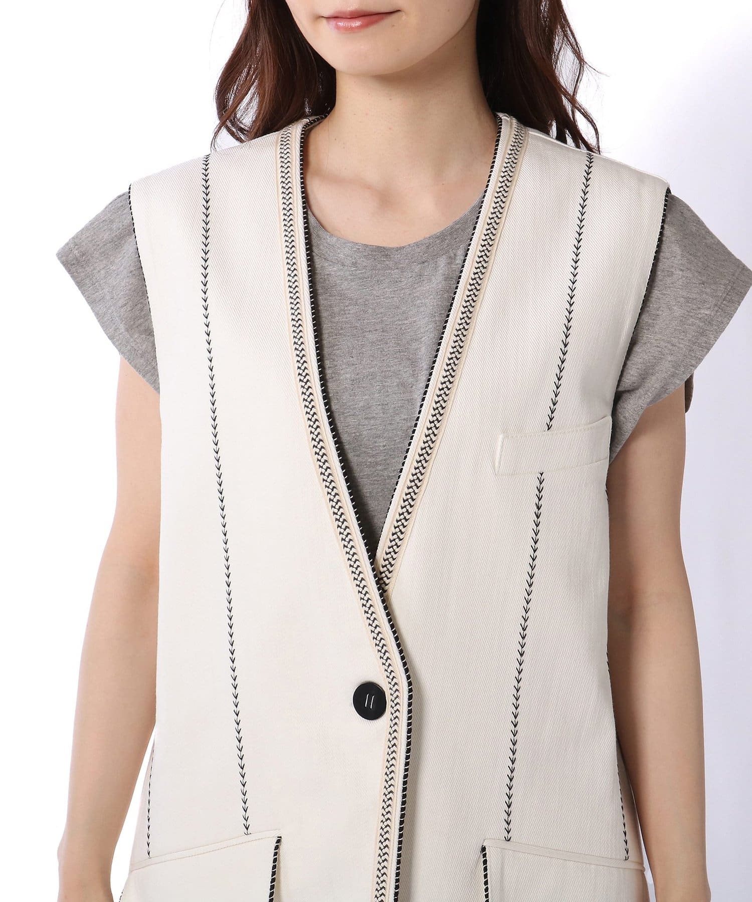 ■高級感漂う仕立ての良さが魅力のスリーブレスジャケット。