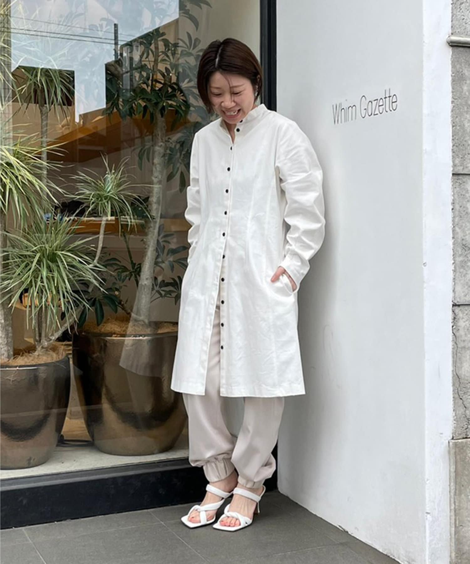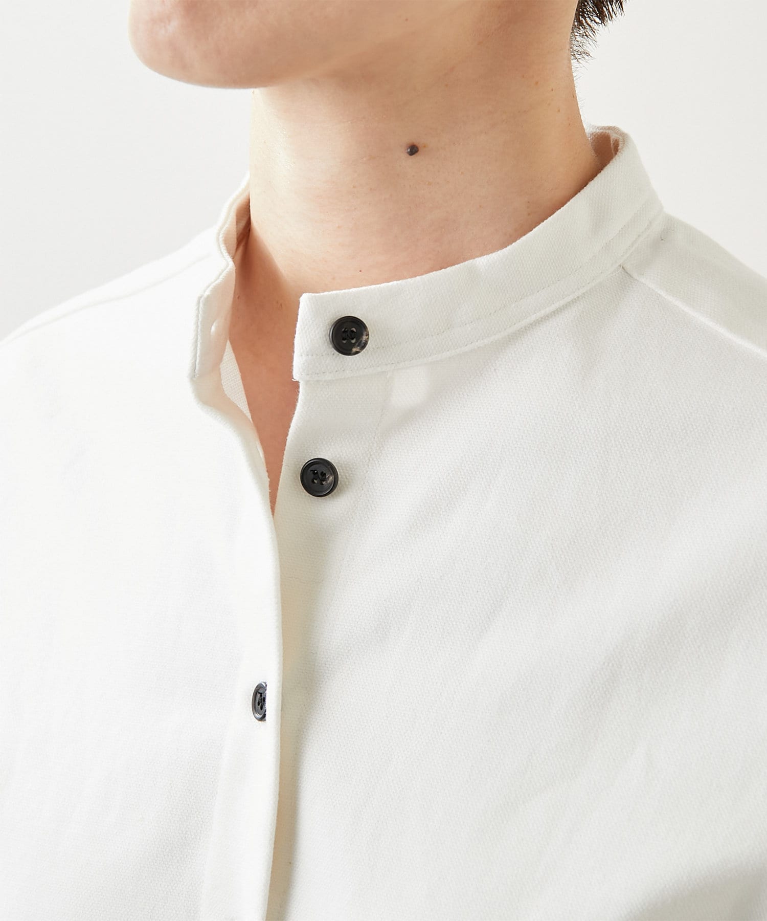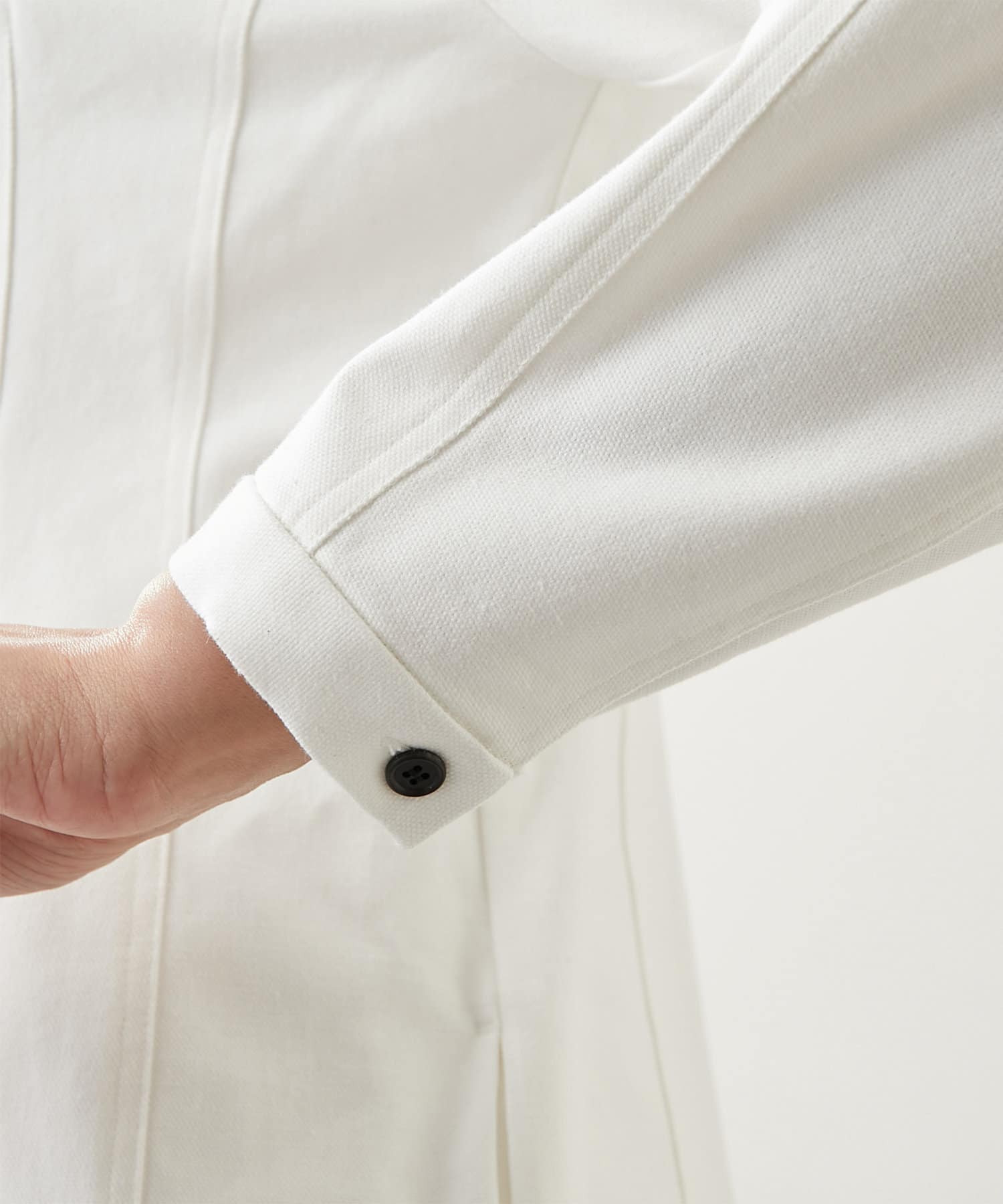 ■ミニマルなディテールに映える黒ボタンがアクセントポイント。