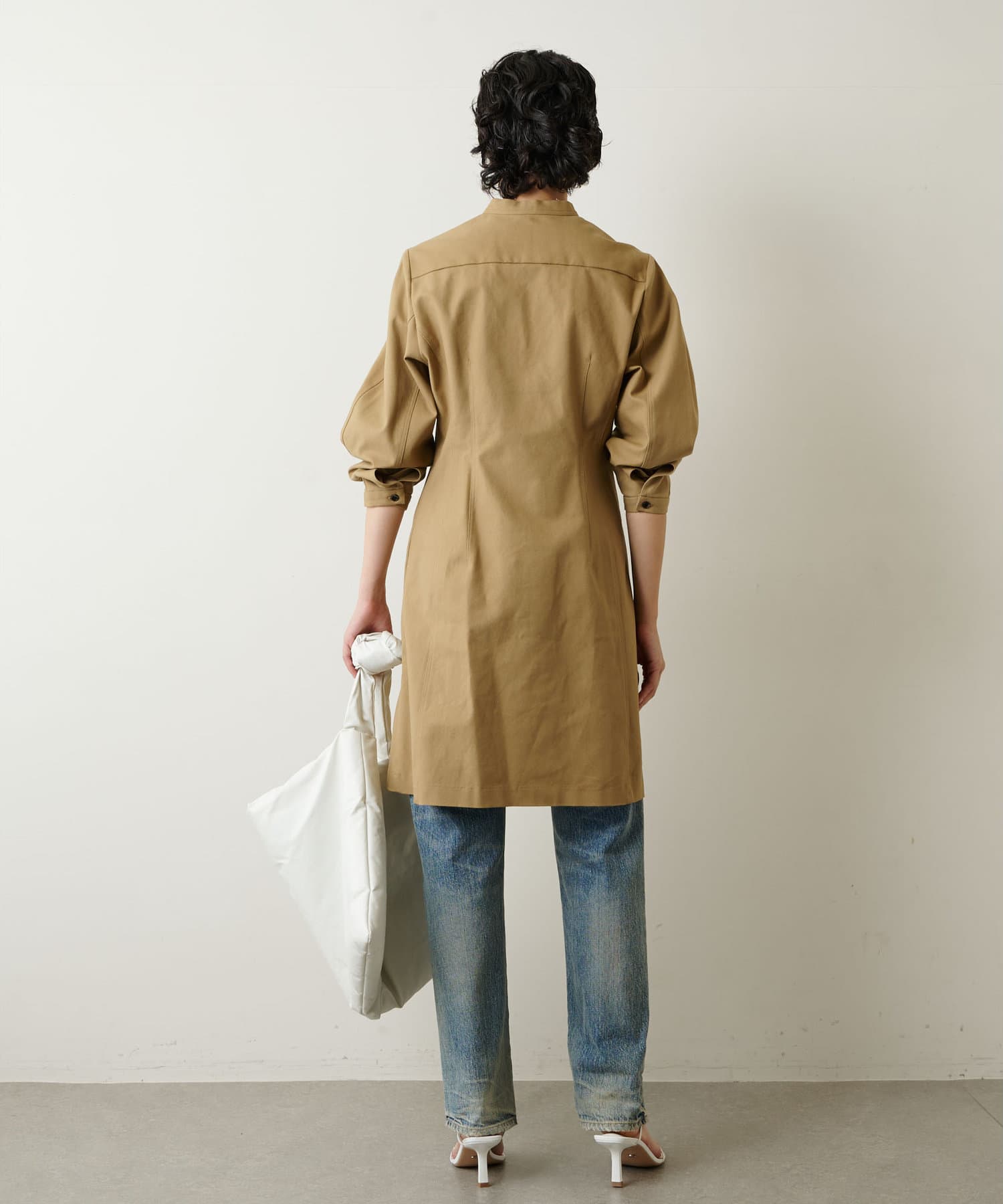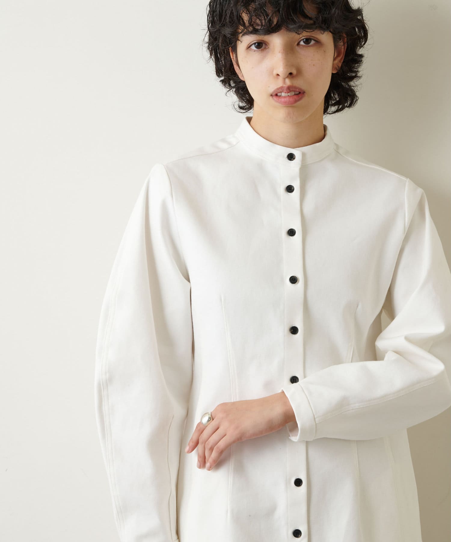 ■スタンドカラーが甘さを引き締め、よりモードな雰囲気をプラス。