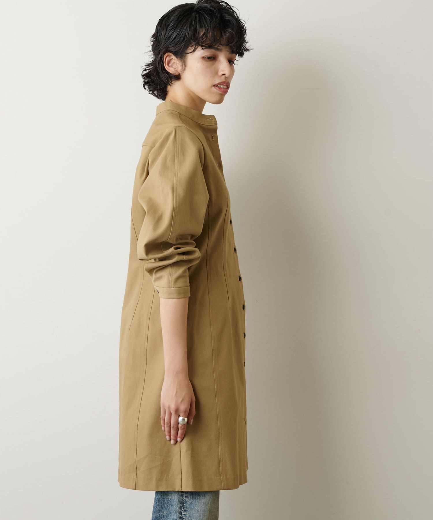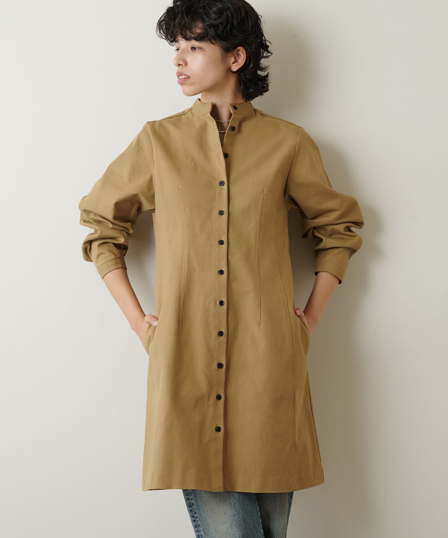 ベージュのトレンチが、通勤電車でかぶり過ぎているので、使いやすいベージュですが、着回し効きそうな羽織りを探していて、まさにピッタリでした。少し前から大活躍です。もう少し暖かくなったら、チュニックとして着たいです!