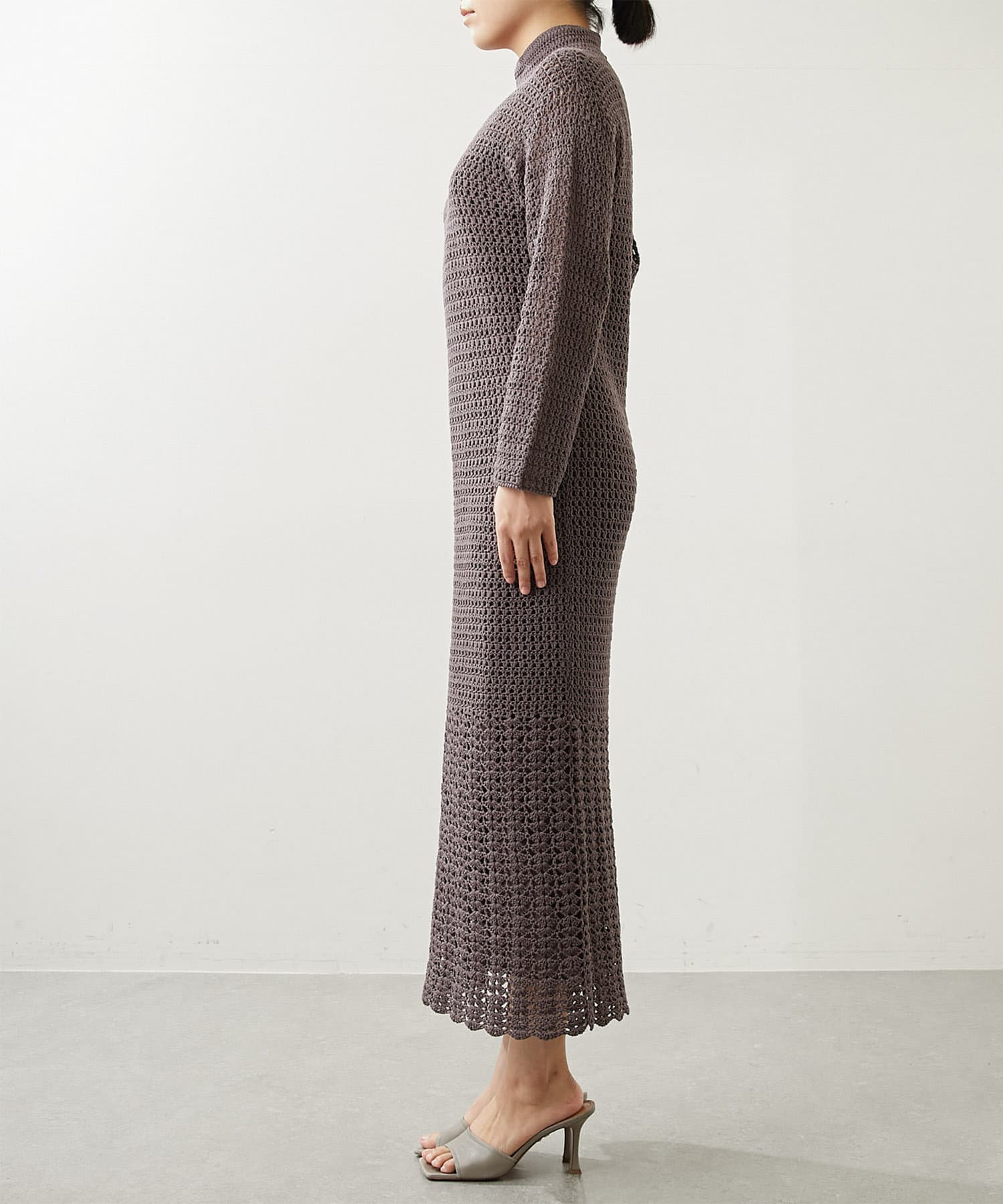 上品な透け感でエレガントに着こなすクロシェワンピース