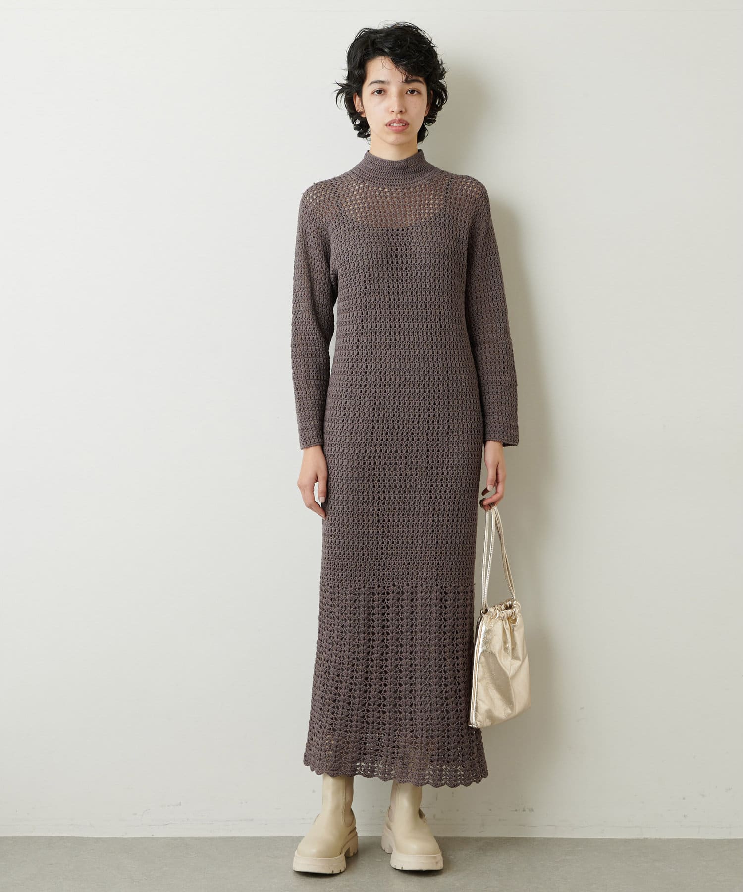 ■程よいハリ感のある糸で編みこんだ高見えのクロシェワンピース。