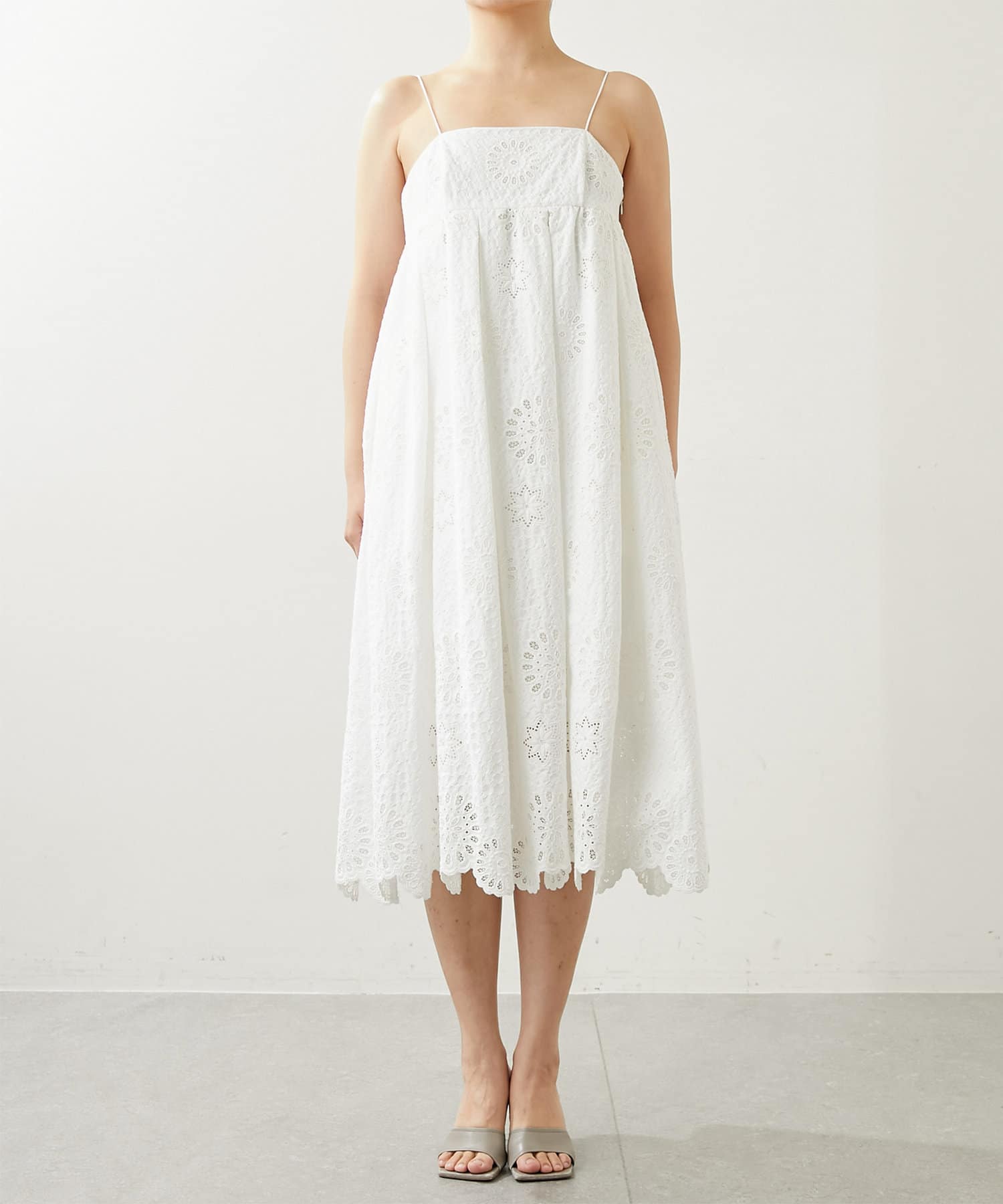 ■オリジナルレース生地をたっぷりと使用した贅沢なキャミワンピース。