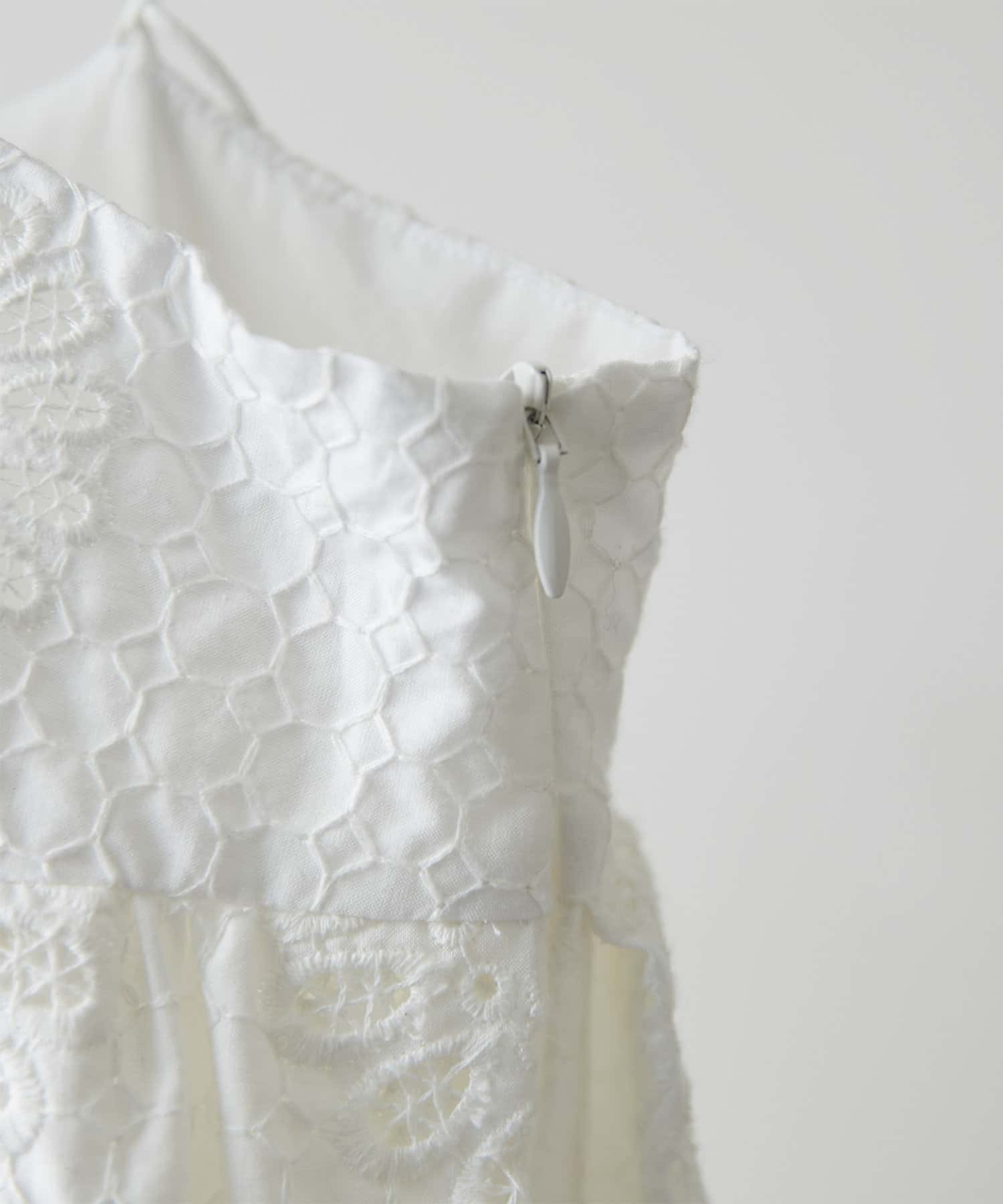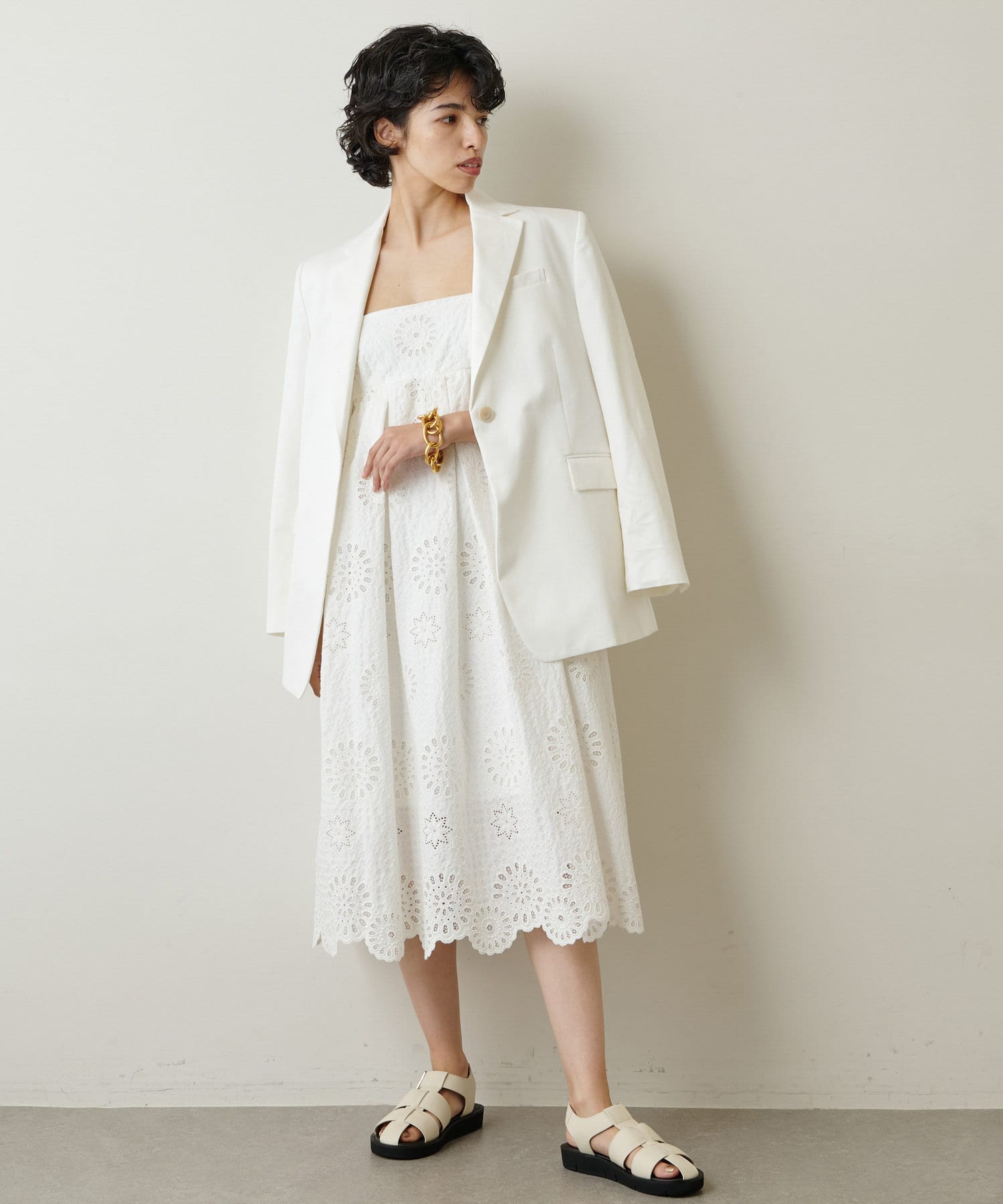 ■高級感漂うしっかりとハリのあるアイレットレースが大人可愛い、春を感じさせる一着。