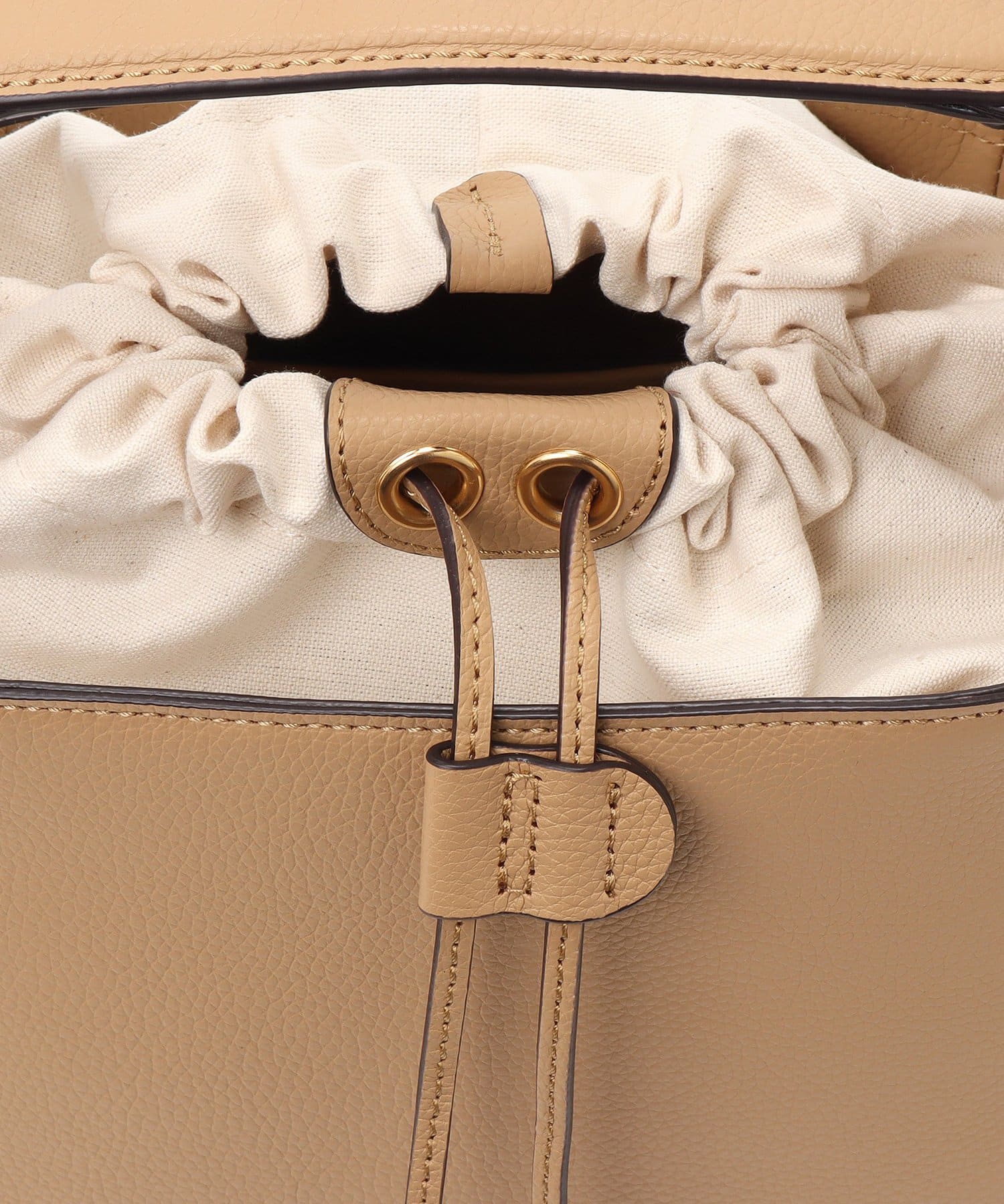 ■上品さの中に程よく抜け感をプラスする、キャンバス地の巾着ディティール。