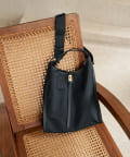 ■肩掛けしやすく綺麗なシルエットをキープする、バッグの開閉部に深くカーブを付けたデザイン。