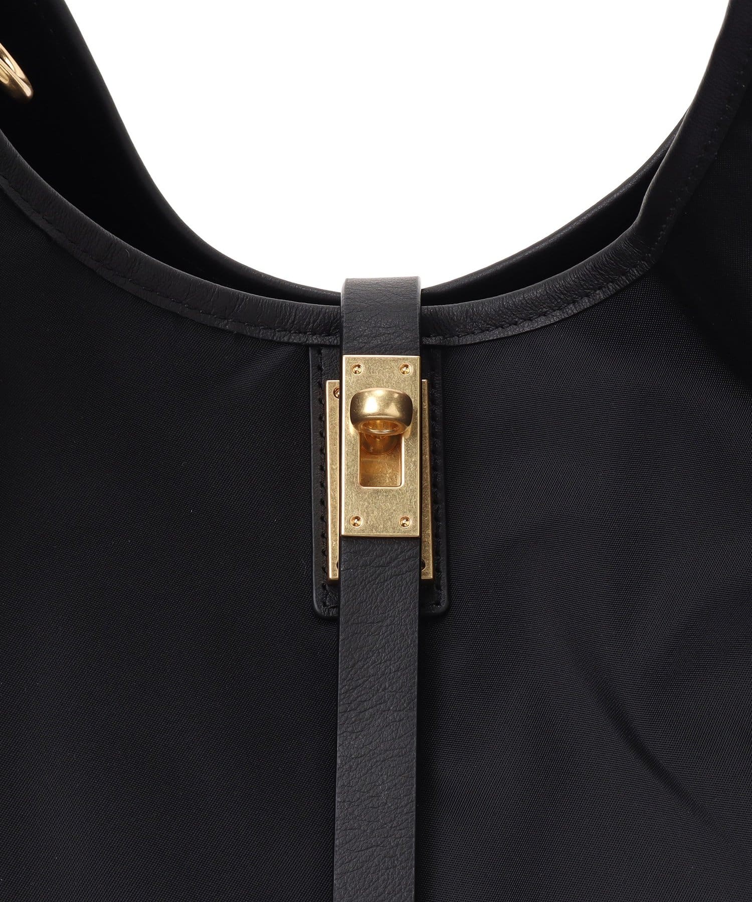 ■ゴールドカラーの金具と、レザーのトリミングが洗練された印象をプラス。