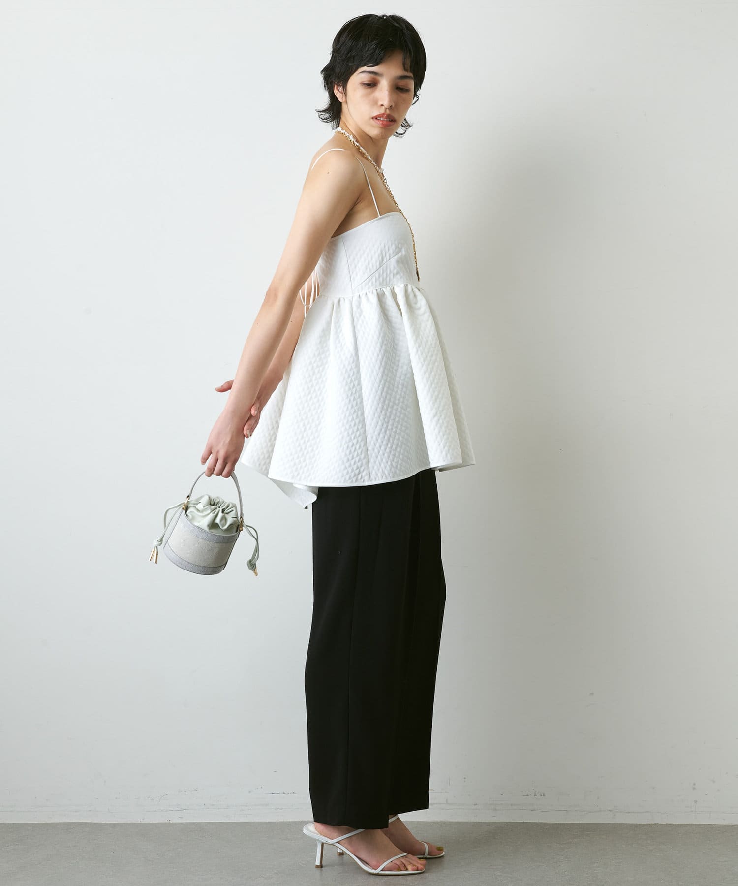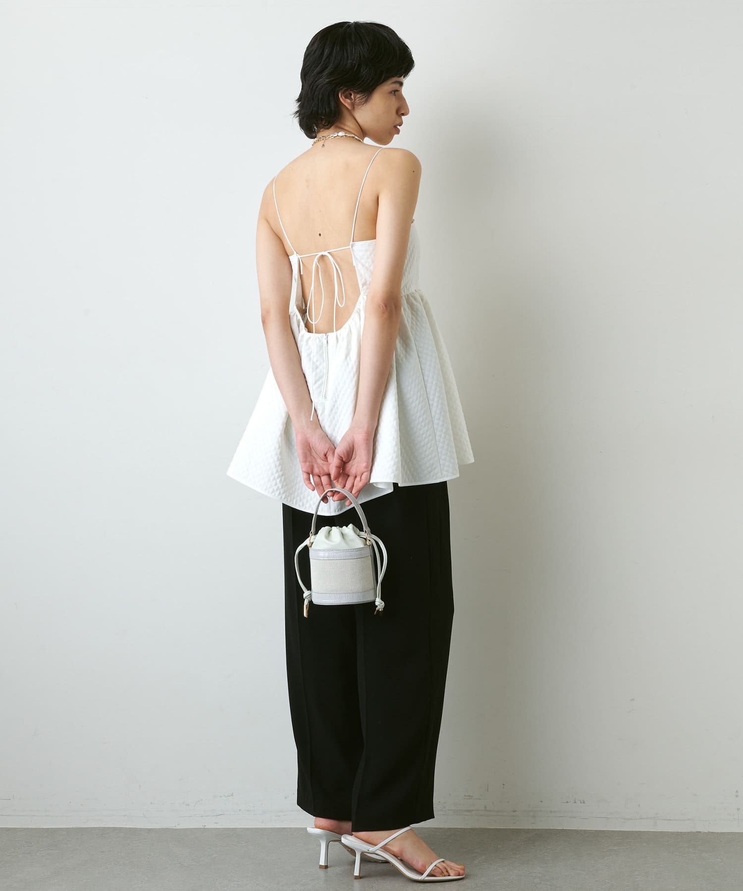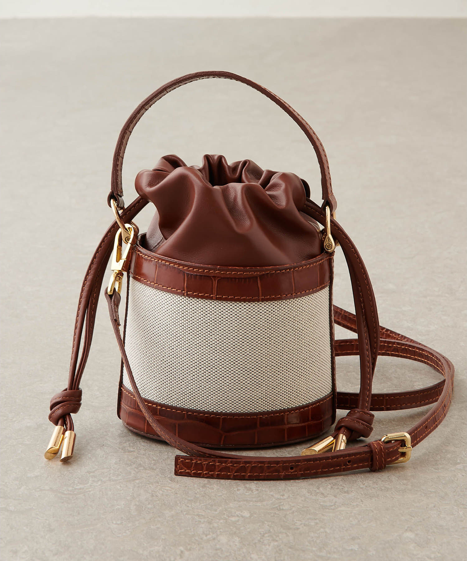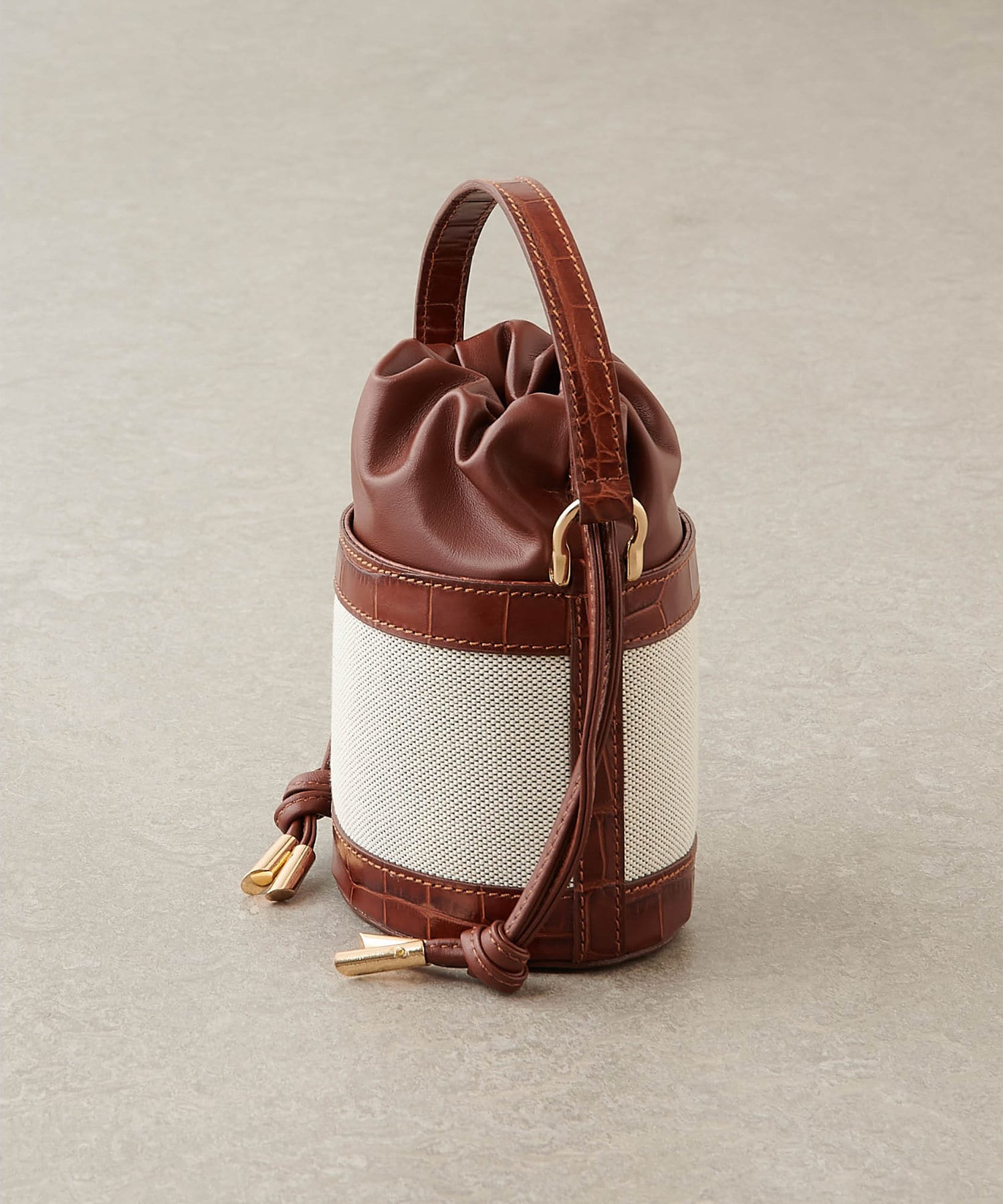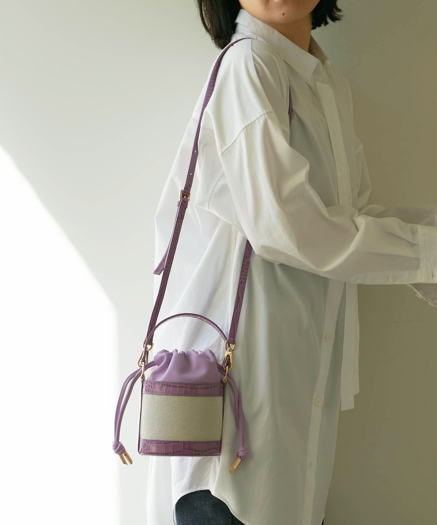 ■ミニマムな筒型の巾着フォルムが上品かつモダンな印象をプラス。