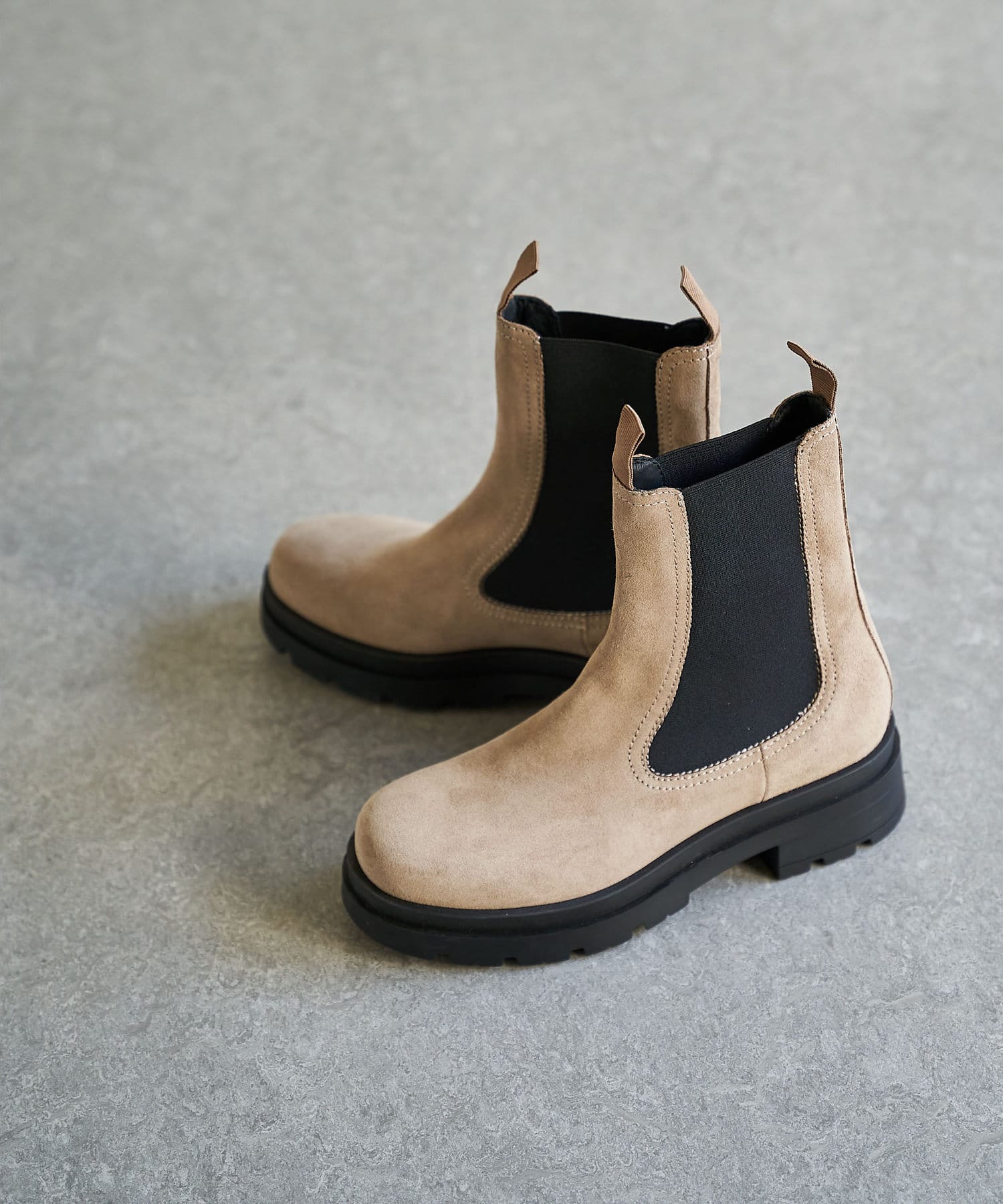 ■ベーシックなサイドゴアデザインにミドル丈のシルエットがトレンドライクで、履くだけで旬顔に決まる一足。