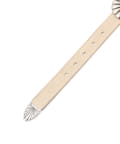 ベージュの皮ベルトと、シルバーの金具が