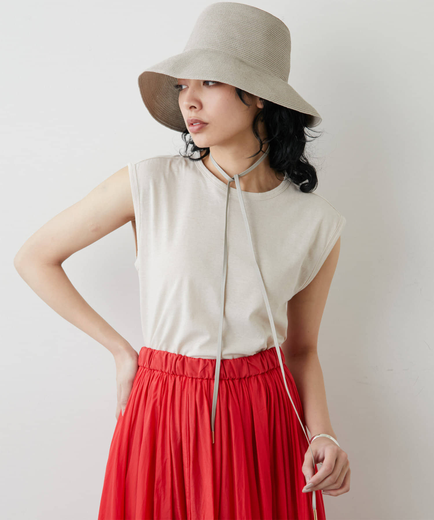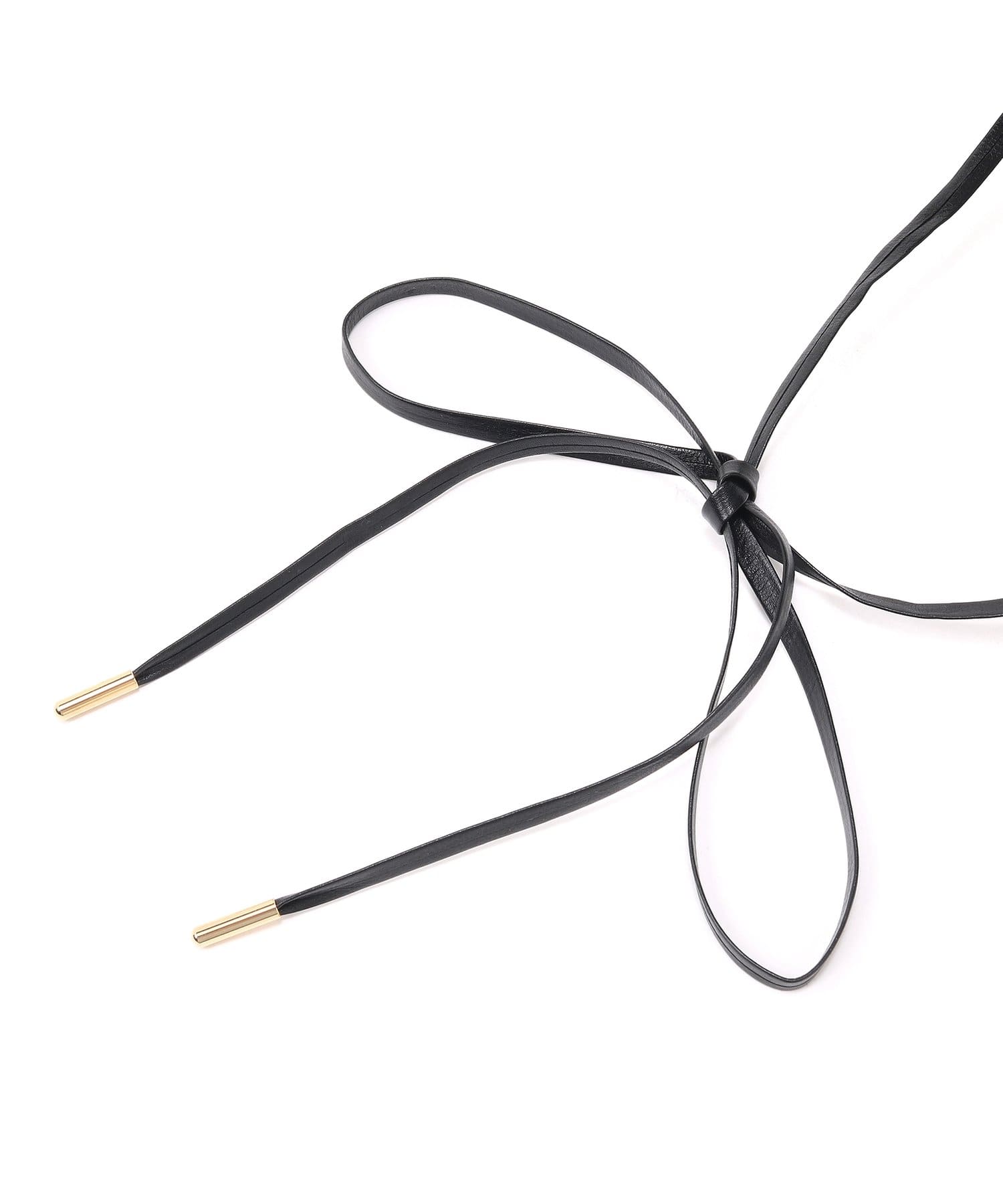 ■レザーコードはラフに垂らしたり、チョーカーのように首元で結んだり、シンプルに外したり、コーディネートに合わせて雰囲気の変化を楽しめるデザイン。