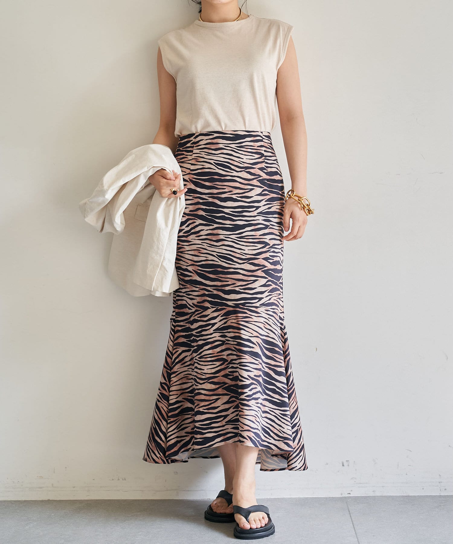 オリジナルプリントが着映える、大人のタイガー柄スカート