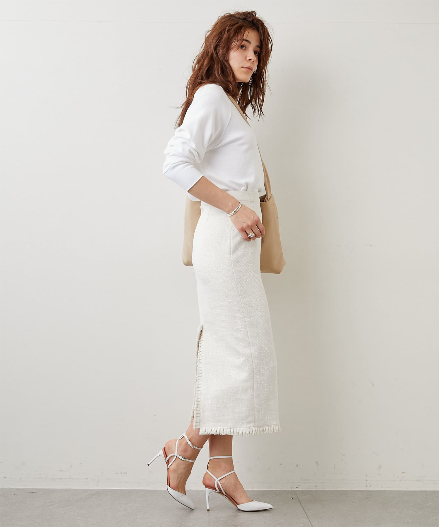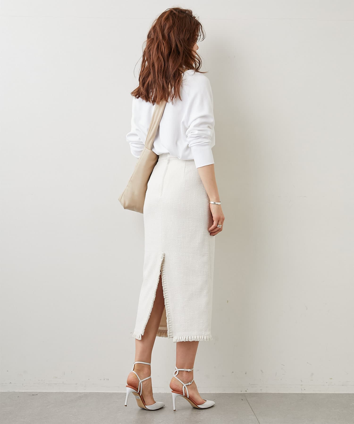 装いに華やかな印象をもたらす、上品ツイードスカート