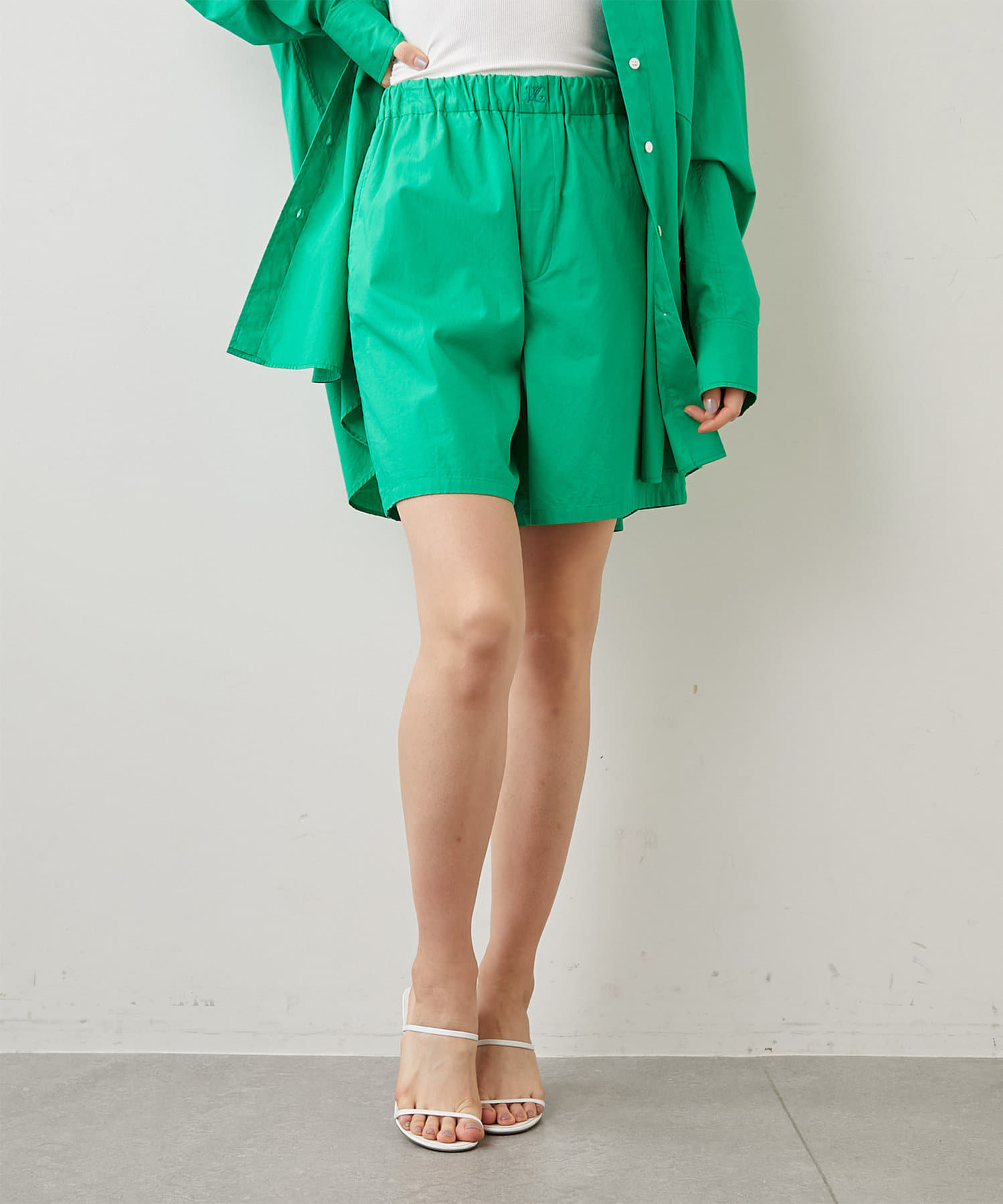 ■シャツ地でトランクスディテールに仕上げたショートパンツ。