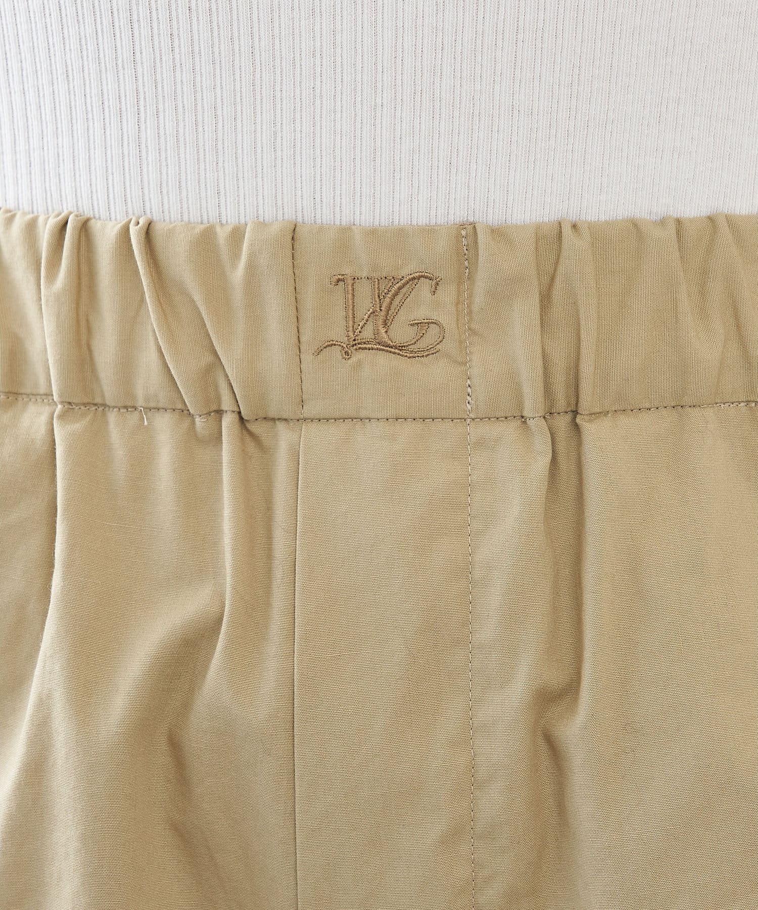 ■ウエスト部分にあしらったブランドのオリジナルロゴ刺繍がポイント。