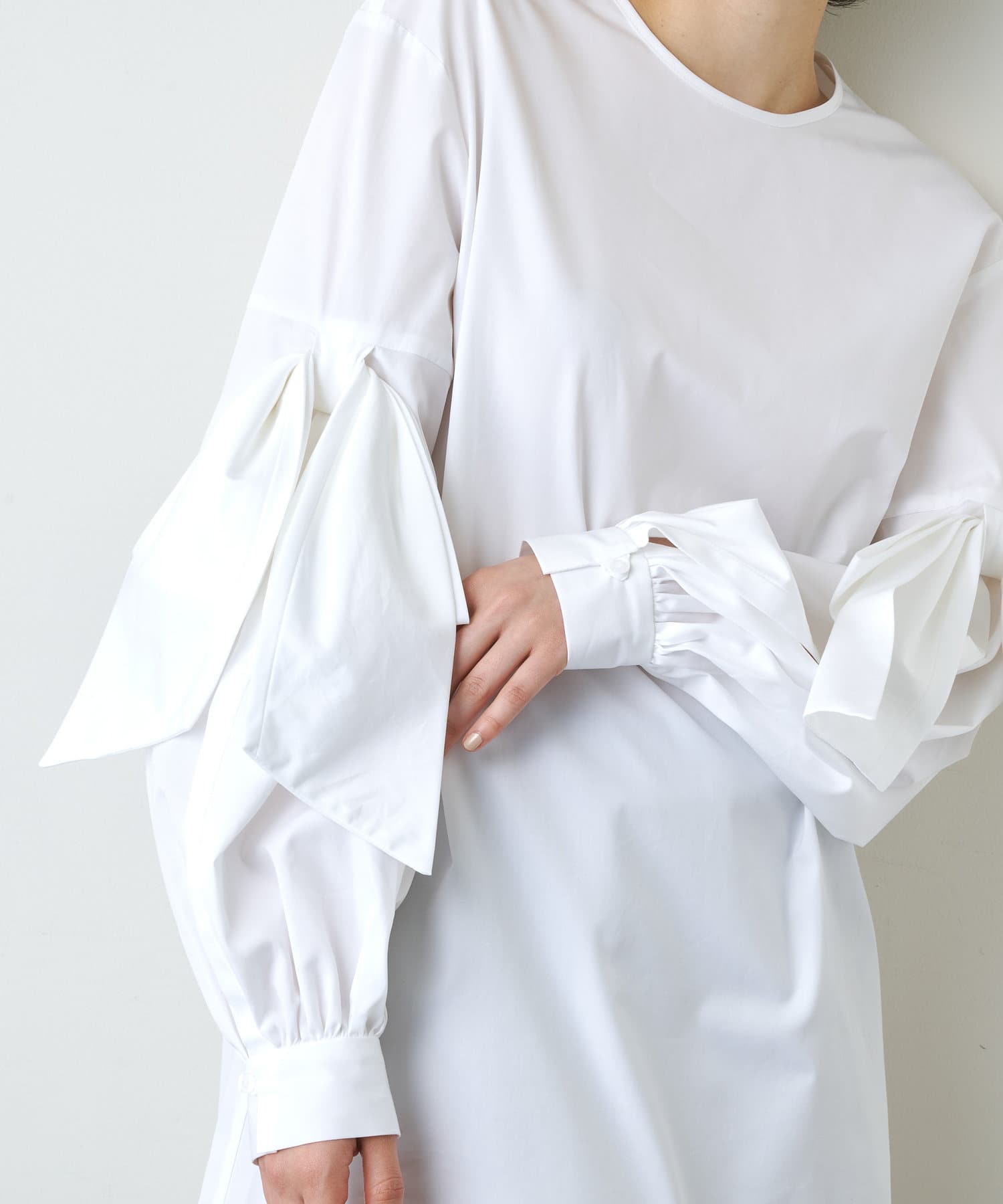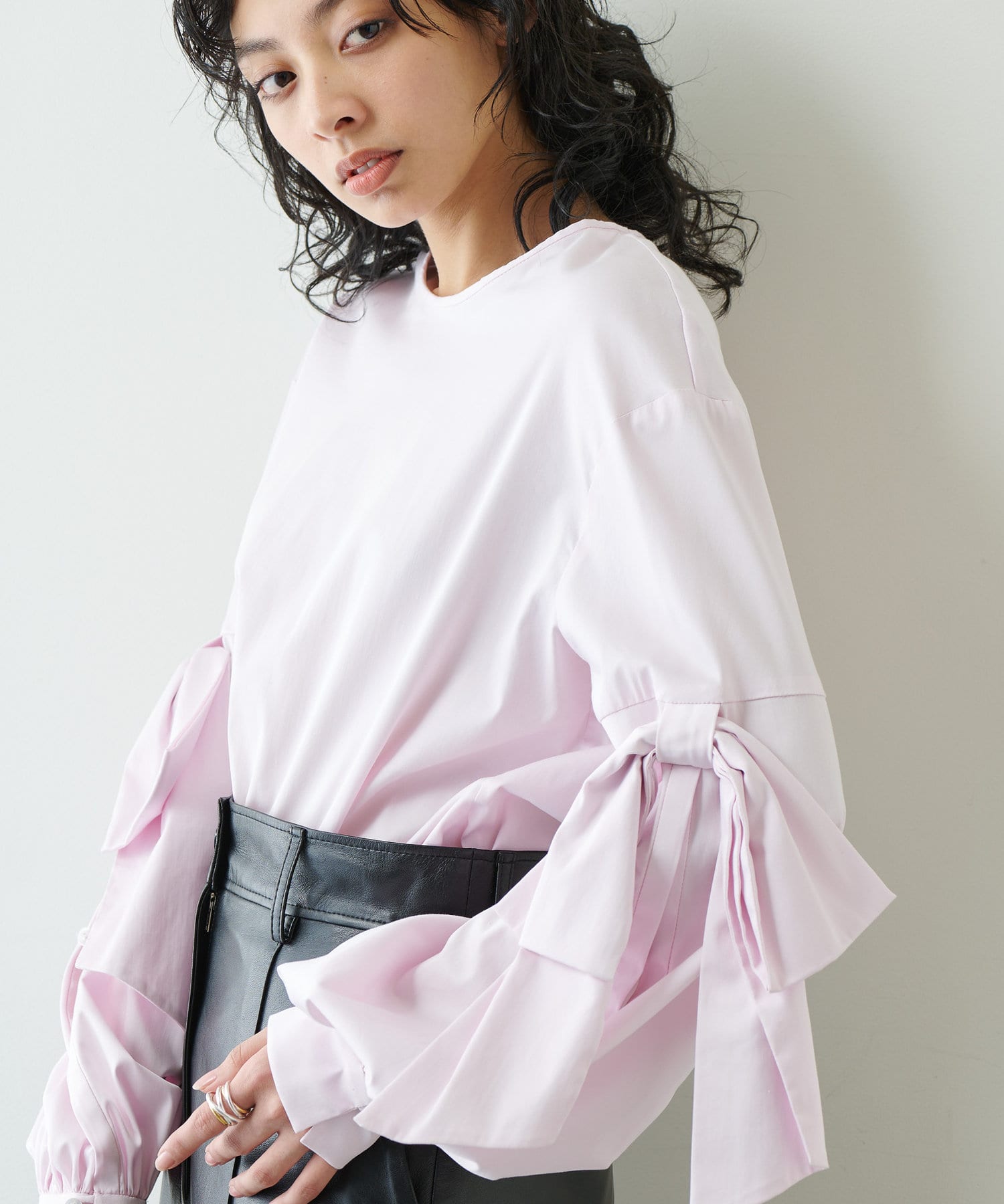 ■袖にあしらった大きめのリボンディテールが可愛いブラウス。