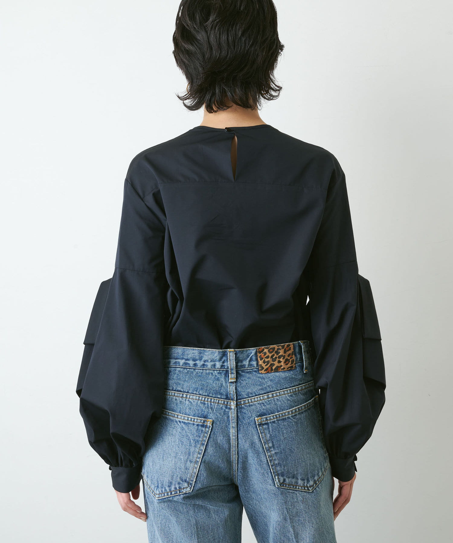 ■袖のボリューム感を際立たせるシンプルな身頃のデザイン。