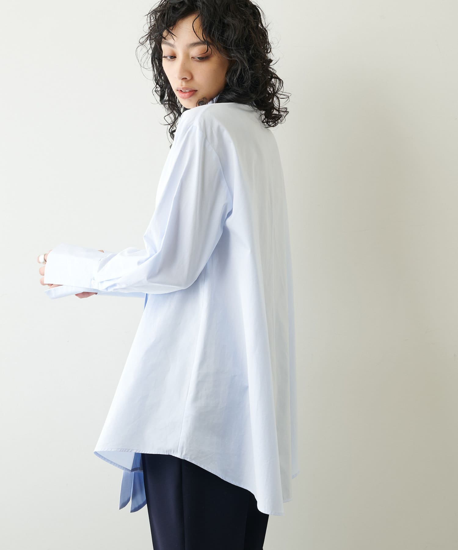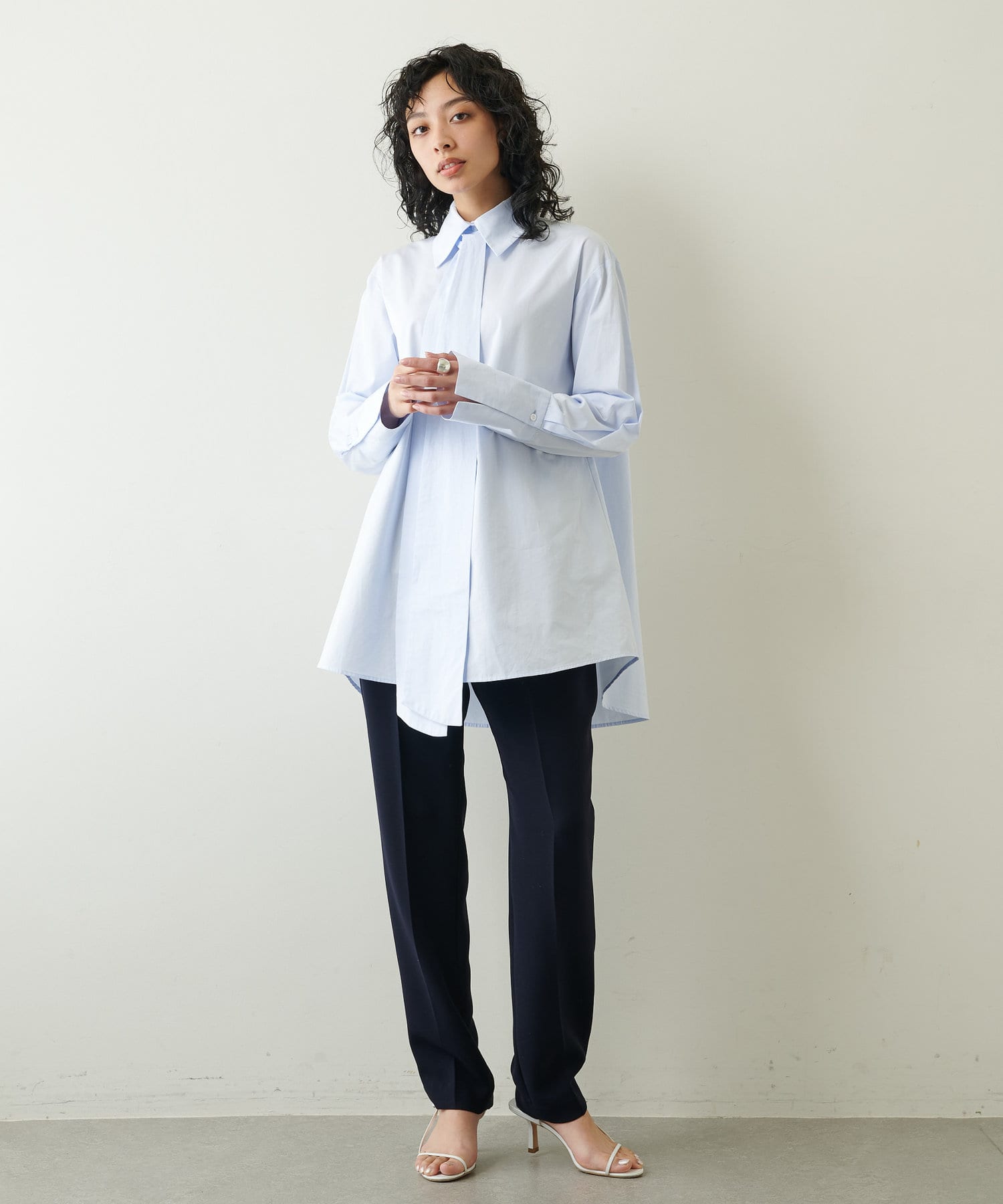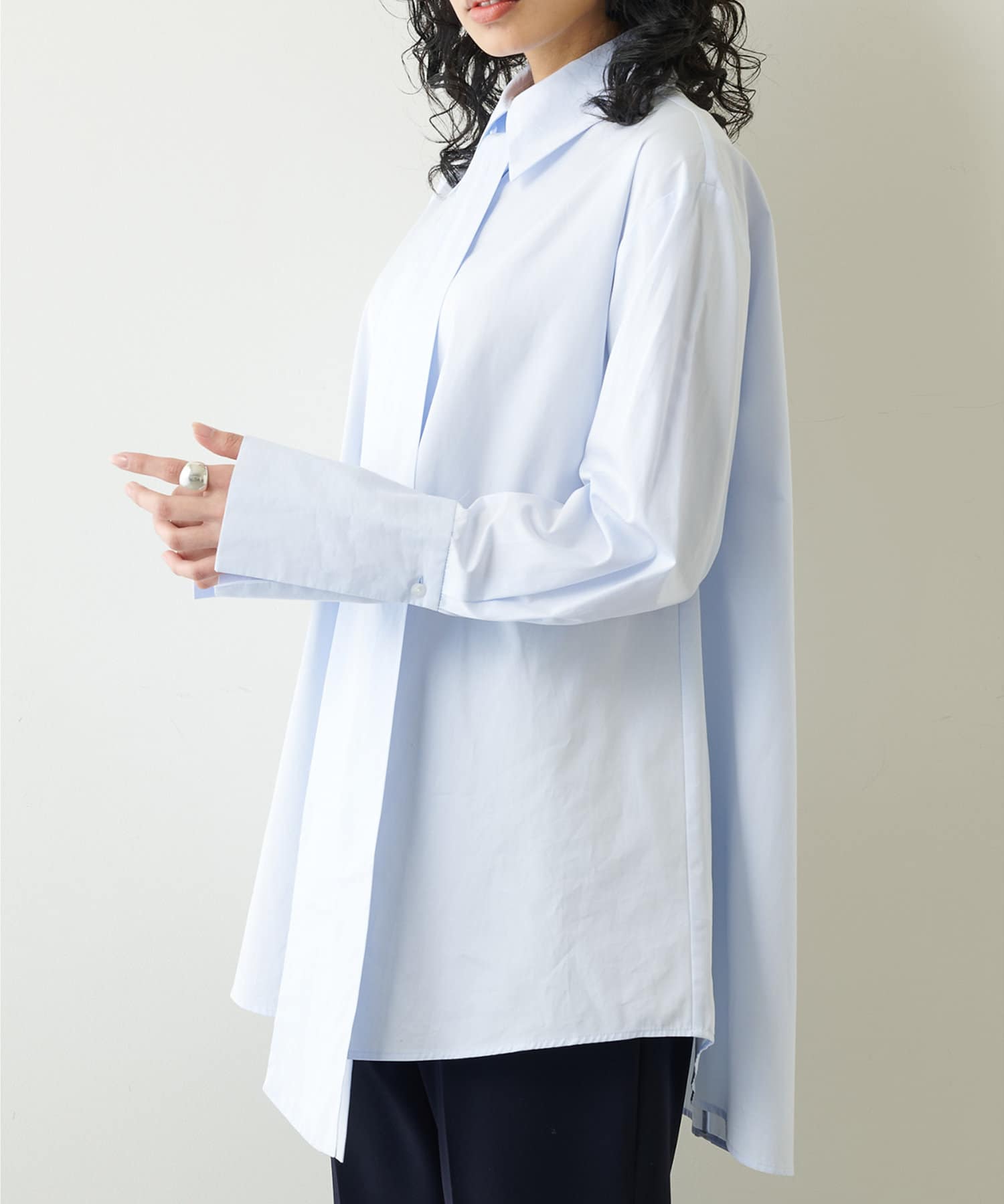 ■きちんと感のあるシャツ地の風合いが大人らしい上品さを演出。