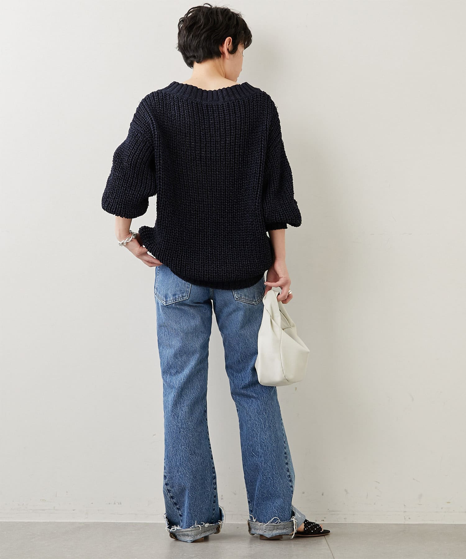 ■肩を落として袖にたっぷりとボリュームを持たせることでフェミニンな印象に。