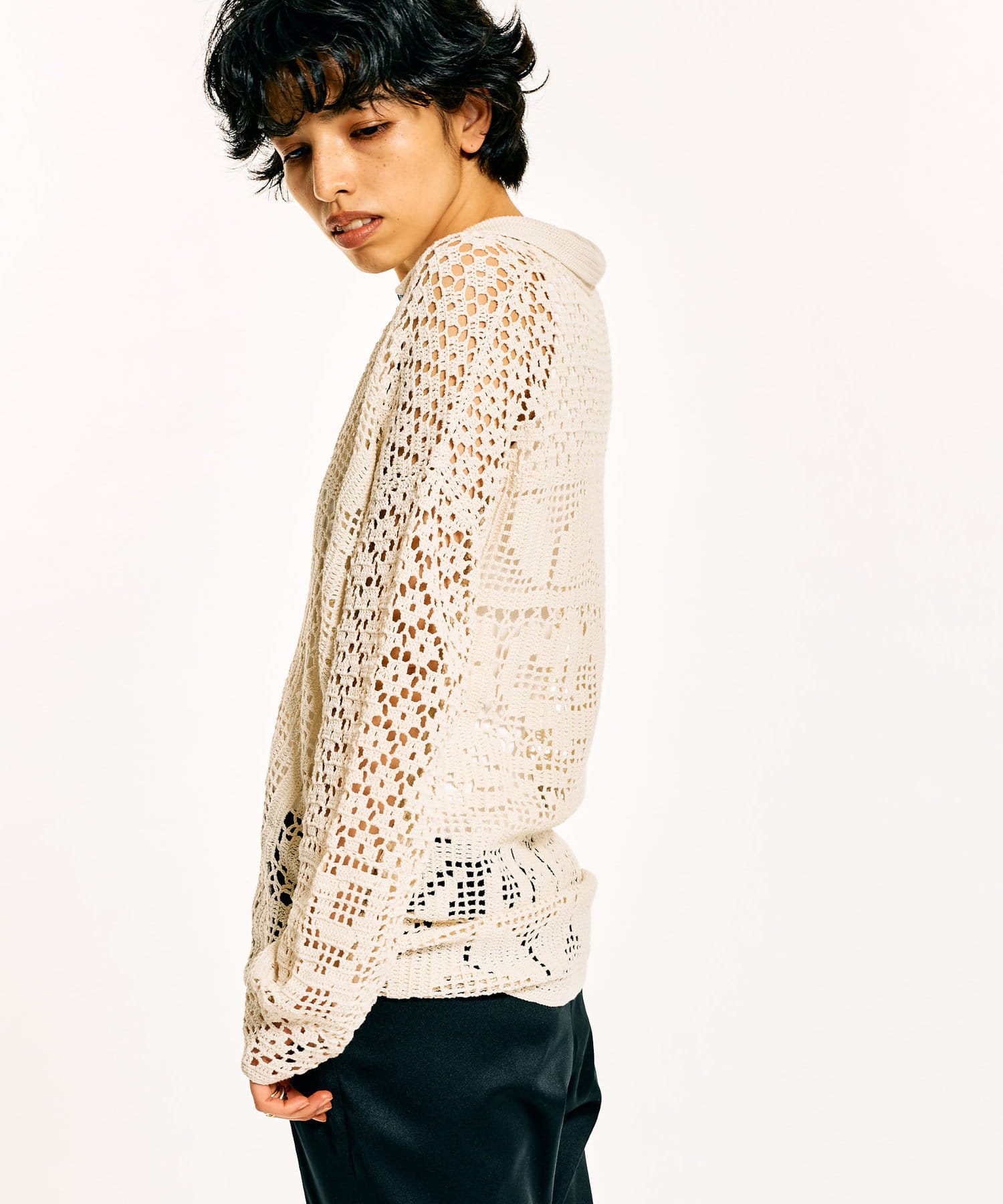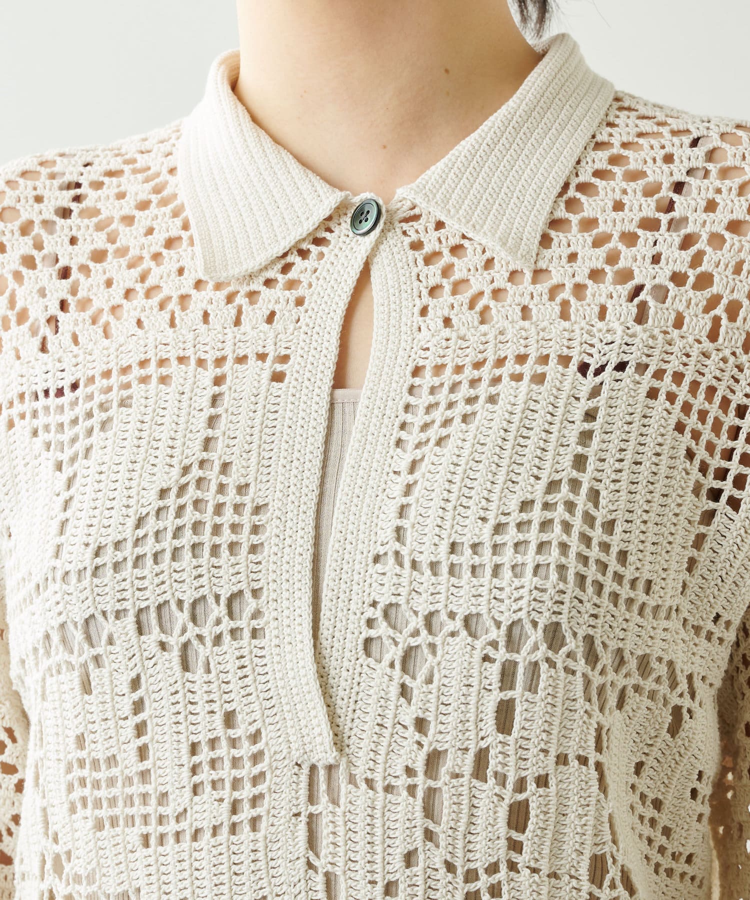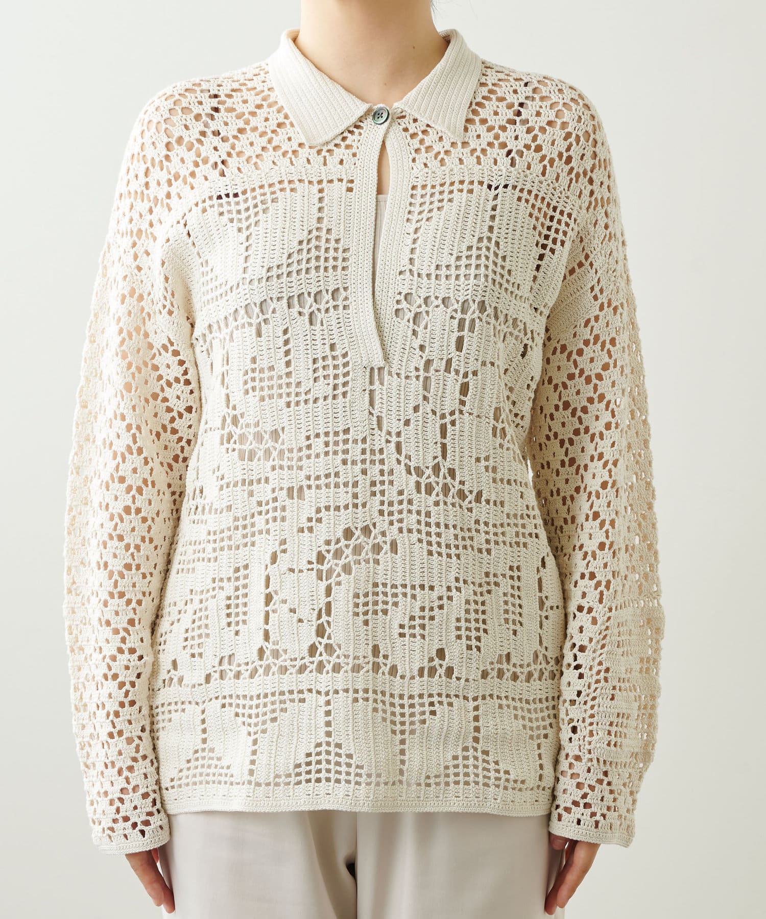 こだわりのレース編みで着映える、周りと差の付くポロニット