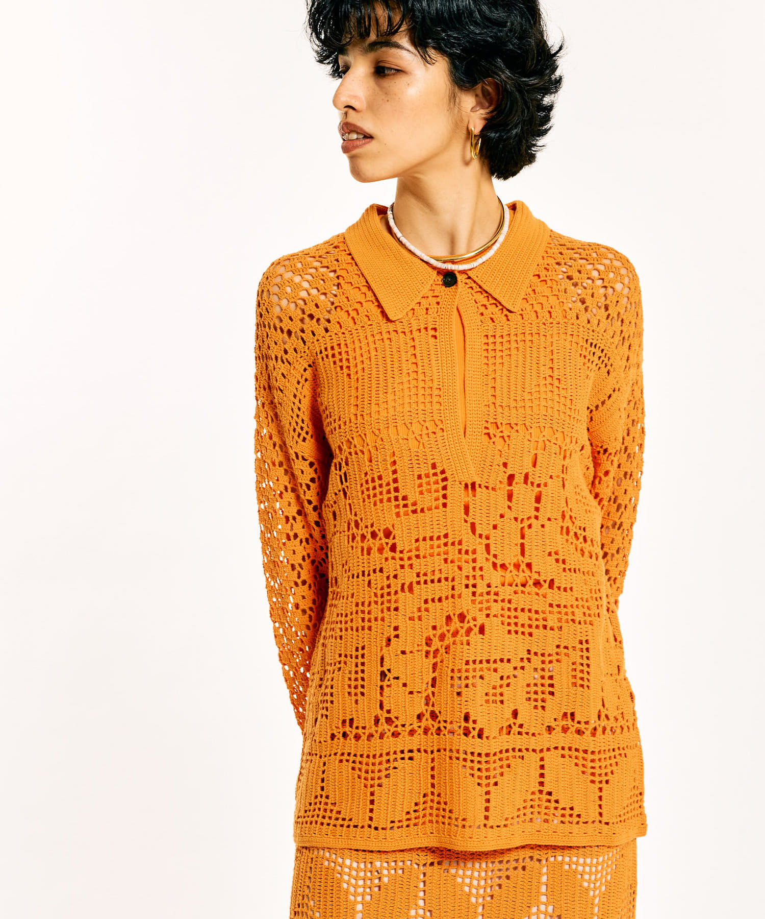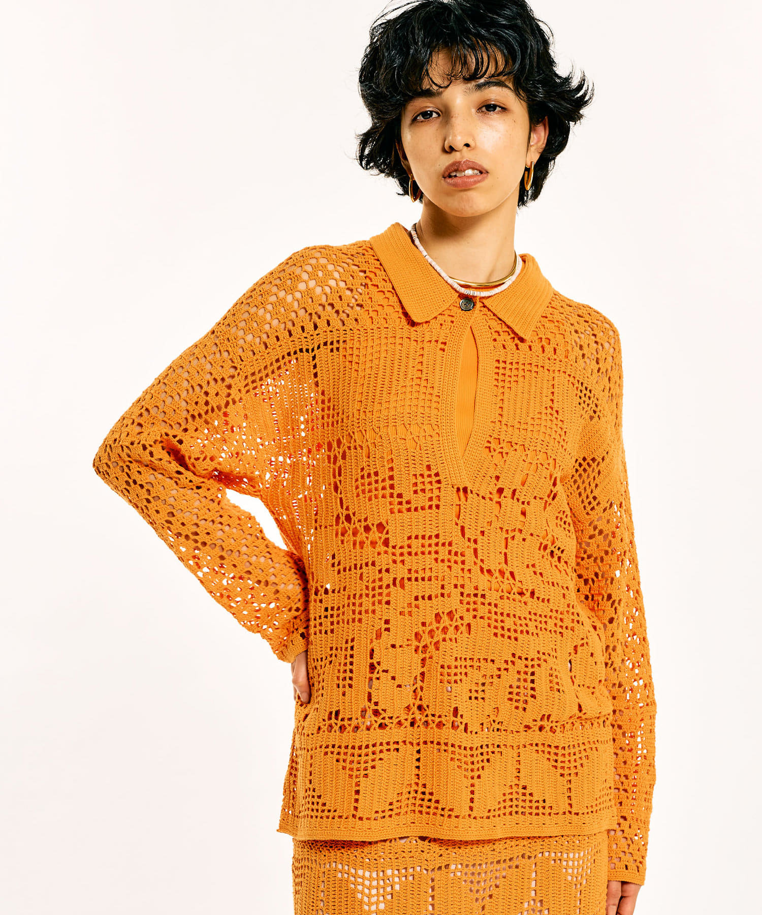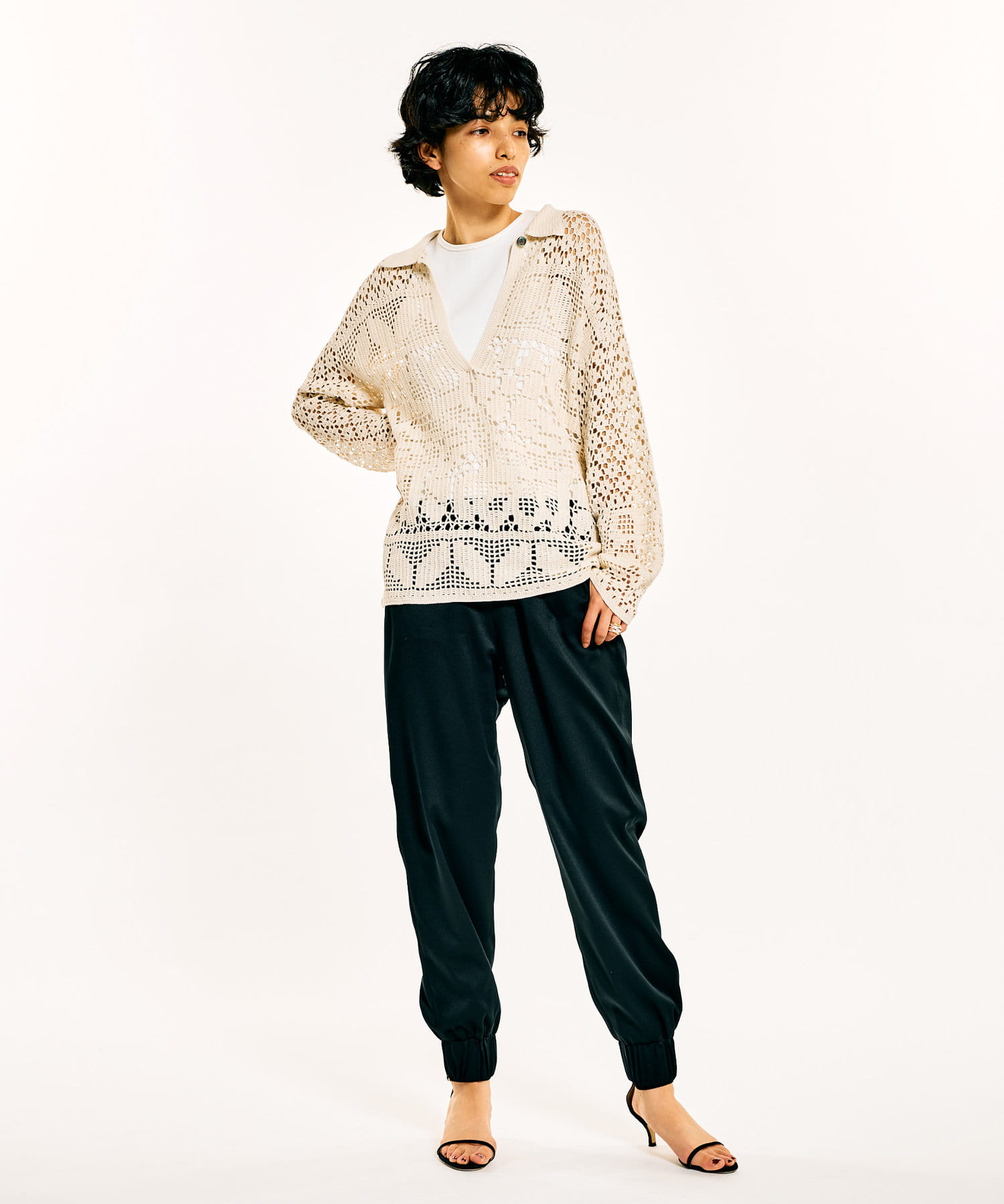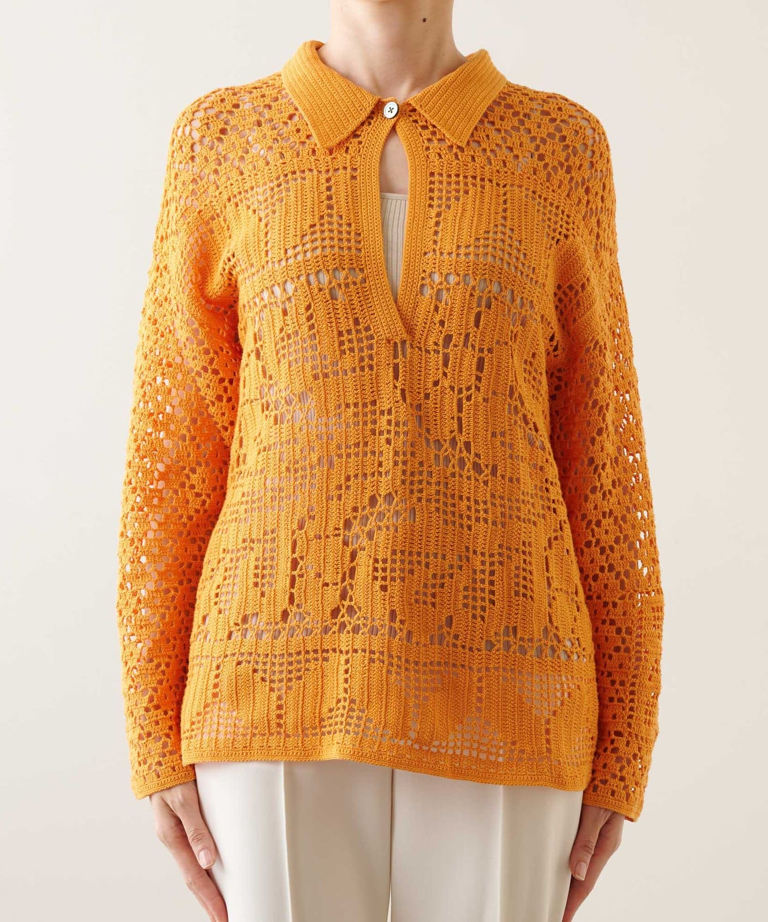 こだわりのレース編みで着映える、周りと差の付くポロニット