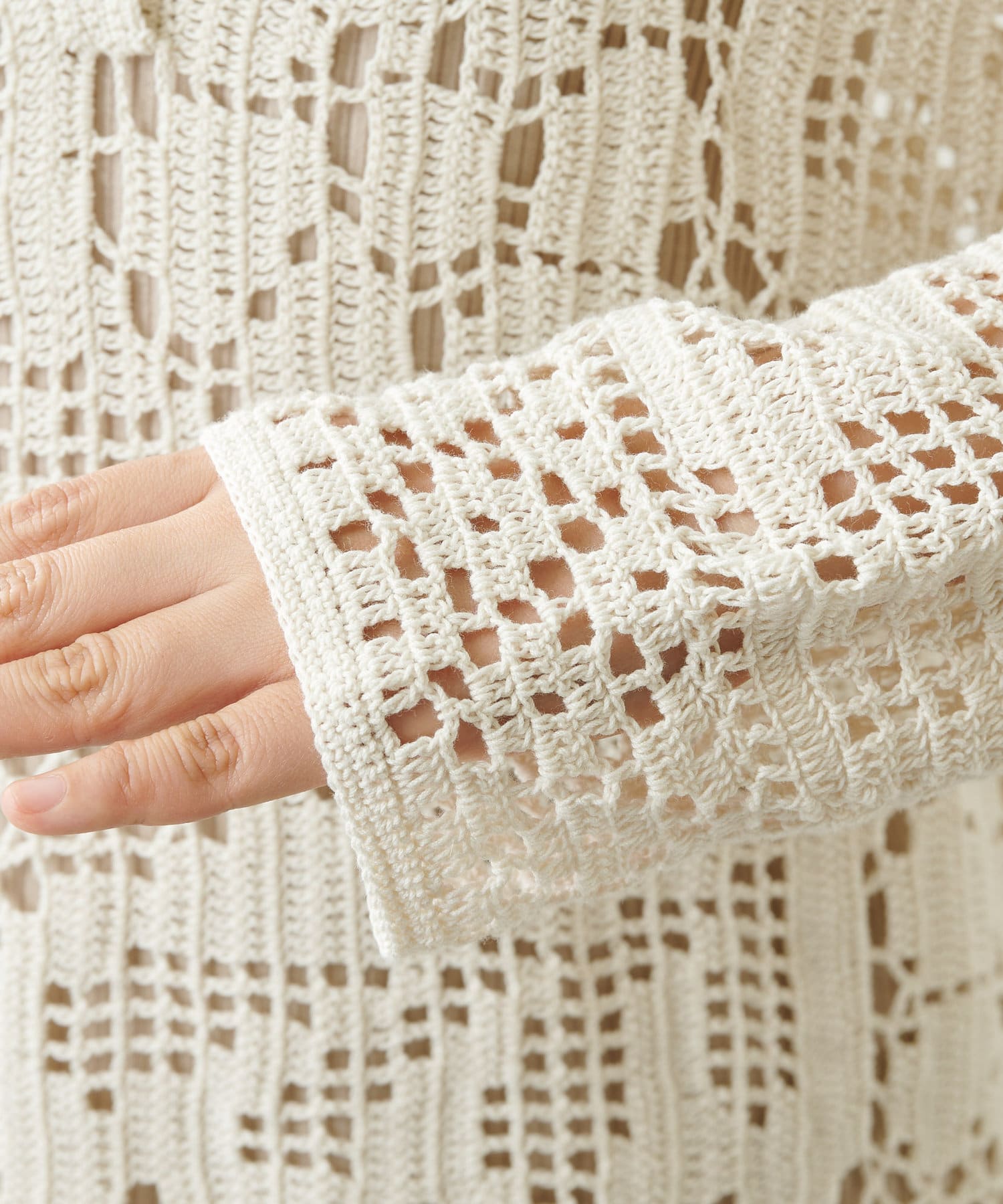 ■様々な柄を組み合わせたクロシェ編みが目を惹くこだわりの一着。