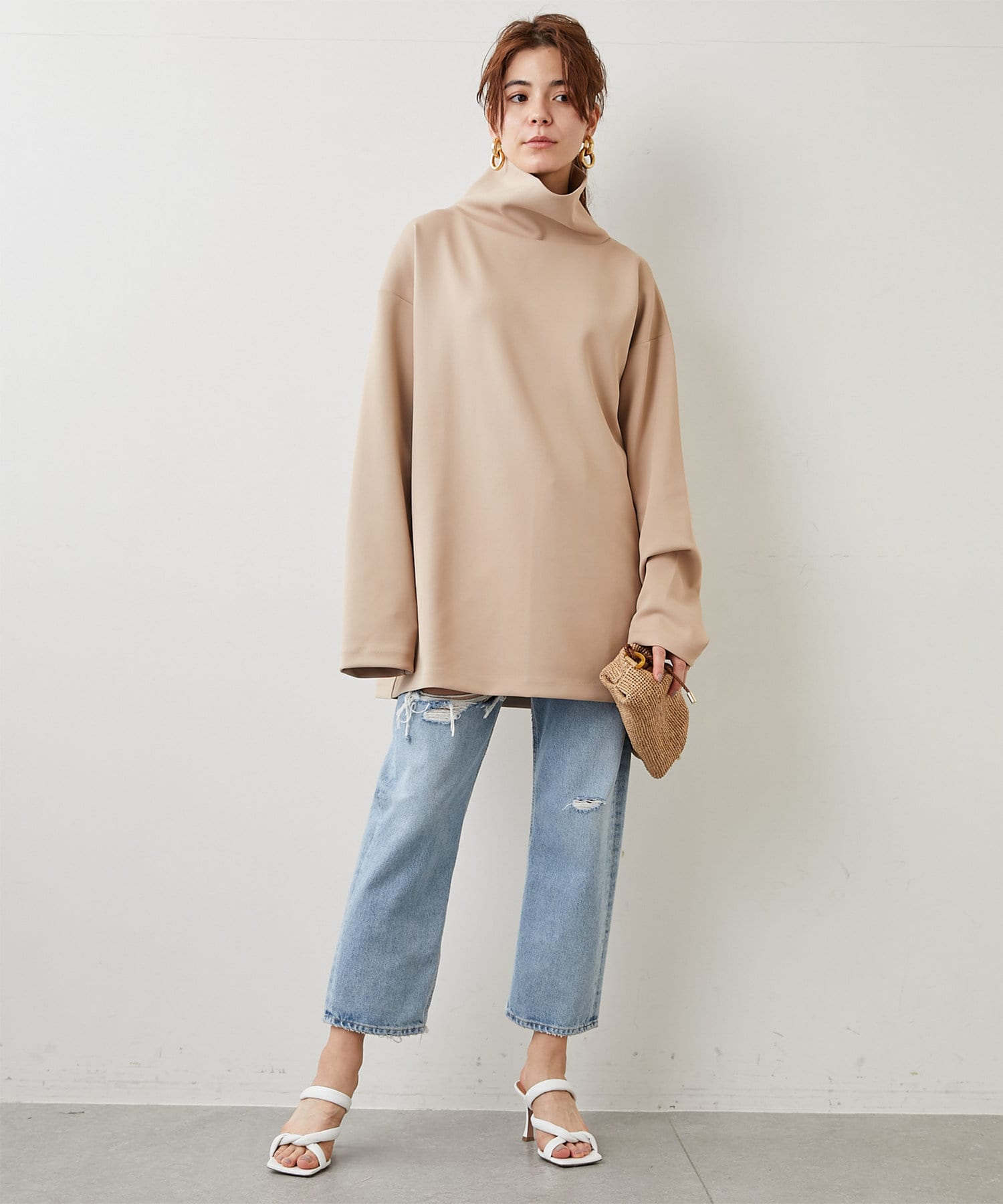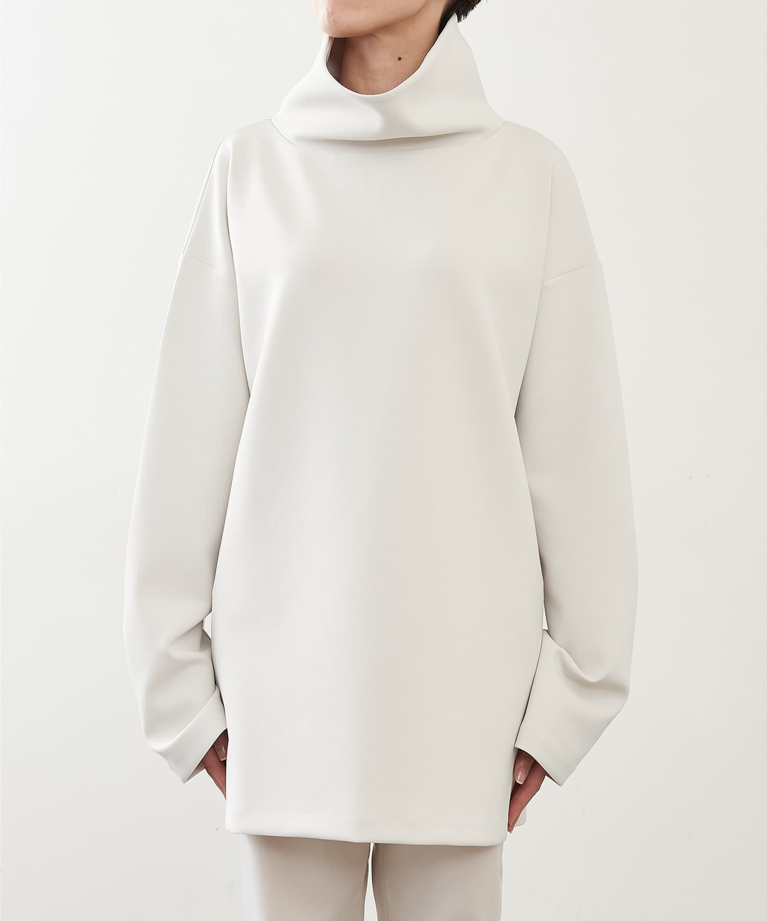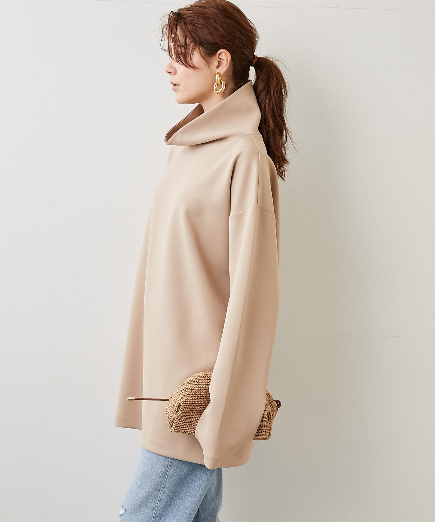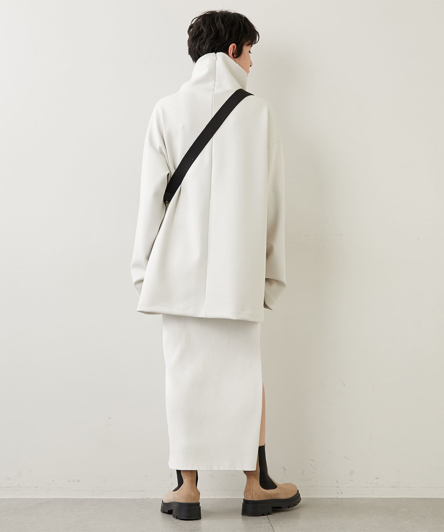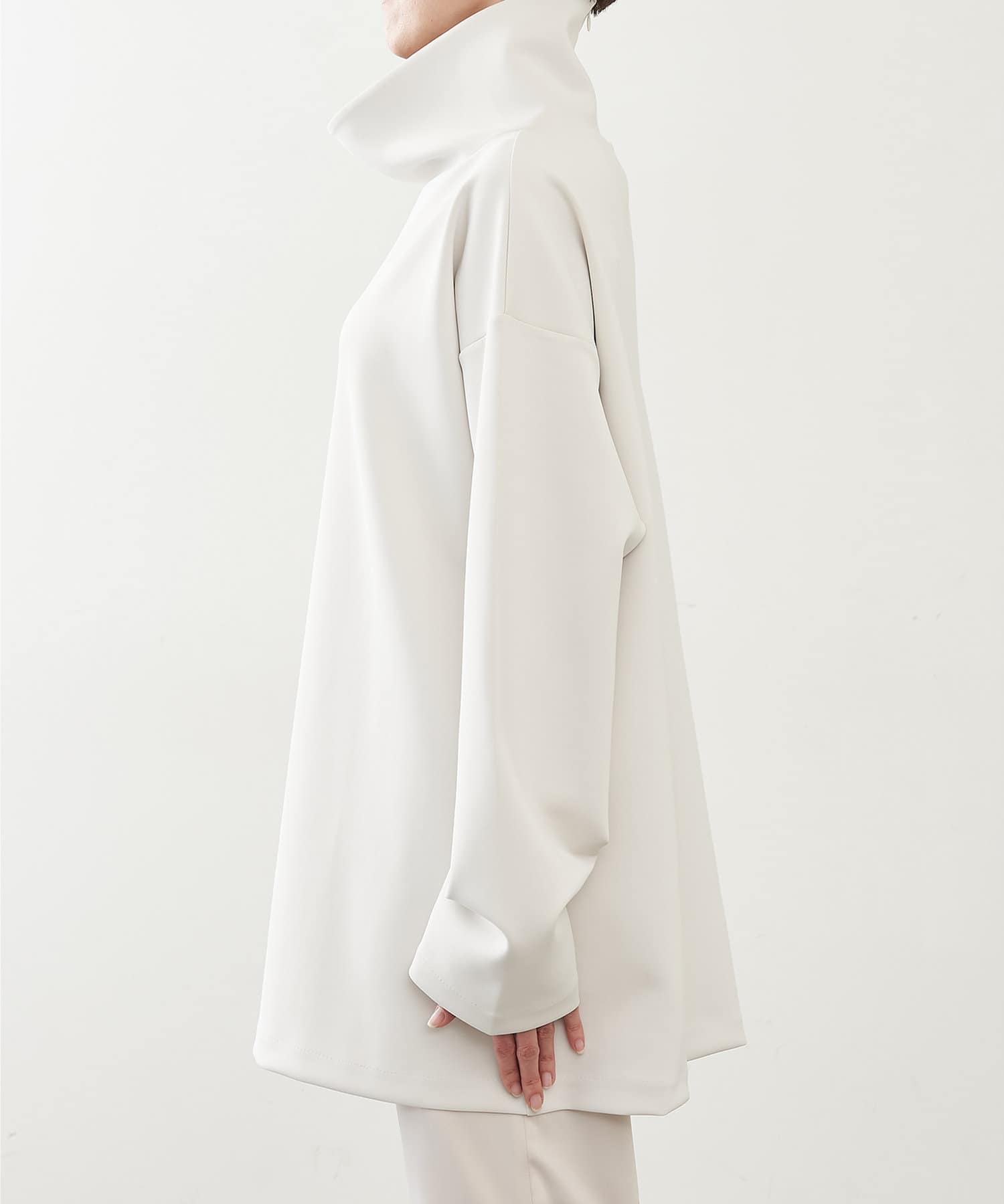 ■小顔+華奢見えを叶える、ゆとりを持たせたフォルムと緩めのハイネック。