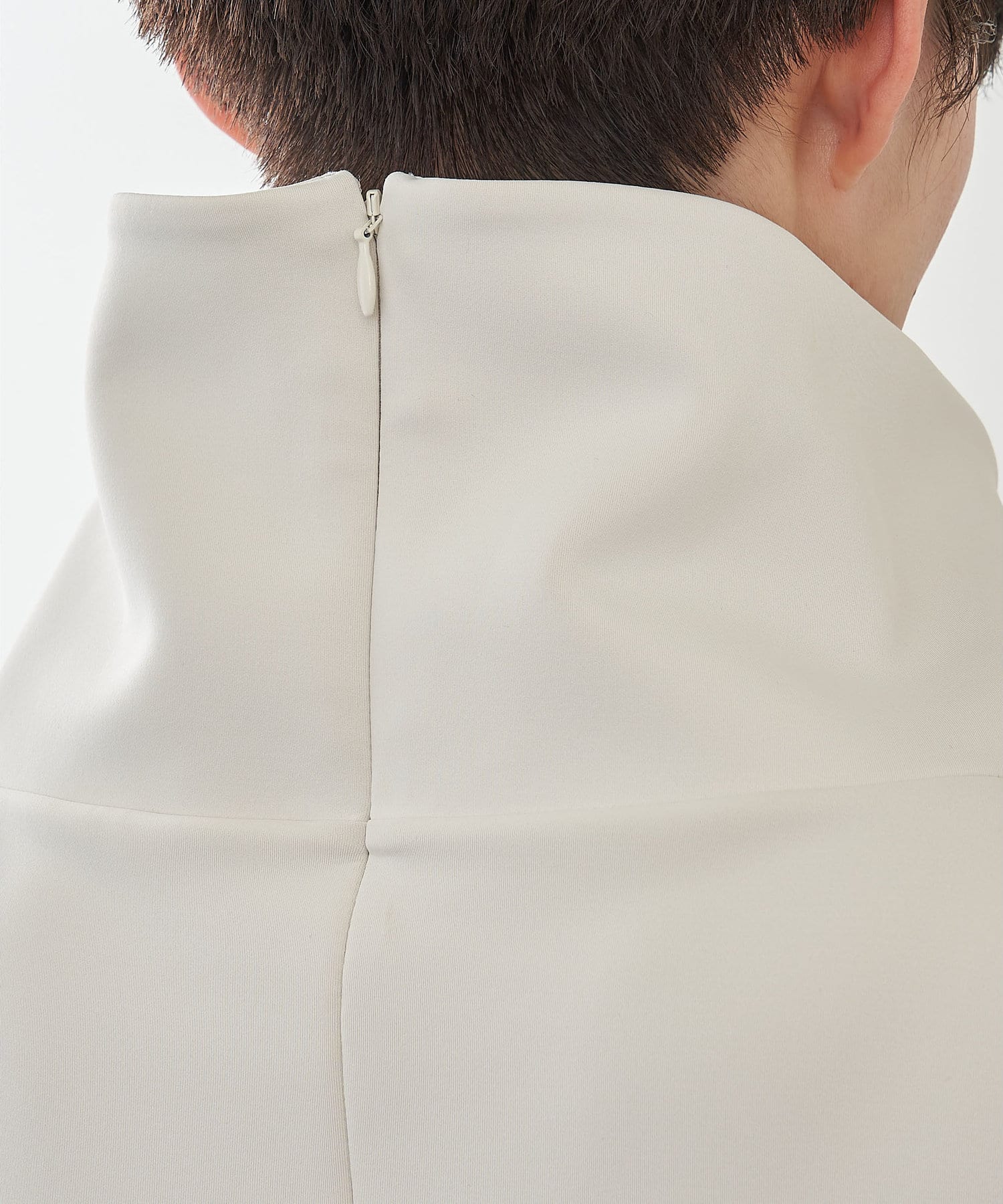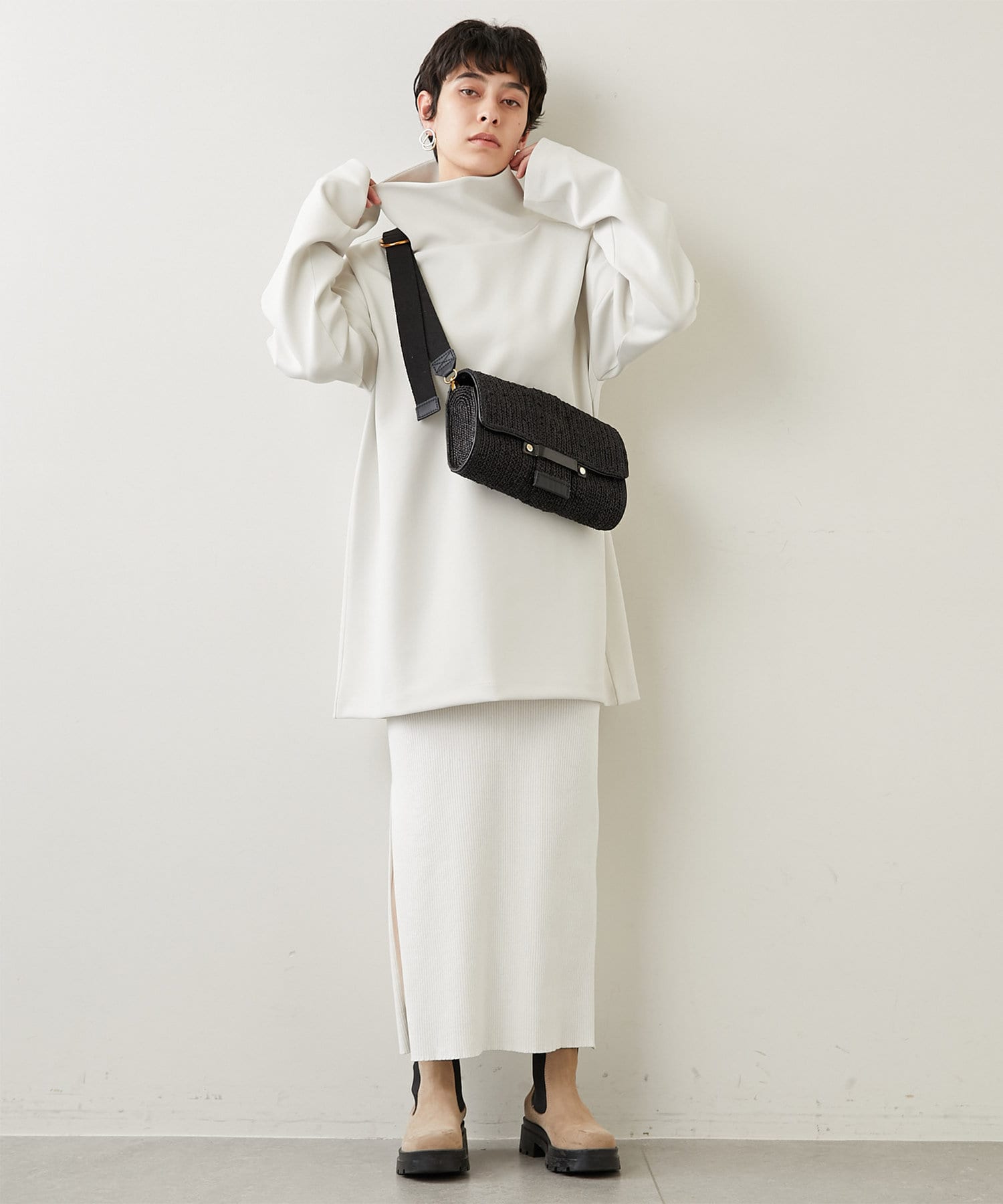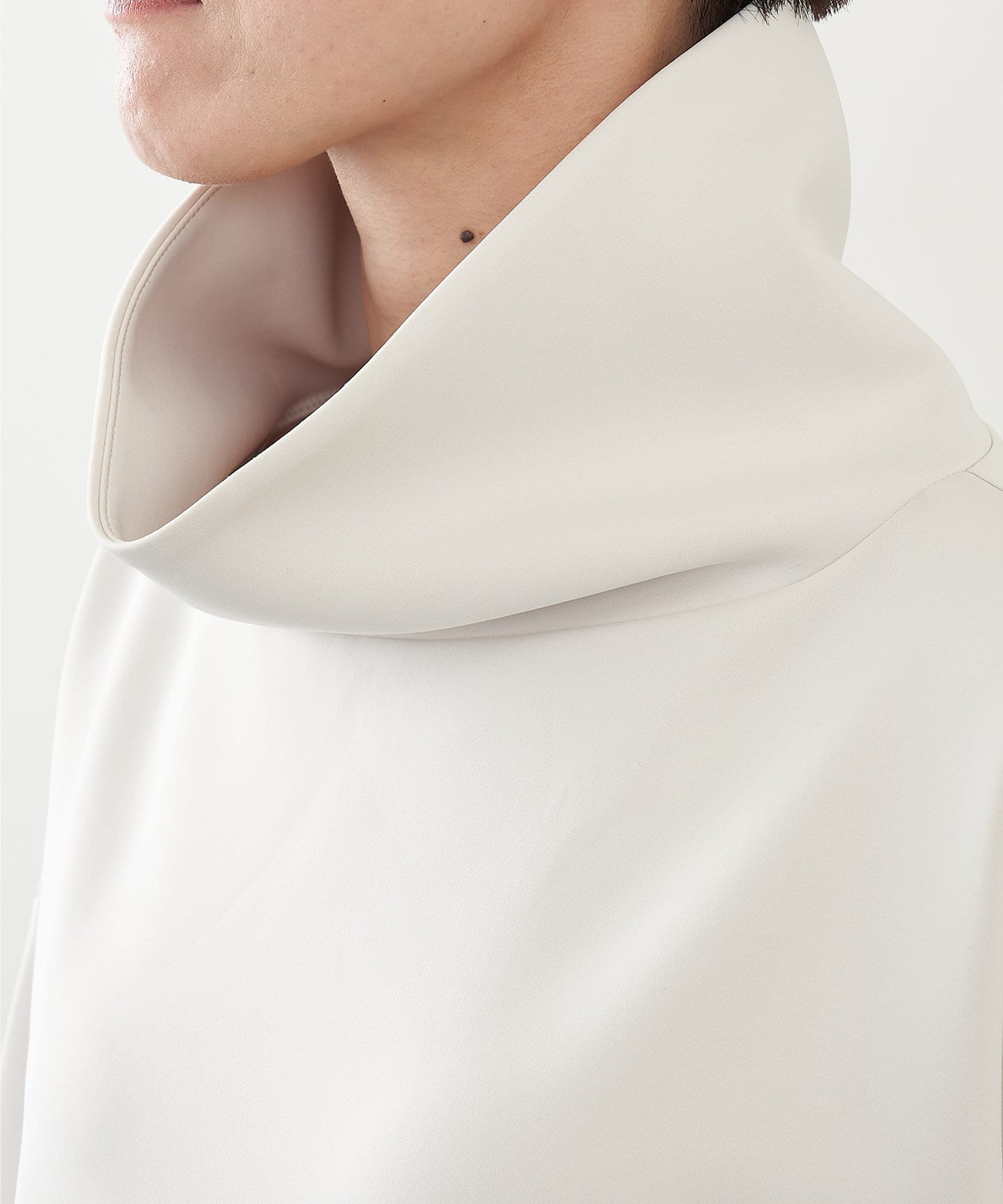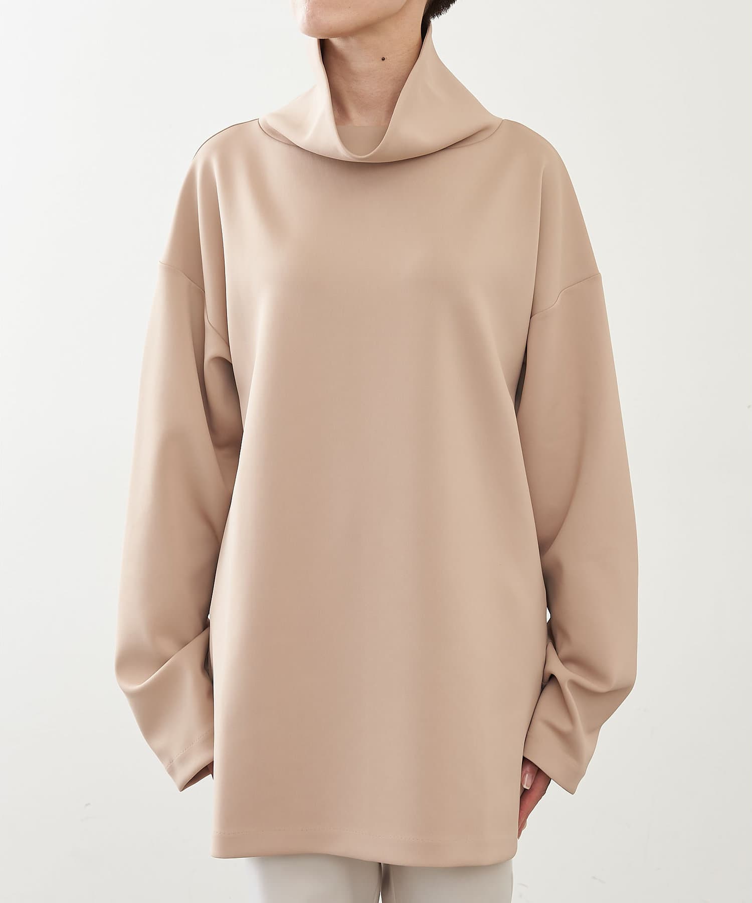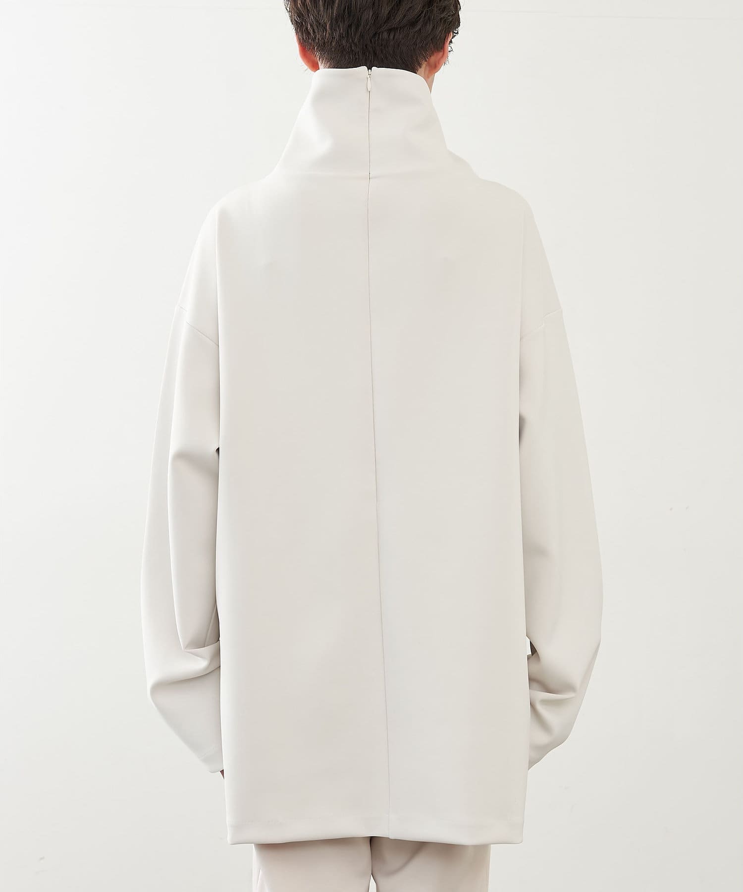■小顔+華奢見えを叶える、ゆとりを持たせたフォルムと緩めのハイネック。